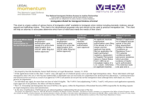 Immigration Relief for Immigrant Victims of Crime1 This chart is a basic outline of various forms of immigration relief2 available to immigrant crime victims including domestic violence, sexual assault and trafficking victims. This chart is for informational purposes only and should not be used to practice immigration law. The chart will help an attorney or advocates determine which form of relief best meets the needs of their client.3 How and When Does it Provide Authorization to Accept Employment? U-visa T-visa An applicant receives employment authorization upon receipt of a prima facie determination from USCIS4 (after filing but before approval).5 An applicant receives employment authorization upon receipt of a bona fide determination from USCIS (after filing but before approval). Continued Presence An applicant receives employment authorization upon approval. VAWA self-petition An applicant receives employment authorization upon filing if the abuser is a U.S. Citizen and the applicant has jointly filed an application for lawful permanent residency (Application to Register Permanent status or Adjust Status Form I-485) as an immediate relative of a U.S. Citizen. Otherwise, an applicant receives Battered spouse waiver Receipt of application for a battered spouse waiver of the joint filing requirement (Petition to Remove Conditions on Residence Form I751) extends conditional lawful permanent residence, which provides evidence of lawful work authorization. This extension lasts one year and is 1 Developed by Kavitha Sreeharsha, Senior Staff Attorney at Legal Momentum. January 15, 2010. Of the applications listed on this chart, T and U visas, and approval of a battered spouse waiver provide legal immigration status. Those individuals with legal immigration status who are or who become inadmissible or deportable may not necessarily be comprehensively protected from deportation. Continued presence and deferred action received as a result of an approved VAWA self-petition do not provide lawful immigration status although those individuals are a lower priority for deportation. 3 An individual may apply for more than one form of relief if eligible. The VAWA Unit (adjudicating VAWA, T and U) will process each application separately. Upon approval of one petitions, the others will then be denied. 4 The U.S. Citizenship and Immigration Services (USCIS) is the agency within the Department of Homeland Security (DHS) responsible for deciding requests for legal immigration status and naturalization. 5 At the time of publication, USCIS had not yet released guidance implementing this provision of the law. 2 This project was supported by Grant No. 2009-DG-BX-K018 awarded by the Bureau of Justice Assistance. The Bureau of Justice Assistance is a component of the Office of Justice Programs, which also includes the Bureau of Justice Statistics, the National Institute of Justice, the Office of Juvenile Justice and Delinquency Prevention, the SMART Office, and the Office for Victims of Crime. Points of view or opinions in this document are those of the author and do not represent the official position or policies of the United States Department of Justice. U-visa T-visa Process The applicant files Uvisa (Form I-918) at the VAWA Unit of Vermont Service Center of USCIS. The applicant files Tvisa (Form I-914) at the VAWA Unit of Vermont Service Center of USCIS. Qualifying Family Beneficiaries (still must potentially meet other requirements) Qualifying family members for victims over 21 include spouses and children under 21. Qualifying family members of victims under 21 include spouses, children, parents, and unmarried siblings under 18. Qualifying family members for victims over 21 include spouses and children under 21, and if facing retaliation parents and unmarried sibling sunder age 18. Qualifying family members of victims under 21 include Continued Presence ICE6 Special Agent in Charge sends to Office of International Affairs’ Law Enforcement Parole Branch, which sends the approval to USCIS to process employment authorization. Qualifying family members for victims over 21 include spouses and children under 21. Qualifying family members of victims under 21 include spouses, children, parent, and unmarried VAWA self-petition Battered spouse waiver employment authorization upon approval. The applicant files the VAWA self-petition (Form I-360) at the VAWA Unit of Vermont Service Center of USCIS. renewable. Children under age 21 at the time of filing. Children who have conditional resident status may apply with a conditional resident parent. However, if the battered immigrant’s child did not receive conditional residency that child cannot obtain legal permanent residence 6 Applicant files the battered spouse waiver (Form I-751) either at the VAWA Unit of Vermont Service Center (USCIS) or at California Service Center of USCIS depending on in which state the applicant resides. Immigration and Customs Enforcement (ICE) is one of two agencies within DHS responsible for immigration enforcement, detention and removal. The other DHS agency with immigration enforcement authority is U.S. Customs and Border Patrol (CBP). 1101 14th Street NW, Suite 300, Washington, DC 20005. T: 202.326.0046 www.legalmomentum.org U-visa Qualifying criminal activity Requirement of applicant’s cooperation with law Qualifying U-visa criminal activity includes but is not limited to domestic violence (including child abuse and elder abuse), sexual assault, and human trafficking. An applicant may be a victim of any qualifying criminal activity.7 An applicant must submit a U-visa certification (Form I-918 T-visa Continued Presence spouses, children, parents, and unmarried siblings under 18. siblings under 18. A qualifying family members may receive parole if that individual faces retaliation as a result of the victim’s cooperation. This protection is only available to victims of a “severe form of trafficking in persons”. This visa is only
