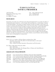 David A. Frederick Curriculum Vitae 1 CURRICULUM VITAE DAVID A. FREDERICK 1285 Franz Hall Department of Psychology, UCLA 405 Hilgard Ave. Los Angeles, CA 90095 web: http://dfred.bol.ucla.edu email: dfred@ucla.edu phone: (310) 665-0784 RESEARCH My first line of research uses evolutionary and social psychological theories to examine the effects of fundamental human motivations – such as hunger and sexual attraction– on phenomena of interest to social psychologists. My research on hunger examines the effects of hunger on self-control. My research on attraction and relationships focuses on the factors that attract us to particular individuals and how sexual motivations change according to changes in internal states and the relationship context. This research also examines the factors predicting relationship well-being in diverse samples of heterosexual, gay, and lesbian individuals. My second line of research examines how the importance of physical attractiveness in relationships and in society more generally leads many individuals to experience body dissatisfaction. My research in this area applies social psychological theories to develop new perspectives on how gender, ethnicity, sexual orientation, and sociocultural factors relate to self-perceptions of attractiveness. EDUCATION Ph.D., UCLA, Los Angeles, California (Degree anticipated June, 2009) Dissertation: Now or later? The effect of evolved motivations on self-control Major: Social Psychology Minors: Health Psychology; Quantitative Measurement and Psychometrics B.A., Beloit College, Beloit, Wisconsin (2002) Major: Psychology Major: Behavioral Studies: The Biological Bases of Human and Animal Behavior Graduated Summa Cum Laude GRADUATE FELLOWSHIPS 2008-2009 2008-2009 2007-2008 2004-2007 2003-2004 2003 2002-2003 UCLA Graduate Division Will Rogers Memorial Fellowship [$6000] UCLA Center for Society and Genetics Graduate Training Fellowship [$18,000] UCLA Graduate Division Will Rogers Memorial Fellowship [$6000] National Institute of Health National Research and Service Award [$85,536] FPR-UCLA Culture, Brain, and Development Trainee Fellowship [$15,000] National Science Foundation Graduate Fellowship Honorable Mention UCLA Psychology Department First Year Fellowship [$17,000] David A. Frederick Curriculum Vitae HONORS & RESEARCH FUNDING Graduate School 2008 UCLA Harold H. Kelley Award for paper advancing theory in social psychology: Frederick, D. A., & Haselton, M. G. (2007). Why is muscularity sexy? Tests of the fitness indicator hypothesis. Personality and Social Psychology Bulletin, 33, 1167-1183. 2008 UCLA Psychology Department Excellence in Research Award [$573] 2008 UCLA Psychology Department Conference Presentation Travel Grant [$312] 2008 FPR-UCLA Culture, Brain, and Development Research Grant [$2000] 2007 NSF-UCLA Interdisciplinary Relationship Science Program Research Grant [$1000] 2007 FPR-UCLA Culture, Brain, and Development Research Grant [$5000] 2006 FPR-UCLA Culture, Brain, and Development Research Grant [$5450] 2006 Institute for American Cultures [Asian American Division] Research Grant [$1500] 2005 FPR-UCLA Culture, Brain, and Development Research and Travel Grant [$3353] 2005 UCLA Psychology Department Post-Master’s Thesis Research Grant [$700] 2004 UCLA Graduate Division Summer Research Mentorship Award [$4000] 2004 UCLA Psychology Department Post-Master’s Thesis Research Grant [$800] 2004 UCLA Psychology Department Extramural Incentive Grant [$100] 2004 FPR-UCLA Culture, Brain, and Development Summer Mentorship Grant [$3053] 2003 UCLA Psychology Department Extramural Incentive Grant [$3250] 2003 UCLA Graduate Division Summer Mentorship Award [$3000] 2003 UCLA Psychology Department Master’s Thesis Research Grant [$600] Undergraduate 2002 Selected for Phi Beta Kappa, Beloit College Chapter 2001 Guy Allan Tawney Prize in Psychology [$50] 2000 Walter Van Dyke Bingham Fellowship in Psychology [$3000] 2000 Selected for Psi Chi, Beloit College Chapter 1998-2002 Rock Island National Securities Scholarship [$12,000] 1998-2002 Beloit Presidential Scholarship [$16,000] 1998-2002 Beloit College Dean’s List 2 David A. Frederick Curriculum Vitae 3 PUBLICATIONS IN PEER-REVIEWED JOURNALS *indicates directly supervised undergraduate co-author Peplau, L. A., Frederick, D. A., Yee, C. K., Maisel, N., Lever, J., & Ghavami, N. (in press). Body image satisfaction in heterosexual, gay, and lesbian adults. Archives of Sexual Behavior. Frederick, D. A., Peplau, L. A., & Lever, J. (2008). The Barbie mystique: Satisfaction with breast size and shape across the lifespan. International Journal of Sexual Health, 20, 200-211. Forbes, G. B., & Frederick, D. A. (2008). The UCLA Body Project II: Breast and body dissatisfaction among African, Asian, European, and Hispanic American college women. Sex Roles, 58, 449-457. Salska, I., Frederick, D. A., Pawlowski, B., Reilly, A., *Laird, K., & Rudd, N. (2008). Conditional mate preferences: Factors influencing preferences for height. Personality and Individual Differences, 44, 203-215. Frederick, D. A., & Haselton, M. G. (2007). Why is muscularity sexy? Tests of the fitness indicator hypothesis. Personality and Social Psychology Bulletin, 33, 1167-1183. Received the Harold H. Kelley Award for paper advancing social psychological theory Frederick, D. A., Lever, J., & Peplau, L. A. (2007). Interest in cosmetic surgery and body image: Views of men and women across the lifespan. Plastic and Reconstructive Surgery, 120, 14071415. Frederick, D. A., Buchanan, G. M., *Sadeghi-Azar, L., Peplau, L. A., Haselton, M. G., *Berezovskaya, A., & Lipinski, R. E. (2007). Desiring the muscular ideal: Men’s body satisfaction in the United States, Ukraine, and Ghana. Psychology of Men and Masculinity, 8, 103-117. Frederick, D. A., Forbes, G. B., *Grigorian, K., & Jarcho, J. M. (2007). The UCLA Body Project I: Gender and ethnic differences in self-objectification and body satisfaction among 2,206 undergraduates. S