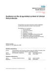 Guidance on the drug-related content of clinical trial protocols This guidance has been produced to help investigators with the pharmaceutical content of trial protocols. The guidance is in 8 sections. 1. Trial procedures 2. Treatment of patients 3. Trial drugs 4. Glossary of formulae 5. Suggested capecitabine dose banding table 6. Manipulation of IMPs in the pharmacy 7. Labelling of Investigational Medicinal Products 8. Note on oral anti-cancer therapy Version control Version 2.0: 30th September 2008 Guidance prepared by: Group: Name: Signature: Chemotherapy and Pharmacy Advisory Service (CPAS) on behalf of the National Cancer Research Network Coordinating Centre Ms Elizabeth Hodgkinson Role: Committee Member Date: 30.09.2008 Guidance authorised by: Name: Signature: Professor Mahesh Parmar Standard Protocol Template Version 2.0 (updated March 2012) Role: Date: Chair of CPAS 30.09.2008 1 1. Trial procedures 1.1 Randomisation Give details of the randomisation procedure. State who will receive new patient/randomisation alerts e.g. investigator/research nurse/pharmacy. State how they will be sent e.g. fax/email. 1.2 Code-breaks If the trial is double-blinded give details of who holds the code-breaks and the procedure for unblinding. If an automated IVRS/IWRS system is used give details of who will have access to the unblinding facility e.g. investigator/pharmacy. 2. Treatment of patients 2.1 Introduction Give general information about treatment i.e. patients will be randomised between <TREATMENT A> and <TREATMENT B>. Example: This is a randomised, multicentre, multinational phase III comparative trial. Eligible patients are randomised to one of two arms: <DRUG> or observation (standard of care). 2.2 Treatment schedule Give details of drugs1, doses (including maximum doses, number of doses), infusion times if applicable, routes of administration, frequency of cycle. Give recommended scheduling of drugs if important i.e. paclitaxel before carboplatin, temozolomide 1 hour before radiotherapy. For all drugs specify the method of dose rounding i.e. up, down, to the nearest dose or according to local policy. Examples: <DRUG> 130mg/m2 iv infusion in 250/500ml 5% dextrose over 2 hours. <DRUG> 300mg/m2 orally tds days 1 to 5 (15 doses). Days 1, 8 and 15 <DRUG> 425mg/m2 sc injection. Repeat every 3 weeks. Vinblastine 6mg/m2 (maximum 10mg) by slow iv bolus injection. Temozolomide 200mg/m2 orally daily for 5 days every 28 days. 2.3 Duration of treatment Give details of the number of cycles / duration of treatment. Examples: Patients should receive <X> cycles of chemotherapy. Treatment should be given continuously until disease progression or up to 2 years. Treatment should continue for <X> cycles unless there is evidence of disease progression, unacceptable toxicity or at the patient’s request. Further cycles may be given at the discretion of the investigator. 2.4 Drug administration 1 It is preferable to use generic names throughout, unless specific brand required. If specific brand specified state no substitution allowed. Standard Protocol Template Version 2.0 (updated March 2012) 2 Give information on the administration and on any special precautions that need to be taken when administering the drug. For studies with oral drugs, give information on what to do if a patient misses a dose and information on what to do if a patient vomits a dose. If applicable give information on how to deal with hypersensitivities. State if local policy can be followed. Indicate if patient monitoring is required after drug administration. If available, give information on specific treatments for extravasation. Reference can be made to the SPC or local policy. Examples: Patients will be instructed to take <DRUG> once daily preferably in the morning with up to 200ml of water at least one hour before or two hours after food. Patients should take the tablets at approximately the same time each day. <DRUG> capsules will be taken on an empty stomach. Missed doses will not be made up. The next dose must be taken as scheduled. If a patient misses a dose, the dose should be taken later provided the patient remembers within 12 hours. If the patient does not remember within 12 hours, the missed dose should be omitted. Doses should NOT be doubled to make up for missed doses. [Suitable for once a day dosing] If a patient vomits after taking the tablets, the dose should be replaced only if the vomited tablets can actually be seen and counted. Observe the patient for one hour after administration of <DRUG>; blood pressure, pulse and temperature to be monitored every 15 minutes. 2.5 Dose modification Give details of; Which tests e.g. FBC, U&E are required prior to each cycle of treatment and when they must be performed e.g. day 1 (or within 3 working days). Blood results etc required for treatment on cycle 1 day 1. Recommended dose reductions, interruption and permanent discontinuation for toxicities/adverse events. State whether dose escalation is allowed or not allowed. If the phrase ‘when resolved’ is used, define “resolved” e.g. to ≤ grade 1, to baseline. Provide information on expected side-effects and the management of these. Reference can be made to the SPC. 2.6 Compliance (see also 3.7 Drug returns from patients) Give any procedures for measuring patient compliance e.g. questionnaires, blood, urine or saliva tests, counting returned drugs etc. Examples: Patients should be asked to bring completed diary cards or other records and all their unused/remaining trial medicines (empty, open or unopened) with them to each clinic visit. Patients will be instructed to keep a record of compliance with treatment, by means of using a “patient diary” that will be provided to them. Standard Protocol Template Version 2.0 (updated March 2012) 3 2.7 Support medication Give details of support medication required, such as anti-emetics, pre-medication, hydration schedules, calcium folinate rescue, urine alkalinisation, mesna, G-CSF
