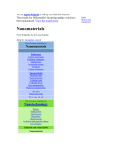 You can support Wikipedia by making a tax-deductible donation. The results for Wikimedia's licensing update vote have been announced. View the results here. Nanomaterials From Wikipedia, the free encyclopedia Jump to: navigation, search Part of a series of articles on Nanomaterials Fullerenes Carbon nanotubes Fullerene chemistry Applications In popular culture Timeline Carbon allotropes Nanoparticles Quantum dots Nanostructures Colloidal gold Colloidal silver Iron nanoparticles Platinum nanoparticles See also Nanotechnology This box: view • talk • edit Part of a series of articles on Nanotechnology History Implications Applications Regulation Organizations In fiction and popular culture List of topics Subfields and related fields Nanomaterials [Hide] [Help us with translations!] Fullerenes Carbon nanotubes Nanoparticles Nanomedicine Nanotoxicology Nanosensor Molecular self-assembly Self-assembled monolayer Supramolecular assembly DNA nanotechnology Nanoelectronics Molecular electronics Nanocircuitry Nanolithography Nanoionics Scanning probe microscopy Atomic force microscope Scanning tunneling microscope Molecular nanotechnology Molecular assembler Nanorobotics Mechanosynthesis This box: view • talk • edit Nanomaterials are materials with morphological features smaller than a one tenth of a micrometre in at least one dimension.[1] Despite the fact that there is no consensus upon the minimum or maximum size of nanomaterials, with some authors restricting their size to as low as 1 to ~30 nm, a logical definition would situate the nanoscale between microscale (0.1 micrometre) and atomic/molecular scale (about 0.2 nanometers). See Figure "Classification of nanostructured materials". Contents [hide] 1 Fundamental concepts 2 Size concerns 3 Materials used in nanotechnology o 3.1 Fullerenes o 3.2 Nanoparticles 4 Chemical Processing of Ceramics o 4.1 Microstructural uniformity o 4.2 Sol-gel processing 5 Safety of Manufactured Nanomaterials 6 See also 7 References 8 Other References 9 Further reading 10 External links [edit] Fundamental concepts An aspect of nanotechnology is the vastly increased ratio of surface area to volume present in many nanoscale materials which makes possible new quantum mechanical effects, for example the “quantum size effect” where the electronic properties of solids are altered with great reductions in particle size. This effect does not come into play by going from macro to micro dimensions. However, it becomes pronounced when the nanometer size range is reached. A certain number of physical properties also alter with the change from macroscopic systems. Novel mechanical properties of nanomaterials is a subject of nanomechanics research. Catalytic activities also reveal new behaviour in the interaction with biomaterials. Nanotechnology can be thought of as extensions of traditional disciplines towards the explicit consideration of these properties. Additionally, traditional disciplines can be reinterpreted as specific applications of nanotechnology. This dynamic reciprocation of ideas and concepts contributes to the modern understanding of the field. Broadly speaking, nanotechnology is the synthesis and application of ideas from science and engineering towards the understanding and production of novel materials and devices. These products generally make copious use of physical properties associated with small scales. As mentioned above, materials reduced to the nanoscale can suddenly show very different properties compared to what they exhibit on a macroscale, enabling unique applications. For instance, opaque substances become transparent (copper); inert materials attain catalytic properties (platinum); stable materials turn combustible (aluminum); solids turn into liquids at room temperature (gold); insulators become conductors (silicon). Materials such as gold, which is chemically inert at normal scales, can serve as a potent chemical catalyst at nanoscales. Much of the fascination with nanotechnology stems from these unique quantum and surface phenomena that matter exhibits at the nanoscale. Nanosize powder particles (a few nanometres in diameter, also called nanoparticles) are potentially important in ceramics, powder metallurgy, the achievement of uniform nanoporosity and similar applications. The strong tendency of small particles to form clumps ("agglomerates") is a serious technological problem that impedes such applications. However, a number of dispersants such as ammonium citrate (aqueous) and imidazoline or oleyl alcohol (nonaqueous) are promising solutions as possible additives for deagglomeration. [edit] Size concerns Another concern is that the volume of an object decreases as the third power of its linear dimensions, but the surface area only decreases as its second power. This somewhat subtle and unavoidable principle has huge ramifications. For example the power of a drill (or any other machine) is proportional to the volume, while the friction of the drill's bearings and gears is proportional to their surface area. For a normal-sized drill, the power of the device is enough to handily overcome any friction. However, scaling its length down by a factor of 1000, for example, decreases its power by 10003 (a factor of a billion) while reducing the friction by only 10002 (a factor of "only" a million). Proportionally it has 1000 times less power per unit friction than the original drill. If the original friction-to-power ratio was, say, 1%, that implies the smaller drill will have 10 times as much friction as power. The drill is useless. For this reason, while super-miniature electronic integrated circuits are fully functional, the same technology cannot be used to make working mechanical devices beyond the scales where frictional forces start to exceed the available power. So even though you may see microphotographs of delicately etched silicon gears, such devices are currently little more than curiosities with limited real world applicatio
