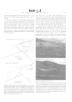 Gobi 1, 2 Major Earthquakes and Active Deformation in Mongolia Florensov and Solonenko (1963) reported a height of 5 m of the scarp in a couple of other places and 7 to 8 m at one locality. Because the height of a scarp provides an upper bound on the vertical component of displacement (e.g., Hanks and Andrews, 1989), the vertical component may have been less than these large heights. Where a scarp faces downhill, slumping and degradation of the scarp increase its height (Fig. 44). In 1990, slopes of about 30°, nearly the angle of repose, characterized most scarps in unconsolidated material. Along such reverse faults, all semblance of an overhanging face had been lost. Probably slump ing of it occurred shortly after the earthquake. 33 The evolution of a scarp, from initially overhanging to one sloping in the same direction as the surrounding topography, makes the height increase. Slumping of material down from above the initial scarp makes the top go up, and the scattering of this material at the base lowers the bottom of the scarp (Fig. 44). Hence, scarps cut into steeply sloping ground will evolve into higher scarps than those cut into flat surfaces. We measured the heights of scarps along the Gurvan Bulag rupture that were only about 200 m apart but cut into surfaces with different slopes. Where we measured the slope above and below to be α=15°, the height was h=6.8 m. Assuming that the dips are φ=30 to 35° for the scarp and δ=49° for the fault, the calculated vertical component of displacement is 3.0 to 3.5 m (Fig. 45), Where the surface above the scarp slopes at 25° and below it at 16° (Fig. 45), we measured a height of 8.5 m. For an Figure 44. Simple diagrams showing the degradation of a scarp facing downhill. Upper diagram shows the topography before slumping has occurred. Lower diagram shows how slumping of the hanging wall makes it rise, and the accumulation of material on the footwall makes the bottom of the scarp go down. Thus, the height (h) of the scarp increases and becomes higher than the vertical offset (Δuv). From the equations shown, the height of the scarp and the slope of the land surface can be used to infer the displacement on the fault. Figure 45. Photographs of the Gurvan Bulag scarp, which ruptured in the 1957 Gobi Altay earthquake. This scarp (between arrows) lies on the south side of Ih Bogd. Views are northeast. The scarp crosses a huge alluvial fan that extends far to the west of the foreground in a. Measured heights of the scarp are 6.8 m at the left black arrows in a and 8.5 m at the right black arrows in a and in b. The hill above the scarp in a and forming the skyline in b is an especially dissected part of an older fan. It stands about 45 m above its downhill continuation below the scarp. (Photos by P. Molnar, July 1990.) 34 I. Baljinnyam and Others assumed dip of the fault of δ=49° and an average regional slope of α=20°, the estimated vertical displacement for this scarp is 2.5 to 3.0 m. Along much of this segment of surface faulting, 3 (±1) m seems to be a good estimate for the average vertical displacement. Seismic moment of the 1957 Gobi Altay earthquake. Let us use the measured displacements to estimate the seismic moment associated with the three ruptures, assuming that they all extended to a depth of 20 km. For simplicity let us assume that slip vector is uniform along the Bogd fault, 085°, and that the average dip is 55° to the south. For average strike-slip and dip-slip components of 6 (± 2) m and 1.4 m in the western segment (65 km long), 6 (± 2) m and 2.5 m in the central segment (100 km long), and 4 (± 2) m and 1 m in the eastern segment (85 km long), M0 is approximately 1.14 (± 0.4) x 1021 N m. (This is approximate because of the different strikes.) If, for the Toromhon Overthrust we assume an average vertical component of slip of about 2.5 m and an average dip at depth of 40°, the average slip is nearly 4 m. With a length of 32 km, the corresponding seismic moment associated with this segment is 0.13 x 1021 N m. For the segment south of Ih Bogd, an average vertical component of 3 (± 1) m on a plane dipping 49° corresponds to an average displacement of 4 m. For a length of 70 km, the seismic moment associated with this segment is 0.24 (± 0.06) x 10 21 N m. Because of the different orientations and senses of slip on the different segments we cannot add the three scalar values. Nevertheless, it is clear that their combination is within the range of estimates derived from amplitudes of very long period surface waves: 1.4 (± 0.7) x 10 21 N m (Chen and Molnar, 1977) and 1.8 (± 0.4) x 10 21 N m (Okal, 1976). Note that smaller dips of the faults, with the same measured strikeslip and vertical components, would yield larger scalar moments. Moreover, we have not included the additional evidence of surface deformation on and near Ih Bogd that might be associated with subsurface faulting. Estimates of average recurrence intervals of great earthquakes and rates of slip. In two areas we saw evidence of displacements that must have accumulated over thousands of years. Assuming that these displacements occurred since the last glacial maximum (20 ka) (Bard and others, 1990), since the beginning of the Holocene epoch (10 ka), or since 5 ka, they can be used to estimate ranges of average rates of slip and average recurrence intervals for earthquakes comparable with that in 1957. In the segment of the Bogd fault east of Ulaan Bulag, where the surface rupture is very sharply defined (Figs. 32 and 33), recent incision by a northerly flowing stream has exposed a vertical offset of both unconsolidated late Quaternary deposits and the underlying Tertiary volcanic and sedimentary rock (Fig. 46). Both the unconsolidated material and the surface on which it was deposited reveal a vertical displacement with the south side up. Moreover, a scarp with a vertical component of 1.2 m associated with the 1957 earthquake faces north in this area (Fig.