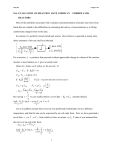 ChE 505 Chapter 10A 10A. EVALUATION OF REACTION RATE FORMS IN STIRRED TANK REACTORS Most of the problems associated with evaluation and determination of proper rate forms from batch data are related to the difficulties in estimating derivatives of concentrations or in fitting cumbersome integral forms to the data. In contrast, if a perfectly mixed stirred tank reactor shown below is operated at steady state, direct estimates of the rate itself are obtained. FAo mol A h q L C mol h Ao L FA mol A h q CA mol L For a reaction A products that proceeds without appreciable change in volume of the reaction mixture a mass balance on A gives at steady state: Rate in Rate out Rate of Re action O FAo FA RA V 0 FAo , F A in mol / hr RA mol V L reaction mixture in the reactor hr lit L FAo q CAo F A q CA q hr F F A CAo C A RA Ao V V / q V By varying we can readily obtain a set of data RA vs CA and plot directly q log RA log k log CA as Y vs X . X Y Let us in addition assume that every run was performed isothermally, but at a different temperature, and that the rate can be expressed by an n-th order form. Now we have generated a set of data - r A vs T vs C A from which we have to extract , ko , E since it was assumed that the rate is of an n-th order form: RA ko e E /RT CA log RA log k o Y E 1 log CA 2.3R T X1 X2 1 ChE 505 Chapter 10A Say we had N-measurements. Then Yi A B X1i CX 2i ; i 1,2... N X1i 1 Ti ; X2i log CAi Yi log RA predicted at i ; A log k o , B E ,C 2.3 R X1i , X2i , Yi are known at every data point. We want to minimize the sum of the squares of the errors E yi Yi where yi log RAi measured at point i. N S wi yi Yi 2 i1 S S S O A B C which yields the three linear equations for best estimates of A,B,C (when wi = 1) N N N yi AN B X1i C X2i i1 N i1 N i1 N N yi A X1i B X 1i C X1i X2i i1 N i1 N i 1 2 i1 N N X2i yi A X2i B X1i X2i C X 2i i1 i1 i1 2 i1 Thus, multiple linear regression can be used successfully to determine all three parameters but at some loss of statistical rigor due to the logarithmic transformation performed. Often multiple linear regression is adequate to determine the parameters with satisfactory accuracy. When further refinements are needed, one should use the results of linear regression analysis as the starting estimates of the parameters and proceed to refine them by nonlinear regression. Suppose we wanted to find now the values of parameters that minimize the sum of the squares of errors in the original space. Now S is defined by: N S yi Ae i1 BX 1i C 2 X 2i wi A All of the techniques will rely on some sort of iteration scheme. Briefly if P B is the vector C of parameters and P k is the k-th guess for parameters, P k1 is k 1 improved guess given by P k1 k P RG 2 ChE 505 Chapter 10A where T S S S G A B C P k is the gradient vector in the direction of increasing (decreasing S), R is a matrix, the components of which determine whether in search of the minimum of S we will move directly in the gradient direction or at some angle to the gradient direction, is a scalar regulating the size of the step taken in improving the parameter value. For example if R I is the identity matrix 1 0 0 R 0 1 0 0 0 1 P k 1 P k G and we have the steepest descent method. If, however, R is related to the Hessian matrix 1 2 S 2 S 2 S A 2 A B A C 2 S 2 S 2 S R A B B2 B C 2 2 2 S S S A C B C C 2 one has the Newton-Raphson Method, and with approximations to R the Gaus-Newton Method. Some available computer programs would require explicit expressions for the partial S 2 S , , etc. to evaluate G and R . Others estimate them by finite differences. derivatives A A B Further information on parameter estimation in rate equations can be found in: 1. Hanns Hofmann, "Industrial Process Kinetics and Parameter Estimation", in 1st Int. Symp. Chem. React. Eng. (H. Hulburt, editor), Advances in Chemistry 109, pp 519-534 (1972). 2. John H. Seinfeld and Leon Lapidus, "Mathematical Methods in Chemical Engineering, Vol. 3 Process Modeling, Estimation and Identification", Chapter 7, pp. 339-418, Prentice-Hall, N.J. (1974). 3 ChE 505 Chapter 10A 10A.1 Review of Kinetic Forms The following few pages summarize the integrated most commonly encountered kinetic forms in batch reactors. Only the frequently encountered reaction rates for single reactions are integrated and presented. Expressions for some simpler multiple reactions can also be readily found and are given in almost all textbooks (Carberry, Levenspiel, etc.). We have seen that reaction rates are functions of temperature and composition and usually are much more sensitive to changes in temperature than in composition (i.e the rate changes much more dramatically with temperature than with composition). Consider an n-th order irreversible reaction RA k oe E /RT n CA with E = 20,000 cal; n = 2. At constant temperature doubling the concentration would increase the rate by a factor of 4. However, doubling the temperature from 300K to 600K would increase the rate at constant concentration by a factor of 17 x 106, i.e, seventeen million times! An increase of 27o i.e of 1.09 times the original temperature (less than 10%) would increase the rate by a factor of 4. Thus, for single irreversible reactions we should choose the highest allowable temperatures in order to get the highest rates. For a reversible reaction the problem is slightly more complicated. For example, for a first order reversible reaction we have RA k10e E1 / RT CA k20e E2 /RT CP for a reaction A = P. At equilibrium - RA = 0 . k10 e k 20 ( E 1 E 2 ) RT CP CAo x A xA e 1 x Ae Kc C P Kc CA eq CA CAo 1 x A x Ae Kc 1 Kc Now, if we raise the concentration of A, the net rate forward will increase while the equilibrium remains unaffected. 4 ChE 505 Chapter 10A 1.0 locus of maximu m rates direction of increasing rates xA -RA =0 (X A ) e T Figure 1a. Conversion vs Temperature for an Exothermic Reaction -RA =0 (X A) e xA T Figure 1b. Conversion vs Temperature for an Endothermic Reaction If we raise the temperature, th