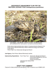 BIODIVERSITY MANAGEMENT PLAN FOR THE WESTERN LEOPARD TOAD Amietophrynus pantherinus Tony Rebelo1, John Measey2, Atherton de Villiers3, & Clifford Dorse4 with contributions from Julie Anderson, Joy Garman and Evanne Rothwell 1 South African National Biodiversity Institute: Threatened Species Research Unit, South African National Biodiversity Institute: Molecular Ecology and Evolution 3 Cape Nature 4 City of Cape Town: Biodiversity Management Branch 2 Lead Agency: South African National Biodiversity Institute Implementing Organizations: City of Cape Town: Biodiversity Management Branch Environment Management Services Parks and Forests Roads and Stormwater Table Mountain National Park DEA&DP DRAFT FOR COMMENT Prepared for National Biodiversity Management Plan for Species as per NEMBA 2004 1 1.1 Table of Contents 1.1 Table of Contents 1.2 Abbreviations, Acronyms and Glossary of Terms 2 Executive summary 3 Introduction. 4 Background 4.1: Conservation status and legislative context 4.2: Species details 4.3: Role players and planning methodology 5 Aim of the plan 6 Threats and problems identified 7 Action Plan 8 Monitoring 9 Stakeholder consultation list 10 Proof of Compliance 11 References 12 Appendixes x x x x x x x x x x x x x x x x 1.2 Abbreviations, Acronyms and Glossary of Terms 1.2.1. Abbreviations 1.2.2. Acronyms CapeNature CoCT CoCT: BMB CoCT: EMS DEADP DEAT HR LUPO SANBI SANParks TMF TMNP Western Cape Nature Conservation City of Cape Town City of Cape Town: Biodiversity Management Branch City of Cape Town: Environmental Management Services Department of Environmental Affairs and Development Planning Department of Environmental Affairs and Tourism Ikapa Honorary Rangers Land Use Planning Ordinance South African National Biodiversity Institute South African National Parks Table Mountain Fund Table Mountain National Park 1.2.3. Glossary Adult toads Breeding toads, specifically those that visit Breeding sites. This excludes toadlets and subadults. Generally any toad more than 85 mm long (males; snout to vent) and 95mm long (females). Amplexus The mating embrace of male upon female employed by toads when mating. Blackspot A road with a high number of toads crossing and killed annually (5 on any night per running km, or more than 20 per season per running km). These are usually adjacent Breeding sites. Breeding sites Waterbodies (ponds, pools, rivers, canals, wetlands, dams, vleis) used by toads for mating, and in which eggs and tadpoles develop and toadlets remain until ready to disperse. Foraging range That habitat used by toads during the non-breeding season. Generally any area within 2km radius of a known Breeding site. Migration Movement of toads to and from Breeding sites. This involves toads moving to and leaving the Breeding sites during August and toadlets leaving water bodies during summer. All three of these movements are usually “explosive” and last only 1-3 days, but the actual dates, durations and intensity vary unpredictably between years and are determined mainly by climate. Mortality threshold The number of deaths per kilometer of road per day per Breeding site population that exceeds acceptable limits. Until more research is undertaken this is arbitrarily set at 5% of the breeding population per year. Actual figures per road will depend on duration of migration, size of the Breeding site and foraging range of toads relative to roads. Smaller Breeding sites and phases where populations are declining may require more stringent thresholds. Sub-adults Toads more than 30 mm and less than 85 mm long (snout to vent). Cf: adult and toadlets. Tadpoles The juvenile, aquatic phase of toads, between eggs and toadlets Synonym: polywiggles, polywogs. Toadlets Newly metamorphosed toads in their first migration away from breeding sites. Generally, any toad less than 30mm long (snout to vent). Cf: adult. Toad-friendly barriers Any barrier (walls, fences, gates, electric fences, curbs, etc.) that allow toads in amplexus passage (arbitrarily set at a 100mm diam. gap at ground level) at least once every running 20m. Toads Unless specified, any metamorphosed individual of the Western Leopard Toad, excluding eggs and tadpoles, but including toadlets. 2 Executive Summary. 3 Introduction. A succinct aims and objectives of the BMP-S; Timescales to be included; Biodiversity justification; Benefits of the plan; Briefly introduce the species and why it needs a BMP-S; Anticipated outcomes; and, Brief overview of the legal mandate. 4 Background. 4.1: Conservation status and legislative context: 4.1.1 Parties responsible for management and signing of MoU: SANBI: Threatened Species Programme – monitoring Responsible person (Monitoring): Domitilla Raimondo; SANBI: Threatened Species Research Programme – Research and coordination; Responsible person (Research): John Measey; CoCT: Biodiversity Management Branch – coordination and monitoring; Responsible person (Biodiversity Coordinator): Clifford Dorse; Responsible person (Area Manager - South Area): Dalton Gibbs; CoCT: City Parks – mowing: Verge maintenance; Responsible person (Director City Parks): Christa la Roux , CoCT: Roads and Stormwater - dredging, curbs, road signage, road safety; Responsible person (Road policy & maintenance): Duncan Daries, Responsible person (Stormwater): Mogamat Kenny, CoCT: Environmental Management Services – policy, planning and building plan approval, compliance; Responsible person (EMS): Joy Garmen/Andy Greenwood; DEA&DP: Director: Anthony Barnes; DEA&DP: Deputy Director (Region B2): Paul Hardcastle; DEA&DP: Deputy Director (Region B1): Zaahir Toefy; DEA&DP: Integrated Enviro Management: Tammy Christie – tchristie@pgwc.gov.za; DEA&DP: Spatial Planning: Melissa Naiker – mnaiker@pgwc.gov.za; DEA&DP: Deputy Director Biodiversity Management and Climate change: Dennis Laidler – dlaidler@pgwc.gov.za; CapeNature: To sign MoU with DEA&DP TMNP – monitoring and rescue coordination: Leighan Mossop; Responsible pe