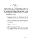 Chapter 5 Bonds and Their Valuation Mini-Case Sam Strother and Shawna Tibbs are vice-presidents of Mutual of Seattle Insurance Company and co-directors of the company's pension fund management division. A major new client, the Northwestern Municipal Alliance, has requested that Mutual of Seattle present an investment seminar to the mayors of the represented cities, and Strother and Tibbs, who will make the actual presentation, have asked you to help them by answering the following questions. Because the Boeing Company operates in one of the league's cities, you are to work Boeing into the presentation. a. What are the key features of a bond? Answer: 1. Par or face value. We generally assume a $1,000 par value, but par can be anything, and often $5,000 or more is used. With registered bonds, which is what are issued today, if you bought $50,000 worth, that amount would appear on the certificate. 2. Coupon rate. The dollar coupon is the "rent" on the money borrowed, which is generally the par value of the bond. The coupon rate is the annual interest payment divided by the par value, and it is generally set at the value of r on the day the bond is issued. 3. Maturity. This is the number of years until the bond matures and the issuer must repay the loan (return the par value). 4. Issue date. This is the date the bonds were issued. 5. Default risk is inherent in all bonds except treasury bonds--will the issuer have the cash to make the promised payments? Bonds are rated from AAA to D, and the lower the rating the riskier the bond, the higher its default risk premium, and, consequently, the higher its required rate of return, r. Mini Case: 6 - 1 b. What are call provisions and sinking fund provisions? Do these provisions make bonds more or less risky? Answer: A call provision is a provision in a bond contract that gives the issuing corporation the right to redeem the bonds under specified terms prior to the normal maturity date. The call provision generally states that the company must pay the bondholders an amount greater than the par value if they are called. The additional sum, which is called a call premium, is typically set equal to one year's interest if the bonds are called during the first year, and the premium declines at a constant rate of INT/n each year thereafter. A sinking fund provision is a provision in a bond contract that requires the issuer to retire a portion of the bond issue each year. A sinking fund provision facilitates the orderly retirement of the bond issue. The call privilege is valuable to the firm but potentially detrimental to the investor, especially if the bonds were issued in a period when interest rates were cyclically high. Therefore, bonds with a call provision are riskier than those without a call provision. Accordingly, the interest rate on a new issue of callable bonds will exceed that on a new issue of noncallable bonds. Although sinking funds are designed to protect bondholders by ensuring that an issue is retired in an orderly fashion, it must be recognized that sinking funds will at times work to the detriment of bondholders. On balance, however, bonds that provide for a sinking fund are regarded as being safer than those without such a provision, so at the time they are issued sinking fund bonds have lower coupon rates than otherwise similar bonds without sinking funds. Mini Case: 6 - 2 c. How is the value of any asset whose value is based on expected future cash flows determined? Answer: 0 1 2 3 | | | | CF1 CF2 CF3 n | CFn PV CF1 PV CF2 The value of an asset is merely the present value of its expected future cash flows: n VALUE = PV = CF 3 CF t CF1 CF 2 CF n + + + ... + = . 1 2 3 n t (1 + r ) (1 + r ) (1 + r ) (1 + r ) t = 1 (1 + r ) If the cash flows have widely varying risk, or if the yield curve is not horizontal, which signifies that interest rates are expected to change over the life of the cash flows, it would be logical for each period's cash flow to have a different discount rate. However, it is very difficult to make such adjustments; hence it is common practice to use a single discount rate for all cash flows. The discount rate is the opportunity cost of capital; that is, it is the rate of return that could be obtained on alternative investments of similar risk. Thus, the discount rate depends primarily on factors discussed back in chapter 1: ri = r* + IP + LP + MRP + DRP. Mini Case: 6 - 3 d. How is the value of a bond determined? What is the value of a 10-year, $1,000 par value bond with a 10 percent annual coupon if its required rate of return is 10 percent? Answer: A bond has a specific cash flow pattern consisting of a stream of constant interest payments plus the return of par at maturity. The annual coupon payment is the cash flow: pmt = (coupon rate) (par value) = 0.1($1,000) = $100. For a 10-year, 10 percent annual coupon bond, the bond's value is found as follows: 0 | 10% 1 2 3 | | | 100 100 100 9 10 | 100 90.91 82.64 | 100 + 1,000 . . . 38.55 385.54 1,000.00 Expressed as an equation, we have: VB = $100 1 + ... + $100 10 + $1,000 (1 + r ) (1 + r ) (1 + r )10 = $90.91 + . . . + $38.55 + $385.54 = $1,000. or: VB = $100(PVIFA10%,10) + $1,000(PVIF10%,10) = $100 ((1-1/(1+.1)10)/0.10)+ $1,000 (1/(1+0.10)10). The bond consists of a 10-year, 10% annuity of $100 per year plus a $1,000 lump sum payment at t = 10: PV Annuity = $ 614.46 PV Maturity Value = 385.54 Value Of Bond = $1,000.00 The mathematics of bond valuation is programmed into financial calculators which do the operation in one step, so the easy way to solve bond valuation problems is with a financial calculator. Input n = 10, rd = i = 10, PMT = 100, and FV = 1000, and then press PV to find the bond's value, $1,000. Then change n from 10 to 1 and press PV to get the value of the 1-year bond, which is also $1,000. Mini Case: 6 - 4 e. 1. What would be the value of the bond described in part d if, just after it had been issued, the expected inflation rate rose by 3 percentage poin