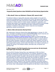 NIAGADS FAQS Latest revision: 4/17/15 Frequently Asked Questions about NIAGADS and Data Sharing Opportunities 1. Why should I share my Alzheimer’s Disease (AD) research data? The National Institute on Aging (NIA) advocates making available to the public the results and accomplishments of the activities that it funds. NIA assures that research resources developed with public funds become readily available to the broader research community in a timely manner for further research, development, application, and secondary data analysis in the expectation that this will lead to products and knowledge of benefit to the public health. Sharing research data is essential for expedited translation of Alzheimer’s disease (AD) research results into new therapeutic approaches, products and procedures. 2. What is NIA’s AD Genomics Sharing Policy? NIH implemented a Genomics Sharing Policy http://gds.nih.gov/ on January 25, 2015. NIA is committed to facilitating the broad sharing of NIH funded research resources and has had a sharing policy for AD genetics in place since 2003. The NIA Genomics of Alzheimer’s Disease Sharing Policy applies to all NIA-funded large scale Alzheimer’s disease genetic and genomic research as defined in the NIH Genomic Data Sharing Policy. As for the NIH Genomic Data Sharing Policy, in certain instances NIA may expect submission of data from smaller scale research projects in the area of the genetics and genomics of Alzheimer’s disease based on the state of the science, the NIA’s programmatic priorities, and the utility of the data for the research community. It includes the sharing of the biological samples, phenotypic data, and genetic and genotypic data. 3. What changes in the field of genetics have occurred over the last decade that impact upon the study of AD genetics? Since the NIA AD Genetics Sharing Policy was implemented in 2003, the field of genetics has experienced monumental advances. For example, development of high throughput and massively parallel sequencing and dramatic reductions in sequencing costs have resulted in historic increases in the amount and nature of available data. Next generation and deep sequencing approaches have provided the capacity to analyze the entire exome or even the entire genome. Sequencing approaches are being extensively applied to RNA transcripts (RNA-Seq) to analyze RNA abundance and identify splice variants. Methods to map chromatin modification and protein binding to the genome by chromatic immunoprecipitation-sequencing approaches (ChIP-Seq) have also evolved. Other methodologies under development are also likely to further advance NIAGADS Data Request Guidelines Last Update: 2/17/2016 Page 1 of 7 NIAGADS FAQS the field in the future. These advances have already accelerated AD risk factor gene detection and will dramatically promote understanding the Alzheimer’s phenotype. This in turn will improve the likelihood of rapid development of novel therapeutic approaches. 4. How have changes in the field of genetics impacted upon the kind of Alzheimer’s- related data that can be shared under the Sharing Policy? New analytical approaches have recently become available to the research community to help decipher the underlying biology of AD. Advances in sequencing capability along with improved ability to analyze the data allow a more integrated analytical approach to discern the underlying genetic architecture of AD. Broad sharing of diverse, but related, data provides a unique opportunity to discover the underlying causes of AD and to discover new therapeutic approaches. 5. What are some examples of the types of data related to genetics that may be shared under the Sharing Policy in order to capture the full spectrum of genetic and genomic variation in Alzheimer’s disease? There are a myriad of small and large-scale differences in the human genome. Complete characterization of the genetics of AD will require identification of the full spectrum of genomic variation in large and diverse sample sets. A partial list of the types of data that NIA includes in the NIA AD Genetics Sharing Policy is: Single nucleotide variants (SNPs). Platforms include polymerase-chain reaction (PCR)-based assays, SNP genotyping arrays including Genome Wide Association Studies (GWAS) and exome chip analysis, or highthroughput sequencing technologies; Whole exome sequences; Whole genome sequences; Sequences of targeted genomic regions; Structural variants such as chromosomal rearrangements, insertions and deletions; copy number variants; structural variation within functional genetic elements; structural variation in non-coding regions of the genome; Expression data including genome-wide expression analysis; Epigenetic data such as DNA methylation, histone modification, and chromatin conformation changes; Transcriptome data (e.g. data on gene products such as RNAs); Proteomic data (e.g. gene products such as proteins); Metabolomic data (e.g. indirect products of genes, such as metabolites); Sequence changes in mitochondrial DNA; Biomarker data; Neuroimaging data that are associated with genetics findings. NIAGADS Data Request Guidelines Last Update: 2/17/2016 Page 2 of 7 NIAGADS FAQS 6. What is NIAGADS? NIAGADS is the NIA Genetics of Alzheimer’s Disease Data Storage Site. NIAGADS is a national data repository which is designed to facilitate access by qualified investigators to data for the study of various aspects of the AD phenotype. NIAGADS serves the AD research community at large as a site to enhance the capacity to find new therapeutic approaches and drug therapies for AD. Data generated from NIA funded genetics studies are stored at NIAGADS, and include a broad range of data from genome wide association studies, next generation sequencing, targeted genome sequencing, and related primary and secondary data. NIAGADS also provides links to existing data sets, such as those for the Alzheimer’s Disease Neuroimaging Initiative (http://www.