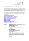 Tools for e-Learning: Building and Supporting Skills for Practitioners This is a programme of 10 learning modules which, although aimed mainly at lecturers, will also be of interest to other staff in colleges such as learning resource staff and will enable all participants to enhance their use of ILT for teaching and learning. The content of each of the modules is signposted to the LLUK standards for ILT. A certificate will be awarded to each participant on completion of the programme. This could be used to contribute to relevant CPD portfolios. The main programme of modules are designed for initial delivery on a face-to-face basis in each college as a series of sessions of 3-hour modules, and each of these will comprise a mixture of presentations, discussions & practical activities. Continuing support for those who have participated in the college sessions will also be provided via a secure area on RSCni’s Moodle server. Click the links below to see module outlines: Module 1 – Making Materials Interactive – Using MS Word Module 2 – Making Materials Interactive – Using MS PowerPoint Module 3 – Breaking Out of the Cell: Using MS Excel Module 4 – e-Resources, Copyright and Plagiarism Module 5 – An Introduction to Using Sound and Images Module 6 – Accessibility for All Module 7 – Supporting Online Communication with Learners Module 8 – e-Assessment Module 9 – Effective Web Searching and Information Skills Module 10 – Supporting Learning with VLE Charging Policy and Booking Arrangements Module 1 Making Materials Interactive - Using MS Word is divided into three sections, candidate can select which of the sections they need to complete, this will depend upon their skill Section 1 Basic Word covers; Setting up a word document, Changing default settings, Cut and Paste, Inserting bullet points, Line spacing and alignment, Designing forms, Using Text boxes. Section 2 Intermediate Word; Inserting Images, Using Sounds, Cut and Paste, Find and Replace, Line Spacing, Auto Summarise, Hyperlinks, Comments. Section 3 Advanced Word; Inserting Breaks, Headers and Footers, Footnote/endnote, Document Map, Find/Replace, Styles, Bookmarks/Hyperlinks, Cross reference, Bibliography, Index, Table of Contents, Comments, Protect document. These sections will be mainly practical and will be constructed around structured exercises Back to Menu Stimulating and Supporting Innovation in Learning Module 2 Making Materials Interactive – Using MS PowerPoint MS PowerPoint is divided into three sections, candidate can select which of the sections they need to complete this will depend upon their level of skill. Section One PowerPoint for Beginners; Creating and Saving Presentation, Font Style and Colour, Background Colour, Inserting new slides, Clip art, Rearranging Text and Slides, Viewing Presentation, Adding Notes. Section Two Intermediate PowerPoint; Creating New Presentation, Insert New Slides, Creating Slide Menu, Inserting Images, Inserting Video, Inserting Sound, Inserting Hyperlinks, Slide Transitions Section Three Advanced PowerPoint; Opening a Presentation, Changing Slide Design, Creating Chart Slide, Using Multimedia, Linking Presentation to Web Page, Summary Slides, Slide Animation and Transition. These sections will be mainly practical and will be constructed around structured exercises. Back to Menu Module 3 Breaking Out of the Cell: Using MS Excel MS Excel is divided into three sections. The participant can select which of the sections they need to complete. This will depend upon their level of skill. Section One Excel – Basic Excel Creating a spreadsheet, entering data, using autofill, inserting/deleting columns/rows, using formulas, Autosum, simple functions, cut, copy and paste, working with sheets, formatting a spreadsheet, working with dates, creating graphs and charts. Section Two Intermediate Excel; IF Function, Absolute and relative addressing, format painter, using multiple sheets, adding comments, setting print titles, creating a template, using an Excel database – forms option, sorting, filtering, splitting screens. Section Three Advanced Excel; Naming ranges, hiding columns/rows, linking workbooks, lookup tables, nested IFs, customising toolbars, using macros, protecting sheets and workbooks, inserting hyperlinks, changing text to columns. These sections will be mainly practical and will be constructed around structured exercises. Back to Menu . Stimulating and Supporting Innovation in Learning Back to Menu Module 4 E-resources, Copyright and Plagiarism A wealth of resources and techniques now exist which serve as a source of teaching resources and exciting examples of new teaching practices. This workshop will explore some of the resources available on the Web – concentrating on JISC resources & services, such as, NLN learning materials and learning objects within the JORUM repository. The module outcomes will include: Briefing participants on legal issues affecting practitioners in the sourcing of materials; Placing teaching and learning the context of copyright & IPR; Introducing participants to services to combat plagiarism. Back to Menu Module 5 An Introduction to Using Sound and Images The use of e-learning and the availability of a wide range of e-resources offer teachers the opportunity to move away from entirely text based materials to support learning. The use of sound and vision can provide a powerful means of illustrating concepts and affective situations and acting as stimuli to discussions. The module outcomes will include: Showing participants some readily available sources of online images and sounds; e.g. an introduction to creating sound files and finding podcasts Demonstrating how these can be incorporated into MS Word documents and PowerPoint presentations; Giving participants the skills to achieve this in building their own curriculum materials Participants wanting to take these skills to a higher level and to learn editing techniques can the