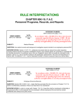 RULE INTERPRETATIONS CHAPTER 60K-10, F.A.C. Personnel Programs, Records, and Reports REFERENCE NUMBER: 60K-10.003(1) and (2)(d), F.A.C. MEMO NUMBER: 60K-10-01-1999-055 SUBJECT: DATE: January 31, 1999 In accordance with s. 110.1055, F.S., these rules became statutorily repealed effective January 1, 2002. All rule interpretations are pending legal review for statutory authority and applicability to recently promulgated rules. Medical Records QUESTION: Are medical records and background investigation reports included in an employee’s personnel file? INTERPRETATION: Section 119.07, F.S., addresses documents that are exempt from public inspection, including medical records and specific investigative reports. Such exempt papers are to be filed in a separate file for exempt documents. If a particular report, such as a fingerprint report, does not qualify for exemption under Section 119.07, F.S., then it should be placed in the employee’s personnel file. The word "correspondence" in Section 60K-10.003(2)(d), F.A.C., may be interpreted broadly to include nonexempt reports as well as letters. REFERENCE NUMBER: 60K-10.003(1), F.A.C. MEMO NUMBER: 60K-10-01-1999-056 SUBJECT: DATE: January 31, 1999 In accordance with s. 110.1055, F.S., this rule became statutorily repealed effective January 1, 2002. All rule interpretations are pending legal review for statutory authority and applicability to recently promulgated rules. Employee Personnel Records QUESTION: Section 60K-10.003, F.A.C., states that files exempted from the provisions of Chapter 119, F.S., shall be confidentially maintained. Where are these files to be maintained? INTERPRETATION: In order to comply with Chapter 119, F.S., these files shall be maintained confidentially in the personnel office in a file separate from the employee’s official employment file and shall be marked confidential and exempt from public record. REFERENCE NUMBER: 60K-10.003(1), F.A.C. MEMO NUMBER: 60K-10-01-1999-057 SUBJECT: DATE: January 31, 1999 In accordance with s. 110.1055, F.S., this rule became statutorily repealed effective January 1, 2002. All rule interpretations are pending legal review for statutory authority and applicability to recently promulgated rules. Disclosure of Educational Records Submitted with Employment Applications QUESTION: Are educational records, including school transcripts, exempt from disclosure by a state agency which received such documentation along with an application for employment? INTERPRETATION: There is no blanket protection from disclosure for school records submitted to a state agency which is not an educational institution. However, certain information contained in those documents might need to be protected. Therefore, before providing access to records pursuant to a public records request, the documents must be examined to determine whether they relate to an individual, such as a law enforcement officer or correctional officer, who is entitled to confidentiality of some information pursuant to Section 119.07(3)(i)1., F.S. Additionally, the social security numbers of present and former employees must be removed if the number is contained in an employment record. When medical information is contained in such records regarding even prospective employees, that information must also be edited unless written permission or a court order is received. REFERENCE NUMBER: 60K-10.003(3), 60K-3.0092 and 60K-3.0072(1), F.A.C. MEMO NUMBER: 60K-10-01-1999-058 SUBJECT: DATE: January 31, 1999 In accordance with s. 110.1055, F.S., these rules became statutorily repealed effective January 1, 2002. All rule interpretations are pending legal review for statutory authority and applicability to recently promulgated rules. Disclosure of Information in Personnel Files & Records QUESTION: Does a request to review a personnel file have to be in "writing"? INTERPRETATION: No. The provisions of Chapter 119, F.S., make it clear that the custodian of records is required to allow inspection of non-privileged public records upon request. Except as exempted by Chapter 119, F.S., or other statute, personnel records are public records within the meaning of Chapter 119, F.S., and therefore, any person is entitled to inspection of those records upon reasonable conditions. Section 60K-10.003(3), F.A.C., cannot be construed as conflicting with the right to inspection pursuant to Chapter 119, F.S., or as restricting any such right. Accordingly, written permission from an employee to inspect the personnel file is not necessary. QUESTION: Is there a limitation on the type of information requested by telephone, in writing or in person that can be given from an employee’s personnel file? INTERPRETATION: Chapter 119, F.S., allows the inspection and copying of non-privileged public records. No obligation is imposed by Chapter 119, F.S., upon the custodian of records to divulge information in writing or telephonically. An agency can, consistent with Chapter 119, F.S., require personal inspection of those records by the party requesting to inspect and copy and could institute procedures whereby the employee whose record is to be inspected will be notified prior to the inspection occurring. QUESTION: Are personnel files open to the public? INTERPRETATION: The files are open for public inspection, however, documents containing the social security number must be copied and the numbers blackened out or eliminated. QUESTION: May we deny access to files and records which contain social security numbers or are we required to remove such numbers from the documents prior to providing access? INTERPRETATION: Access must be provided; however, the social security number must be deleted from the record before access is approved. QUESTION: If a public records request is received for documents or a request to review a personnel file is received, who is responsible for paying for the copies furnished or copies made requiring deletion of social security numbers? INTERPRETATION: Sect