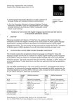 GRADUATE ADMISSIONS AND FUNDING University Offices, Wellington Square, Oxford OX1 2JD To: Divisional Graduate Studies Officers [to circulate to Directors of Graduate Studies and Graduate Admissions administrators] 15 August 2011 Updated 31 August 2012 cc: Pro-Vice-Chancellor (Education), Academic Registrar, Graduate Admissions Committee, Tutors for Graduates/Senior Tutors, college Graduate Admissions administrators; Robert Vanderplank; James Tibbert; Jared Hutchings Guidance on how to deal with English language requirements and test waivers in the graduate admissions process _ 1. Overview Following consultation with divisions in Trinity Term, the guidance in this circular has been developed to provide the collegiate University with a robust process for setting English language requirements in graduate admissions offer letters and considering whether to grant English language test waivers. The new process will also ensure that we comply with the 2011 changes to UK Border Agency (UKBA) regulations for non-EU international students who need a visa. 2. The University’s and the UKBA’s English language requirements The University requires that all applicants whose first language is not English or whose first language is English but who are not a national of a majority English-speaking country recognised by the UKBA to submit the results of a recognised English language test as part of the graduate admissions process. The results must meet either the University’s ‘standard’ or ‘higher’ level as set out in the table below. The test should be no more than two years old at the time the application is submitted. The new UKBA requirements for a Tier 4 visa, issued 21 April 2011, are generally lower than the University’s, but to ensure the University regulations fully incorporate the UKBA requirements, the University regulations now set the UKBA’s minimum scores at component level (speaking, writing, etc.) for TOEFL and IELTS, rather than at overall level. Test type Standard overall score Additional requirement Higher overall score Additional requirement IELTS TOEFL 7.0 600 7.5 630 Internet-based TOEFL 100 Minimum 6.5 per component Minimum Test of Written English score – 4.5 Minimum component scores: Listening – 22 Reading – 24 Speaking – 25 Writing – 24 Minimum 7.0 per component Minimum Test of Written English score – 5.0 Minimum component scores: Listening – 22 Reading – 24 Speaking – 25 Writing – 24 Cambridge Certificate of Proficiency in English Cambridge Certificate in Advanced English C B A Not Accepted 110 General Enquiries Tel: +44 (0)1865 270059 Direct Line Tel: +44 (0)1865 270051 Fax: +44 (0)1865 270049 Email: nadia.pollini@admin.ox.ac.uk Web: www.ox.ac.uk/graduate 2 The list of the majority English-speaking countries used by the UKBA to define whether a student is exempt from the English language requirements is: Australia; Canada; New Zealand; USA; Caribbean (Antigua and Barbuda, The Bahamas, Barbados, Dominica, Grenada, Jamaica, St Kitts and Nevis, St Lucia, St Vincent and the Grenadines, Trinidad and Tobago); South America (Belize, Guyana). 3. New English Language Skills section of graduate application form To assist departments in assessing candidates’ English language competence against the University’s English language criteria and the UKBA regulations, two questions have been added to the Language Skills section of the graduate application form. After asking candidates to indicate whether their first language is English, the form reads, “The following questions are included to assist the University to assess applicable English language test requirements and to comply with the United Kingdom Border Agency requirements: Have you completed, or are you completing, a full-time degree-level course entirely taught and assessed in English? Have you completed a course under a United Kingdom Tier 4 child visa?” 4. How candidates request a waiver of the English language test requirements From 1 September 2011, the Application Guide tells applicants wishing to request an English language test waiver that they must submit the request as part of their application (rather than at any time in the admissions process, as in the past). There is no form for such requests. Applicants are simply asked to upload a letter with their online form stating the reasons why they believe they should be exempted from submitting a language test score (or enclose a written request with their paper application). As in the past, Graduate Admissions and Funding will record requests on the student system. To cover the cases where candidates do not submit a test waiver request at the time of application, but for instance realise only when they receive their offer letter with an English language test condition that they have grounds for doing so, it will be possible for departments to consider such later requests. However, to try and streamline the process as much as possible the option to submit a later request will not be publicised in the Application Guide. 5. How and why departments may waive the English language test requirements i. Valid reasons for an English language test waiver The usual reasons for granting a test waiver which meet the UKBA English language requirements are as set out in the revised policy in the Application Guide for applicants from 1 September 2011: “The requirement to provide proof of English language proficiency may be waived, at the discretion of the University, in cases where an applicant successfully completed or is currently completing a full-time degree-level course of a minimum of nine months at a recognised institution where the 3 medium of instruction and assessment is entirely in English. If you are still completing your degree and you are offered a place, you will usually be requested to show evidence that you have successfully completed your degree as a condition of your offer. It is expected that you will complete your degree and sh