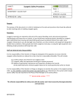 SUBJECT: Cryogenic Safety Procedures SAFETY PAGE: 1 OF: 9 DEPARTMENT: Scientific Staff EFFECTIVE: July 2010 APPROVED BY: Safety REVISED: April 2013 Purpose: The purpose of this document is to inform individuals on the safe work practices that should be adhered to when working with or handling cryogenic gases. Procedure; Cryogenic materials are extremely cold and call for special handling, tools and personal protection. Liquified gases will freeze skin on contact, so you should wear nonporous gloves intended for cryogenic work. Boots/total foot covering and long clothing will prevent accidental contact from spills. Since cryogenic temperatures can also damage many materials, use only containers and equipment designed to handle these conditions. Many people work with cryogenics every day, so using the right equipment and following simple procedures will keep them safe. Staff and Administrative Responsibility: It is the responsibility of the Scientist In Charge (or designee) of the apparatus to ensure that the cryogenic safety hazards are reduced to as low a level as is reasonably achievable. This will include: (1) A safety analysis and review for all cryogenic areas (2) Cryogenic safety and operational training for relevant personnel, (3) Upkeep of appropriate maintenance and inspection schedules and records (to be performed by the chemical supplier-based on the small quantity that will be on-hand). It is the responsibility of the Scientist in Charge or designee to maintain the system in the original working order, i.e. the condition in which the system was approved for use. Alterations to the system which impact worker safety must be reported to the Physics Plant Manager or the Safety Officer. *** NEVER WORK ALONE! ***** The ultimate responsibility for safety rests with the worker and is best ensured by thorough education and awareness 02/16/2016 SUBJECT: Cryogenic Safety Procedures SAFETY DEPARTMENT: Scientific Staff PAGE: 2 OF: 9 EFFECTIVE: July 2010 APPROVED BY: Safety REVISED: April 2013 Primary Hazards Cryogenic materials have temperatures roughly lower than -150C. This will instantly cause frostbite or burn any exposed skin. Prolonged contact will cause serious, possibly life-threatening injury. Because of this hazard, avoid any direct contact with cryogenic solids or liquids to your skin or eyes. Very low temperatures cause normally soft, flexible objects such as hoses, gaskets and seals to become brittle and crack. Cracked parts may have sharp edges, posing a laceration hazard. Store cryogenic materials only in containers specifically designed for the purpose. Certain closed-cell plastic foams, such as styrofoam, can contain liquid nitrogen for short periods of time. Metals will undergo thermal contraction and possibly crack. They will also become extremely cold to the touch. The safety hazards associated with the use of cryogenic liquids can be categorized as follows: A. Cold contact burns Liquid or low-temperature gas from any of the specified cryogenic substances will produce effects on the skin similar to a burn. B. Asphyxiation Degrees of asphyxia will occur when the oxygen content of the working environment is less than 20.9% by volume. Effects from oxygen deficiency become noticeable at levels below ~18% and sudden death may occur at ~6% oxygen content by volume. This decrease in oxygen content can be caused by a failure/leak of the cryogenic vessel or transfer line and subsequent vaporization of the cryogen. C. Explosion - Pressure Heat flux into the cryogen from the environment will vaporize the liquid and potentially cause pressure buildup in cryogenic containment vessels and transfer lines. Adequate pressure relief must be provided to all parts of a system to permit this routine outgassing and prevent explosion. D. Explosion - Chemical Cryogenic fluids with a boiling point below that of liquid oxygen are able to condense oxygen from the atmosphere. Repeated replenishment of the system can thereby cause oxygen to accumulate as an unwanted contaminant. Similar oxygen enrichment may occur where condensed air accumulates on the exterior of cryogenic piping. Violent reactions, e.g. rapid combustion or explosion, may occur if the materials which make contact with the oxygen are combustible. 02/16/2016 SUBJECT: Cryogenic Safety Procedures SAFETY PAGE: 3 OF: 9 DEPARTMENT: Scientific Staff EFFECTIVE: July 2010 APPROVED BY: Safety REVISED: April 2013 Secondary Hazards Cryogenic liquids boil at room temperature, giving off gases. These gases will be extremely cold. While the cooling power of a gas is less than a liquid's, you should still keep it at a safe distance. Never store cryogenic liquids in a sealed container without pressure relief. As the liquids turn to gas, pressure will build past the container's bursting point, possibly resulting in an explosion. First Aid Measures EYES: Never introduce ointment or oil into the eyes without medical advice! In case of freezing or cryogenic "burns" caused by rapidly evaporating liquid, DO NOT WASH THE EYES WITH HOT OR EVEN TEPID WATER! Remove victim from the source of contamination. For contact with small amounts of liquid, open the eyelids wide to allow the liquid to evaporate. For contact with large amounts, rinse with a low pressure stream of cool water for 15 minutes. Refer the victim to an ophthalmologist for treatment and follow up. If the victim cannot tolerate light, protect the eyes with dark glasses. The use of bandages is not recommended as keeping the eyelids closed or exerting pressure on the eyelid may cause further damage. SKIN: For dermal contact or frostbite: Remove contaminated clothing and flush affected areas with lukewarm water. DO NOT USE HOT WATER. A physician should see the patient promptly if contact with the product has resulted in blistering of the dermal surface or in deep tissue freezing. INGESTION: A physician should see the patient promptly if the cryogenic "burn" has resulted in blistering of the dermal 