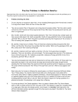 Practice Problems in Mendelian Genetics Important Note: Get in the habit right from the first of writing down the work necessary to solve the problems you do. You will be required to show work on any assignment or exam problem. I. Problems Involving One Gene 1. In cats, long hair is recessive to short hair. A true-breeding (homozygous) short-haired male is mated to a long-haired female. What will their kittens look like? 2. Two cats are mated. One of the parent cats is long-haired (recessive allele). The litter which results contains two short-haired and three long-haired kittens. What does the second parent look like, and what is its genotype? 3. Mrs. And Mr. Smith both have widow’s peaks (dominant). Their first child also has a widow’s peak, but their second child doesn’t. Mr. Smith accuses Mrs. Smith of being unfaithful to him. Is he necessarily justified? Why or why not? Work the genetics problem predicting the frequencies of the versions of this trait among their prospective children. 4. Mr. and Mrs. Jones have six children. Three of them have attached earlobes (recessive) like their father, and the other three have free earlobes like their mother. What are the genotypes of Mr. and Mrs. Jones and of their numerous offspring? 5. Mr. and Mrs. Anderson both have tightly curled hair. (The hair form gene shows incomplete dominance. There are two alleles, curly and straight. The heterozygote has wavy hair.) The Andersons have a child with wavy hair. Mr. Anderson accuses Mrs. Anderson of being unfaithful to him. Is he necessarily justified? Why or why not? 6. Two wavy haired people (one male and one female) marry and have eight children. Of these eight, how many would you expect to be curly haired, how many wavy haired and how many straight haired, assuming that the family follows the expected statistically predicted pattern? Suppose you examine the actual children and discover that three of the eight have curly hair. What do you suppose went wrong? 7. Basic body color for horses is influenced by several genes, on of which has several different alleles. Two of these alleles—the chestnut (dark brown) allele and a diluting (pale cream) allele (often incorrectly called ‘albino’)—display incomplete dominance. A horse heterozygous for these two alleles is a palomino (golden body color with flaxen mane and tail). Is it possible to produce a herd of purebreeding palomino horses? Why or why not? Work the Punnett’s square for mating a palomino to a palomino and predict the phenotypic ratio among their offspring. 8. In certain portions of the Jewish population, there is a genetic disease called Tay Sachs disease, which is fatal to infants within the first five years of life. This disease is caused by a recessive allele of a single gene. Why does this disease persist, even though it is invariably fatal long before the afflicted individual reaches reproductive age? (In other words, why doesn’t the allele for Tay Sachs disease simply disappear?) 9. About 80% of the human population can taste the chemical phenolthiocarbamide (PTC), while the other 20% can’t. This characteristic is governed by a single gene with two alleles, a tasting allele and a non-tasting allele. What does this statistic tell us about which allele (tasting or non-tasting) is dominant? 10. In fruit flies, the gene for wing shape has an unusual allele called ‘curly’ (designated ‘Cy’). The normal (wild type) allele is designated ‘cy.’ A fly homozygous for cy (cy cy) has normal, straight wings. The heterozygote (Cy cy) has wings which curl up on the ends (and, incidentally, can’t really fly). The homozygote for the Cy allele (Cy Cy) never hatches out of the egg. In other words, this allele is lethal in the homozygous condition. If two curly winged flies are mated, and the female lays 100 eggs, predict the following, showing appropriate work: a. How many eggs will produce living offspring? b. How many straight winged flies do you expect among the living offspring? c. What percentage of the living offspring do you expect to be curly winged like the parents? 11. In cattle, there is an allele called dwarf which, in the heterozygote, produces calves with legs which are shorter than normal. This, again, is a homozygous lethal (the homozygous dwarf calves spontaneously abort early or a stillborn). If a dwarf bull is mated to 400 dwarf cows, what phenotypic ratio to you expect among the living offspring? II. Problems Involving Two Genes 1. A man with dark (dominant), curly (see problem I.5.) hair marries a woman with light, straight hair. Their daughter, who happens to have dark hair, marries a man with light, wavy hair. Answer the following questions about this dark-haired daughter and her family. a. Draw a Punnett’s square for this marriage, and predict the phenotypic ratio among the offspring of the daughter and her husband. b. What is the chance that they will have a child with hair just like his or her father’s? 2. In cats, again, black color is dominant to a special, temperature-sensitive albino gene which produces cats with dark legs, faces and tails (Siamese cats, in case you don’t recognize it). A short haired (dominant) Siamese colored female is bred to a long-haired black male. They have eight kittens: 2 black, short-haired; 2 black, longhaired; 2 Siamese, short-haired; and 2 Siamese, long-haired. What were the genotypes of the two parents? 3. Elizabeth is married to John, and they have four children. Elizabeth has a straight nose (recessive) and is able to roll her tongue (dominant). John is also able to roll his tongue, but he has a convex (Roman) nose (dominant). Of their four children, Ellen is just like her father, and Dan is just like his mother. The other children—Anne, who has a convex nose, and Peter, who has a straight nose—are unable to roll their tongues. Please answer the following questions about this family. a. What are the genotypes of Elizabeth and John? b. Elizabeth’s fat