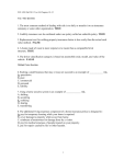 FCS 3450 Fall 2011 Test #4 Chapters 10-12 True / False Questions 1. The most common method of dealing with risk is to shift, or transfer it to an insurance company or some other organization. TRUE 2. Liability insurance can be combined under one policy called an umbrella policy. TRUE 3. Replacement cost for settling property insurance claims is less costly than the actual cash value method. FALSE 4. A home made of wood is more expensive to insure than a comparable brick structure. TRUE 5. The driver classification category is based on automobile style, model, and value of the vehicle. FALSE Multiple Choice Questions 6. Starting a small business that may or may not succeed is an example of ___________ risk. A. speculative B. pure C. commercial D. personal E. liability 7. Using a home security system is an example of ____________ risk. A. shifting B. accepting C. reducing D. sharing E. transferring 8. The additional living expenses component of a home insurance policy is designed to: A. pay for temporary housing while your home is repaired. B. cover damage to property while away from home. C. reimburse a homeowner for damage done by a visitor. D. pay for medical expenses of people injured on your property. E. pay for repairs caused by fire or other hazards. 1 FCS 3450 Fall 2011 Test #4 Chapters 10-12 9. The purpose of a household inventory is to: A. reduce insurance costs. B. document owned property. C. obtain personal property floater coverage. D. increase liability coverage. E. lower the chance of negligence. 10. Most home insurance policies provide coverage for: A. earthquake damage. B. flood damage. C. an umbrella liability. D. personal property floaters. E. medical payments. 11. (p. 327) Renter's insurance would include coverage for: A. flood damage. B. personal property. C. building and other structures. D. umbrella liability. E. earthquake damage. 12. (p. 327) Which one of the following is not covered by renter's insurance? A. medical expenses for injuries to visitors B. fire damage to the building's roof C. additional living expenses D. accidental damage to the property of others E. cost of legal action due to personal liability 13. (p. 331) Your home insurance provides for replacement value for personal property losses. A microwave is stolen. It cost $300 two years ago and has an expected life of six years. A comparable microwave costs $400 today. What amount will the insurance company pay? A. $100 B. $150 C. $200 D. $350 E. $400 2 FCS 3450 Fall 2011 Test #4 Chapters 10-12 14. (p. 330) Which one of the following insurance policy provisions requires the insured to pay for part of the loss if the property is not insured for the specified percentage of replacement value? A. personal property floater B. an endorsement C. coinsurance clause D. umbrella coverage E. assigned risk clause 15. (p. 330) The ____________ method to settle claims is based on the current replacement cost of a damaged or lost item less depreciation. A. replacement value B. actual cash value C. umbrella D. endorsement E. personal property floater 16. (p. 331) Your home insurance policy has a $250 deductible and no coinsurance. If a small fire causes $600 damage to your home, what amount of the claim would the insurance company pay? A. $250 B. $350 C. $450 D. $600 E. not able to determine from this information Payment = $600 - 250 = $350 17. (p. 332) The purpose of financial responsibility laws is to: A. reduce auto insurance costs. B. assist poor drivers in getting insurance coverage. C. protect the public from financial losses due to auto accidents. D. require uninsured motorists coverage. E. help drivers with a clean driving record. 18. (p. 334) The 100 in 100/300/50 refers to: A. property damage liability coverage. B. the amount of the deductible. C. collision coverage. D. the total coverage for an accident E. the limit for bodily injury claims that can be paid to one person. 3 FCS 3450 Fall 2011 Test #4 Chapters 10-12 19. (p. 335) Which of the following is a system in which drivers involved in an accident collect medical expenses, lost wages, and related injury costs from their own insurance company? A. assigned risk pool B. financial responsibility coverage C. comprehensive system D. no-fault insurance E. uninsured motorists protection 20. (p. 335) The 25 in 50/100/25 refers to ____________ coverage. A. collision B. bodily injury liability C. comprehensive physical damage D. medical payments E. property damage liability 21. (p. 335) Which one of the following types of coverage would pay for damage to your automobile in an accident for which you were at fault? A. property damage liability B. collision C. comprehensive physical damage D. no-fault insurance E. assigned risk pool coverage 22. (p. 336) Comprehensive coverage would cover financial losses due to: A. injuries caused by a driver without insurance. B. damage to your car in an accident for which you were at fault. C. damage to your car caused by wind or hail. D. legal action against you for an accident. E. damage to a neighbor's tree caused by your car. 23. (p. 335) Thad Joslin was judged at fault in an automobile accident. Three others were awarded damages of $150,000, $75,000, and $75,000. Thad has 100/300 bodily injury liability coverage. What amount, if any, would not be covered by his insurance? A. $150,000 B. $100,000 C. $50,000 D. $25,000 E. None. The total amount would be covered by insurance. Excess individual claim = $150,000 - 100,000 = $50,000. The other claims are less than $100,000 each and the total claim is less than $300,000. 4 FCS 3450 Fall 2011 Test #4 Chapters 10-12 24. (p. 337) Wind damage occurs to your car costing $800 to repair. If you have a $100 deductible for collision and full coverage (no coinsurance) for comprehensive, what portion of the claim will the insurance company pay? A. $100 B. $200 C. $500 D. $700 E. $800 25. (p. 317) Nick Rodr owns a home in Edmond, Oklahoma and pays $665 per year in insurance on the home. The $6