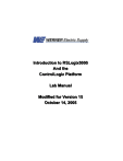 Introduction to RSLogix5000 And the ControlLogix Platform Lab Manual Modified for Version 15 October 14, 2005 Lab 1: Creating a New Controller File, Configuring Your I/O In this lab, we will introduce you to the Logix product family. In this lab, you will: create a new controller file write ladder logic using symbolic tag names configure your I/O modules alias the module tags to the tags you created in your ladder logic Follow the steps below to complete Lab 1. Place a checkmark in the square next to each step as you complete it. This will help you keep your place as you work through the lab exercises. Launching RSLogix5000 Programming Software In this section of the lab, you will launch the RSLogix5000 software, which will allow you to program the processor in your demo box. 1. Double click on the RSLogix5000 icon The RSLogix5000 screen appears. on the Desktop to launch RSLogix5000 software. Creating a New Controller File In this section of the lab, you will create a controller file. 1. From the File menu, choose New. The New Controller dialog appears. 2. From the Type pull-down menu, choose the 1756-L63, 1756-L61 or 1756-L1 ControlLogix55xx Controller that you will use for the rest of the Hands-On sessions. 3. From the Revision pull-down menu, choose the 15 for the L63 or L61, or 13 for the L1 - to match the revision of the Controller. 4. In the Name field, type 'CLX101_Lab' for the controller name. 5. From the Chassis Type pull-down menu, leave the 1756-A10 10-Slot ControlLogix Chassis selected (or select the 1756-A7, if applicable), to match the physical chassis in the ControlLogix demo unit used for this lab. 6. In the Slot Number field, choose the slot to match the position of the Logix5550 controller you are using for this lab. 7. In the Create In field, use 'C:\RSLogix5000\Projects' - you may click on the Browse button to navigate to that directory. 8. Click on OK. The Controller Organizer appears on the left side of the RSLogix5000 window, with a folder called Controller CLX101_Lab. You have now created your controller file. At this time, there are no I/O modules, or tag database, or any logic associated with the controller file. FYI The Controller Organizer is a graphical representation of the contents of your offline controller file. This display consists of a tree of folders and files that contain all of the information about the programs and data in the current controller file. The default main folders in this tree are: Controller File Name – contains Controller (global scope) tags; the optional Controller Fault Handler’s single Program and its Routines, and the optional Power-Up Handler’s single Program and its Routines. Tasks – possible types of Tasks include: a single Continuous, and 31 (or 32 if the Continuous task is redefined or removed) Periodic or Event. Each of the 32 possible tasks can have up to 100 Programs and/or Equipment Phase structures. Each program – can hold a possible 65,535 Routines (whether Ladder, Function Block, SFC or Structured Text) and each program has its own set of programscoped tags (if assigned). Motion Groups – Required when configuring and programming either Servo (0-10Vdc signal) or SERCOS (digital signal) motion modules and their associated Drives and Motors. Trends – trends, if created, are found in this folder. Data Types - shows User-Defined (application specific), String for use with ASCII devices, Predefined which are required by the programming logic structures, and Module-Defined added as I/O Modules are configured. I/O Configuration - contains I/O module configuration and connectivity information. In front of each folder, there is a box containing a + sign or a - sign. The + sign indicates that the folder is closed. Click on it to expand the tree display and display the files in the folder. The - sign indicates that the folder is already open and its contents are visible. Clicking on the right mouse button brings up many different context-sensitive popup menus. Often, you will find that this is a shortcut to access the property window or to menu options from the menu bar. Double clicking on files in the Controller Organizer display brings up functional dialogs, from which you can enter parameters to accomplish relevant tasks. Editing the Main Routine In this section of the lab, you will edit the ladder logic for the main routine in your MainProgram folder, and then add an input and an output instruction. 1. From the View menu, choose Toolbars. The Toolbars dialog appears. 2. Verify that the Standard, Online, Path Bar and Language Element toolbars are checked, and click on Close. 3. From the Controller Organizer, expand the Main Program folder and then double click on the Main Routine icon . An empty rung appears in the Ladder Editor. 4. From the Ladder Instructions toolbar (as shown below), click on the Bit tab. The Ladder Instruction toolbar refreshes to show you all of the available Bit instructions. 5. Click on the XIC (Examine On) icon to enter the instruction on the rung. The XIC instruction appears on the rung in the Ladder Editor, as shown below. 6. Right click on the Question Mark (?) in the blue highlighted area above the XIC instruction, and choose New Tag. The New Tag dialog appears. 7. In the Name field, type ‘Switch’. Verify that MainProgram program-scoped tag. appears in the Scope field. Switch is then created as a FYI There are two types of tag scopes: program-scoped and controller-scoped. Programscoped (local) tags are accessible only to the routines of a specific program. Controllerscoped (global) tags are accessible to the routines of all programs in a controller. 8. From the Tag Type selections, choose Base. 9. From the Data Type menu, choose BOOL. 10. Click on OK. Your rung should now look the rung below. Note that Tool Tips displays the tag information when you place you mouse pointer directly over the tag. 11. Click and hold the mouse button on the OTE (Output Energize) icon in the toolbar, a