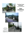 The East Coast Greenway a trail connecting cities TRAIL HANDBOOK v. 7.1 (April 2003) East Coast Greenway Alliance 135 Main St Wakefield, RI 02879 www.greenway.org ecga@greenway.org FOREWORD Congratulations! You are about to begin the designation process for a segment of the East Coast Greenway. This Trail Handbook will help you understand the process by explaining ECGA priorities and defining terms, roles, and responsibilities. The ECGA Trail Committee has developed criteria and a process for nominating appropriate trails and routes in your state to our Board of Trustees for designation as part of the East Coast Greenway. Simple forms to help gather and submit data supplement this process. All of the referenced forms can be found in the appendix. They are also available electronically on the ECGA web site at www.greenway.org. Every effort has been taken to make the designation process simple, flexible, and easy. Volunteers, local communities and trail groups are currently hard at work on all parts of the route from Key West, Florida to Calais, Maine. Thank you for taking part in this great project. Your dedication and work to establish the East Coast Greenway is your gift to America. David Dionne, President September, 2002 The Parable of the Blanket Creating a national policy for the East Coast Greenway is like knitting one sweater to fit hundreds of diverse individuals, each with unique tastes and fashion requirements. One sweater would not fit all. Happily our state committees share much in common. To avoid the mind boggling, impossible task of knitting one sweater to fit everybody, the Trail Committee wove a blanket. Blankets are nice: they provide warmth and can be folded into a number of interesting shapes. Generally, everybody will be warm and happy. Moral to the Parable: The flexible nature of our process should meet everyone’s needs. Dave Dionne 1 INTRODUCTION This handbook provides: Definitions of terms used by the Alliance. An outline of the trail designation process Samples of all necessary forms and documents. Additional information on the East Coast Greenway and the process can be found in the Appendix: An overview of the East Coast Greenway. The roles and relationships within the Alliance (nationally and locally) that you will encounter while working on the project. ECGA Board of Trustees implementation strategy and priorities for designating trail. A description of the process of identifying the state route. The Trail Handbook is posted on the ECGA website, www.greenway.org (in the “Alliance Documents” section). Check the web to ensure that you have the latest version. If you have additional questions about the designation process, please contact the Alliance staff at ecga@greenway.org or 401-789-4625. Information on trail and route standards can be found in a number of locations: AASHTO (American Association of State Highway and Transportation Officials): www.transportation.org MUTCD (Manual on Uniform Traffic Control Devices): www.mutcd.fhwa.dot.gov Federal Highway Administration: www.fhwa.dot.gov/pubstats.html. Several relevant publications can be found there in particular Improving Conditions for Bicycling and Walking: A Best Practices Report and “Designing Sidewalks and Trails for Access”. 2 TABLE OF CONTENTS Foreword . . . . . . . . p. 1 Introduction . . . . . . . . 2 Table of Contents . . . . . . . 3 Definitions . . . . . . . 4 . . . . . . 6 ECG Trail Designation Application . . . . . 8 ECG Trail Inspection Report . . . . . 13 Appendices I. The East Coast Greenway – An Overview . . . 1 II. Implementing the East Coast Greenway . . . 2 . . . 3 IV. Tracking Progress: Establishment of the ECG Trail System . 4 . Trail Designation Process III. Trail Designation Roles . . . V. Sample Request for a Letter of Endorsement . VI. Post Designation Materials . . . 3 . . 5 . . 10 DEFINITIONS ECG Corridor: The general route of the ECG adopted by the Alliance’s Board of Trustees to link the 23 major cities of the eastern seaboard of the United States. A swath twenty miles wide along this route is the area within which the Greenway should be located, ideally as close to the centerline as possible. ECG Spine Route: The specific route that falls within the ECG Corridor. Where close parallel trails are feasible (e.g., along both sides of a river or alternate routes through a city), a multi-trail spine route may be identified. Alternate Routes: Additional off-road connections between points along the spine route that link important destinations, including cities, scenic, historic or cultural regions, or significant attractions. Alternate routes may provide a near-term link when the permanent trail appears to be a long-term reality. Alternate routes may also address areas where the spine trail cannot accommodate all the desired users. Spur Trails: Trails that take a user off the Greenway to link them to important destinations. Spur trails are not designated as part of the East Coast Greenway. Classes of Trail: The Alliance recognizes four categories of trails or facilities. Criteria for each class represent the minimum standards that must be met. Class A (Permanent Designation) Off road. Publicly accessible year-round for multi-modal, non-motorized travel. Touring bike accessible with a relatively smooth, firm surface. Safe, with well-marked at-grade street and railroad crossings. Managed and adequately maintained by an established authority. Officially endorsed for inclusion in ECG by local managing authority. Class B (Provisional Designation) Off road. Publicly accessible year-round for multi-modal, non-motorized travel. Scheduled to have the specific limitations upgraded and qualify as Class A trail within five years. Safe, with well-marked at-grade street and railroad crossings. Officially endorsed for inclusion in ECG by local managing authority. Class C (Interim Designation) A road with a bike lane or shoulder and with a parallel walking facility (path or sidewalk). A 