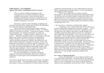 JOHN DEWEY: ANTI-MODERN: Against Abstraction, Absolutizing, and Pure Presence What is needed is intelligent examination of the consequences that are actually effected by inherited institutions and customs, in order that there may be intelligent consideration of the ways in which they are to be intentionally modified in behalf of [the] generation of different consequences. [CG,273] John Dewey spent his career attempting to challenge and reconstruct inherited values in philosophy which he felt had limited the scope and possibility of philosophy itself. Dewey characterizes traditional philosophy as having a nearly neurotic desire for absolute apodictic certainty. He calls this tendency "the Quest for Certainty", "escape from existence", "escape from uncertainty", the valuation of knowing over doing, the "intellectualist fallacy", "bondage of habit", "subjectivism", and egoism. Philosophy denigrates whole lived-experience by ignoring hopes, fears, desires, aversions, historicity, and situatedness. Religion denigrates whole lived-experience by despising the material, ignoring consequences of beliefs, and setting up far-off ideals without connection to actualities of existence. Dewey calls philosophy (and religion) to broaden its notion of experience, so as to connect its ideals to experience (CR, 300). He critically examines the valued ends underlying traditional philosophical inquiry, and finds them quite inadequate. Dewey is against the values which traditional philosophy has typically adopted unconsciously, particularly modern philosophy of Descartes to Kant. We can see through Dewey's criticism of particular traditional values/ends for philosophy that Dewey's critique of modernism is at points quite close to postmodern criticisms of modernity. which Dewey brings against the tradition of philosophy throughout most of his writings. By showing that Dewey is quite explicitly anti-modern, we here lay groundwork for further projects involving comparisons and partnerships (as well as differentiations) between Dewey and particular postmodern thinkers, as well as postmodern and pragmatist motifs in general. What is ironic about Dewey's critique of modern philosophers is that he thinks the problem with modern philosophers was that they were not modern enough. Modernity for Dewey was characterized best as "the movement away from fixities that were taken to be the necessary conditions of stability and order towards the release of processes of change tending to the unforeseen and the unpredictable" (ReI, 334). I. The Later Essay, "Experience and Philosophic method" "Experience is not a veil that shuts man off from nature; it is a means of penetrating continually into the heart of nature." This is Dewey's introductory comment in the preface regarding his essay. He begins his essay telling us that nature is usually thought of as something eternal and supra-empirical, perceive by "experience" only sporadically and as through a "veil or screen which shuts us off from nature." Dewey thinks natural experience has been given a degraded position, and that cognitive reflection had inordinately and unnaturally taken the prior place of common experience for philosophers, and this is exactly why philosophy has become so aloof and lost esteem in the eyes of most people. He traces this back to Descartes here, saying that "The Cartesian school relegated experience to a secondary and almost accidental place". Fortunately, science followed Newton and became empirical, according to Dewey, while Philosophy continued on in the tradition of Descartes. While science refers constantly to experience, philosophy tends to think truth will come through refined inner-reflection and abstractions. For a Start: Common Experience Dewey calls philosophy to a more empirical method, what he at times labels as denotative. It is better than the non-empirical method for at least three reasons. First, in the non-empirical method there is no way to empirically verify claims, while the empirical method can be experientially referenced and verified.. Second, the non-empirical method gives us only a shallow meaning and understanding of concepts given in abstract two-dimensional form which tends to make things more opaque than to clarify anything. The empirical method, in contrast, refers to the full richness and multi-faceted diversity of lived experience. Third, non-empirical philosophy loses contact with "the things of ordinary experience" and so becomes arbitrary, aloof, and "abstract" (EPM2, 6). Dewey asks us "are philosophic concepts left to dwell in separation in some technical realm of their own?" Empirical philosophy, in contrast, keeps us tied to the concrete. According to Dewey, a fundamental problem of the philosophers from Descartes to Hume to Kant is the subject/object distinction. Dewey recommends instead a "doublebarreled" notion of experience, where the subject/object distinction is taken figuratively, not literally and the empirical method then "takes this integrated unity as the starting point for philosophic thought" (EPM2, 9). We might talk about a subject and object, but they can't be disentangled in actual reality. I am simply had or appeared to by the object without a doubt. Questions and distinctions--dissections-of this experience come after the actual experienced fact through reflective analysis. This Dewey's answer to the sceptic, for whom the question of how the subject can know the object is primary: 'yours is a contrived unnatural and non-empirical problem derived not from experience, but from an obsessive and vicious abstractionism.' Dewey takes a Reidian position, namely, that things are just given in experience. A. The Conditions of Our Knowing But Dewey does not accept the given naively. The empirical method has as its question, how and why do we come to think as we do? It asks, why do we make this subject/object distinction? How does the subject affect conceptions of the object, how do its contexts affect thi