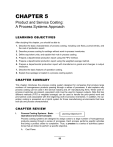 CHAPTER 5 Product and Service Costing: A Process Systems Approach LEARNING OBJECTIVES After studying this chapter, you should be able to: 1. Describe the basic characteristics of process costing, including cost flows, journal entries, and the cost of production report. 2. Describe process costing for settings without work-in-process inventories. 3. Define equivalent units, and explain their role in process costing. 4. Prepare a departmental production report using the FIFO method. 5. Prepare a departmental production report using the weighted average method. 6. Prepare a departmental production report with transferred-in goods and changes in output measures. 7. Describe the basic features of operation costing. 8. Explain how spoilage is treated in a process costing system. CHAPTER SUMMARY This chapter introduces the process costing system designed for companies that produce large numbers of homogeneous products passing through a series of processes. It also explains why process costing can be used in the service industry and JIT manufacturing firms. When work-inprocess inventories are present, equivalent units must be used to measure outputs. Note that two different methods (FIFO or weighted average) can be used to handle the prior-period work and prior-period costs associated with the beginning work-in-process inventories. In addition, the operation costing is presented as a hybrid system for those manufacturing environments that have both job and process characteristics. CHAPTER REVIEW I. Process Costing Systems: Basic Learning Objective #1 Operational and Cost Concepts Process costing systems are designed to assign costs to a large number of homogeneous products passing through a series of processes. Each process performs specific activities that bring a product closer to completion. Thus, a process is a series of activities (operations) that are linked to perform a specific objective. A. Cost Flows 95 96 Chapter 5 1. The cost flows in a process cost system are tracked and accumulated by process. Each process, thus, will have a separate WIP account to track manufacturing costs. 2. When goods are completed in one process, they are transferred with their costs to the subsequent process. 3. Costs transferred from a prior process to a subsequent process are referred to as transferred-in costs. The costs of goods being transferred into a process can be considered a type of “raw material” cost that is added at the beginning of the process. Review textbook Exhibit 5-2, which illustrates the different cost accumulation approaches between job-order costing and process costing systems. Review textbook Exhibit 5-3, which compares the job-order costing and process costing by focusing on the cost flows through different work-in-process accounts. B. The Production Report 1. In process costing, the production report summarizes the manufacturing activity within a process for a given period of time. The report also serves as a source document for transferring costs from the WIP account of a prior process to the WIP account of a subsequent process. 2. A production report traces the flow of units through the process, identifies the costs charged to the process, shows the computation of unit costs, and shows the disposition of the costs of the process for the period. C. Unit Costs 1. The calculation of unit costs in a process system involves: Computing the manufacturing costs for a process department for a given time period. Computing the output in units of the process department for that same time period. Calculating the unit cost by dividing the costs of the period by the units produced during the period. That is, each unit in each process receives a similar share of manufacturing costs. 2. Unit costs are needed to: Compute the cost of goods transferred out of the process. Determine the value of the ending inventory. 3. Special care is required when calculating unit costs in the following situations: If there is beginning work-in-process inventory, the FIFO or weighted average method is used to handle the beginning WIP inventory because these units have prior-period work and costs. If there are manufacturing costs added at different times during the process, separate categories of equivalent units and unit cost calculation are required to handle nonuniform application of production costs. 97 Product and Service Costing: A Process Systems Approach Review textbook Exhibit 5-4, which summarizes the features of a process costing system. II. Process Costing with No Work-in-Process Inventories Learning Objective #2 If there are no inventories (which many services do not have), the average cost per unit can be computed simply using the process costing principle. That is, Unit cost = Costs of the period Output of the period Process costing can be applied in many firms that do not have work -in-process inventory. Two such settings are service organizations and JIT manufacturing firms. A. Service Organizations Service organizations that provide any service that is homogeneous and repeatedly produced can take advantage of a process costing approach. Example: Airline companies provide air travel that involves a sequence of services including reservation, ticketing, baggage checking and seat confirmation, flight, and baggage delivery and pickup. B. JIT Manufacturing Firms JIT manufacturing firms that produce relatively homogeneous goods using stable processes often use process costing. 1. Successful implementation of JIT policies tends to reduce work-in-process inventories to minimal levels. 2. JIT firms also use work cells to produce products. The cell manufacturing structure allows the use of process costing to: Collect costs by cell for a period of time. Measure output of the cell for the same period. Calculate unit cost by dividing the costs of the period by the output of the period. III. Process Costing with Ending Work-in-Process Inventories A. Learning Objective #3 Introduction The output of a department