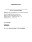 Supporting Information Engineering of Hollow Mesoporous Silica Nanoparticles for Remarkably Enhanced Tumor Active Targeting Efficacy Feng Chen,1,6 Hao Hong,1,6 Sixiang Shi,2 Shreya Goel,2 Hector F. Valdovinos,3 Reinier Hernandez,3 Charles P. Theuer,4 Todd E. Barnhart,3 Weibo Cai*1,2,3,5 1 Department of Radiology, University of Wisconsin - Madison, WI, USA 2 Materials Science Program, University of Wisconsin - Madison, WI, USA 3 Department of Medical Physics, University of Wisconsin - Madison, WI, USA 4 TRACON Pharmaceuticals, Inc., San Diego, CA, USA 5 University of Wisconsin Carbone Cancer Center, Madison, WI, USA 6 Feng Chen and Hao Hong contributed equally to this work Corresponding Author wcai@uwhealth.org Present Addresses Departments of Radiology and Medical Physics, University of Wisconsin - Madison, Room 7137, 1111 Highland Avenue, Madison, WI 53705-2275, United States. S1 Supplementary Figures and Tables a 50 nm b ~50 nm 50 nm ~65 nm Figure S1. Synthesis of ~65 nm sized HMSN. (a) TEM image of ~50 nm sized dSiO2. (b) TEM image of ~65 nm sized HMSN. S2 @50 ℃ for 14 h @50 ℃ for 30 min @50 ℃ for 60 min [free CTAC]= 6.25 mg/mL. [free CTAC]= 66.7 mg/mL [free CTAC]= 66.7 mg/mL a @80 ℃ for 60 min [free CTAC]= 66.7 mg/mL. b @80 ℃ for 30 min [free CTAC]= 66.7 mg/mL d c @80 ℃ for 10 min [free CTAC]= 66.7 mg/mL e f Figure S2. Optimization of the etching process. TEM image of HMSN synthesized at conditions of (a) 50 ºC etching for 14 h with CTAC concentration of 6.25 mg/mL. (b) 50 ºC etching for 30 min with CTAC concentration of 66.7 mg/mL. (c) 50 ºC etching for 60 min with CTAC concentration of 66.7 mg/mL. (d) 80 ºC etching for 60 min with CTAC concentration of 66.7 mg/mL. (e) 80 ºC etching for 30 min with CTAC concentration of 66.7 mg/mL. (f) 80 ºC etching for 10 min with CTAC concentration of 66.7 mg/mL. The concentration of Na2CO3 was 21.2 mg/mL in all cases. S3 Percentage (%) 16 12 8 4 0 0.1 1 10 100 1000 Diameter (nm) Figure S3. Size distribution study. DLS size distribution of HMSN-ZW800-TRC105 before 64Cu labeling. The Z-average size was measured to be 194.4 nm, and zeta potential was -5.1 ± 0.9 mV. S4 Table S1. Dye-dye quenching effect of ZW800 after conjugation to HMSN. HMSN:ZW800 HMSN ratio (nmol) ZW800 used ZW800 in the supernatant [a] ZW800 in HMSN [b] Equal amount of ZW800 [c] Conjugation efficacy [d] [e] Number of ZW800 per HMSN Degree of quenching (nmol) (nmol) [a] 1:2 0.5 1.0 0.18 0.82 0.78 81.4 % 1.6 4.8 % 1:10 0.5 5.0 0.89 4.11 1.07 82.2 % 8.2 74 % 1:20 0.5 10.0 3.13 6.87 0.57 68.7 % 13.7 92 % ZW800 in HMSN = ZW800 used – ZW800 in the supernatant. [b] Equal amount of ZW800 was calculated by using a linear fitting equation of free ZW800 dyes. [c] Conjugation efficiency = ZW800 in HMSN/ZW800 used. [d] Number of dyes per HMSN = ZW800 in HMSN/HMSN. [e] Degree of quenching = 1-(Equal amount of ZW800/ZW800 in HMSN). S5 PET NIRF Radioactivity (MBq) 60 High High Low Low 40 20 10 8 6 4 2 0 Elution volume (mL) Figure S4. Purification of 64Cu-HMSN-ZW800-TRC105. chromatography elution profile for the purification of unreacted 64Cu A size-exclusion column 64Cu-HMSN-ZW800-TRC105. The elutes after 6 mL. Inset left: PET imaging of fraction 3.0-3.5 mL; Inset right: NIRF imaging of the same fraction (Ex=745 nm, Em=800 nm). S6 100 % Intact 64Cu 80 60 40 20 0 0.25 0.5 1 4 20 24 Post-treatment time (h) Figure S5. Serum stability study of 64Cu-HMSN-ZW800-TRC105. Sample was incubated in complete mouse serum at 37 ºC for 24 h under constant shaking (550 rpm). S7 PET/CT a b 10 %ID/g c 0 %ID/g Coronal Sagittal d Axial Figure S6. In vivo PET/CT images. Representative (a) PET/CT and (b) coronal, (c) sagittal and (d) axial PET images of the same mouse from targeted group at 4 h p.i. Tumors were marked with yellow arrows. S8 Table S2. Quantitative PET data of 64 Cu-HMSN-ZW800-TRC105 (targeted group) based on ROI analysis. Targeted group 0.5 h 4h 16 h 24 h (n = 4) (%ID/g) (%ID/g) (%ID/g) (%ID/g) Liver 27.8 ± 1.6 23.8 ± 1.2 14.9 ± 1.5 15.4 ± 1.1 Tumor 8.5 ± 1.1 9.9 ± 0.9 6.5 ± 0.3 6.0 ± 0.6 Blood 4.9 ± 0.3 4.3 ± 0.5 3.8 ± 0.5 3.8 ± 0.5 Muscle 0.9 ± 0.1 0.7 ± 0.2 0.7 ± 0.2 0.8 ± 0.2 Table S3. Quantitative PET data of 64 Cu-HMSN-ZW800 (non-targeted group) based on ROI analysis. Non-targeted group 0.5 h 4h 16 h 24 h (n = 4) (%ID/g) (%ID/g) (%ID/g) (%ID/g) Liver 18.7 ± 1.2 14.5 ± 0.3 10.7 ± 1.0 11.1 ± 0.5 Tumor 2.9 ± 0.3 3.2 ± 0.2 3.0 ± 0.9 2.9 ± 0.7 Blood 2.3 ± 0.1 2.4 ± 0.3 2.7 ± 0.4 2.8 ± 0.2 Muscle 0.4 ± 0.1 0.4 ± 0.1 0.5 ± 0.2 0.6 ± 0.2 Table S4. Quantitative PET data of 64 Cu-HMSN-ZW800-TRC105 with a blocking dose of TRC105 (1 mg/mouse, blocking group) based on ROI analysis. Blocking group 0.5 h 4h 16 h 24 h (n = 3) (%ID/g) (%ID/g) (%ID/g) (%ID/g) Liver 28.5 ± 2.9 21.2 ± 4.5 15.5 ± 2.5 16.2 ± 1.7 Tumor 4.1 ± 1.7 5.5 ± 2.2 5.5 ± 1.0 5.2 ± 1.0 Blood 5.7 ± 3.1 4.0 ± 1.0 3.9 ± 0.7 4.0 ± 0.6 Muscle 0.7 ± 0.2 0.6 ± 0.1 0.7 ± 0.3 0.7 ± 0.3 S9 Table S5. Summary of tumor-to-organ ratios in the targeted group. Targeted group 0.5 h 4h 16 h 24 h T/M 9.0 ± 1.7 13.7 ± 0.6 9.3 ± 2.8 7.6 ± 2.2 T/B 1.8 ± 0.2 2.3 ± 0.3 1.7 ± 0.2 1.6 ± 0.3 T/L 0.3 ± 0.1 0.4 ± 0.1 0.4 ± 0.0 0.4 ± 0.0 (n = 4) Table S6. Summary of tumor-to-organ ratios in the non-targeted group. Non-targeted group 0.5 h 4h 16 h 24 h T/M 7.0 ± 2.0 8.5 ± 1.7 6.7 ± 1.7 5.6 ± 2.3 T/B 1.2 ± 0.2 1.3 ± 0.2 1.1 ± 0.4 1.0 ± 0.2 T/L 0.2 ± 0.0 0.2 ± 0.1 0.3 ± 0.1 0.3 ± 0.1 (n = 4) Table S7. Summary of tumor-to-organ ratios in the blocking group. Blocking group 0.5 h 4h 16 h 24 h T/M 5.5 ± 0.5 8.1 ± 2.6 7.9 ± 2.0 7.7 ± 2.1 T/B 0.8 ± 0.2 1.3 ± 0.3 1.4 ± 0.2 1.3 ± 0.1 T/L 0.1 ± 0.0 0.3 ± 0.1 0.4 ± 0.0 0.3 ± 0.0 (n = 3) S10 Targeted Non-targeted b h 24 0. h h 5 h 24 16 h h 4 h 0. 5 h 24 h 16 h 4 0. 5 Post-injection time 5 0 0 h 0 5 10 16 5 10 T/M T/B T/L 15 h Tumor-to-organ Ratio Tumor-to-organ Ratio 10 T/M T/B T/L 15 4 T/M T/B T/L 15 c Tumor-to-organ Ratio a Blocking