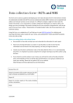 Data collection form– RCTs and NRS This form can be used as a guide for developing your own data extraction form for interventions reviews of randomised controlled trials (RCTs) and non-randomised studies (NRS). Sections can be expanded and added, and irrelevant sections can be removed. It is difficult to design a single form that meets the needs of all reviews, so it is important to consider carefully the information you need to collect, and design your form accordingly. Information included on this form should be comprehensive, and may be used in the text of your review, ‘Characteristics of included studies’ table, risk of bias assessment, and statistical analysis. Using this form, or an adaptation of it, will help you to meet MECIR standards for collecting and reporting information about studies for your review, and analysing their results (see MECIR standards C43 to C55; R41 to R45). Notes on using data extraction form: Be consistent in the order and style you use to describe the information for each report. Record any missing information as unclear or not described, to make it clear that the information was not found in the study report(s), not that you forgot to extract it. Include any instructions and decision rules on the data collection form, or in an accompanying document. It is important to practice using the form and give training to any other authors using the form. If you intend to use GIV analysis in your review, you will need to send us the data extraction forms and full details of how you did the data transformations so our group’s statistician can check your working. Please see our guide to GIV on our website (http://airways.cochrane.org/resources-and-information) Review title or ID Study ID (surname of first author and year first full report of study was published e.g. Smith 2001) Report ID Report ID of other reports of this study including errata or retractions Notes 533563849 General Information Date form completed (dd/mm/yyyy) Name/ID of person extracting data Reference citation Study author contact details Publication type (e.g. full report, abstract, letter) Notes: Study eligibility Study Characteristics Type of study Eligibility criteria Eligibility criteria met? (Insert inclusion criteria for each characteristic as defined in the Protocol) Yes No Unclear Location in text or source (pg & ¶/fig/table/other) Randomised Controlled Trial Quasi-randomised Controlled Trial Controlled Before and After Study Contemporaneous data collection Comparable control sites At least 2 x intervention and 2 x control clusters Interrupted Time Series At least 3 time points before and 3 after the intervention Clearly defined intervention point Other design (specify): Participants Types of intervention Types of 2 comparison Types of outcome measures INCLUDE EXCLUDE Reason for exclusion Notes: DO NOT PROCEED IF STUDY EXCLUDED FROM REVIEW 3 Characteristics of included studies Methods Descriptions as stated in report/paper Location in text or source (pg & ¶/fig/table/other) Aim of study (e.g. efficacy, equivalence, pragmatic) Design (e.g. parallel, crossover, non-RCT) Unit of allocation (by individuals, cluster/ groups or body parts) Start date End date Duration of participation (from recruitment to last follow-up) Ethical approval needed/ obtained for study Yes No Unclear Notes: 4 Participants Description Include comparative information for each intervention or comparison group if available Location in text or source (pg & ¶/fig/table/other) Population description (from which study participants are drawn) Setting (including location and social context) Inclusion criteria Exclusion criteria Method of recruitment of participants (e.g. phone, mail, clinic patients) Informed consent obtained Yes No Unclear Total no. randomised (or total pop. at start of study for NRCTs) Clusters (if applicable, no., type, no. people per cluster) Baseline imbalances Withdrawals and exclusions (if not provided below by outcome) Age Sex Race/Ethnicity Severity of illness Co-morbidities Other relevant sociodemographics 5 Subgroups measure Subgroups reported Notes: 6 Intervention groups Copy and paste table for each intervention and comparison group Intervention Group 1 Description as stated in report/paper Location in text or source (pg & ¶/fig/table/other) Group name No. randomised to group (specify whether no. people or clusters) Theoretical basis (include key references) Description (include sufficient detail for replication, e.g. content, dose, components) Duration of treatment period Timing (e.g. frequency, duration of each episode) Delivery (e.g. mechanism, medium, intensity, fidelity) Providers (e.g. no., profession, training, ethnicity etc. if relevant) Co-interventions Economic information (i.e. intervention cost, changes in other costs as result of intervention) Resource requirements (e.g. staff numbers, cold chain, equipment) Integrity of delivery Compliance 7 Notes: Outcomes Copy and paste table for each outcome. Outcome 1 Description as stated in report/paper Location in text or source (pg & ¶/fig/table/other) Outcome name Time points measured (specify whether from start or end of intervention) Time points reported Outcome definition (with diagnostic criteria if relevant) Person measuring/ reporting Unit of measurement (if relevant) Scales: upper and lower limits (indicate whether high or low score is good) Is outcome/tool validated? Yes No Unclear Imputation of missing data (e.g. assumptions made for ITT analysis) Assumed risk estimate (e.g. baseline or population risk noted in Background) 8 Power (e.g. power & sample size calculation, level of power achieved) Notes: Other Study funding sources (including role of funders) Possible conflicts of interest (for study authors) Notes: 9 Risk of Bias assessment (See Chapter 8 of the Cochrane Handbook. Additional domains may be added for non-randomised studies.) Domain Risk of bias Support for judgement Location in text or source (pg & (includ