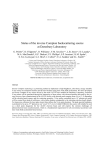 Elsevier Science Journal logo Status of the inverse Compton backscattering source at Daresbury Laboratory G. Priebea*, D. Filippettob, O. Williamsc, Y.M. Savelieva,e, L.B. Jonesa,e, D. Laundya, M.A. MacDonalda, G.P. Diakuna, P.J. Phillipsg, S.P. Jamisone, K.M. Spohrd, S. Ter-Avetisyanf, G.J. Hirsth, J. Collierh,i, E.A. Seddonj and S.L. Smitha,e a Science and Technology Facilities Council, Daresbury Laboratory, Cheshire, UK Instituto Nazionale di Fisica Nucleare, Laboratori Nazionali di Frascati, Rome, Italy c University of California at Los Angeles, Department of Physics and Astronomy, California, USA d School of Engineering and Science, University of the West of Scotland, Paisley, UK e Accelerator Science and Technology Centre, Daresbury Laboratory, Cheshire, UK f School of Mathematics and Physics, Queen’s University Belfast, Belfast, UK g Electronic and Physics Department,Dundee University, Nethergate, UK h STFC Rutherford Appleton Laboratory, Chilton, Didcot, UK i University of Wales Swansea, Singleton Park, Swansea, UK j The University of Manchester, Manchester, United Kingdom b Elsevier use only: Received date here; revised date here; accepted date here Abstract Inverse Compton scattering is a promising method to implement a high-brightness, ultra-short, energy tuneable X-ray source at accelerator facilities and at laser facilities using laser wake field acceleration. We have developed an inverse Compton X-ray source driven by the multi 10 TW laser installed at Daresbury Laboratory. Polarised X-ray pulses will be generated through the interaction of laser pulses with electron bunches delivered by the energy recovery linac commissioned at the ALICE facility with spectral peaks ranging from 0.4 to 12 Å, depending on the electron bunch energy and the scattering geometry. X-ray pulses containing up to 107 photons per pulse will be created from head-on collisions, with a pulse duration comparable to the incoming electron bunch length. For transverse collisions the laser pulse transit time defines the X-ray pulse duration. The peak spectral brightness is predicted to be up to 1021 photons/(s mm2 mrad2 0.1% Δλ/λ). Called COBALD, this source will initially be used as a short pulse diagnostic for the ALICE electron beam and will explore the extreme challenges of photon/electron beam synchronization, which is a fundamental requirement for all conventional accelerator and laser wake field acceleration based sources. Keywords: Energy recovering linac; ERL; ERLP; Accelerators and Lasers In Combined Experiments; ALICE; Free Electron Laser; FEL; Compton Back Scattering;CBS; Inverse Compton Scattering;ICS; Laser Compton Scattering; LCS; Compton Synchrotron Radiation; CSR; Laser Synchrotron Radiation; Thomson Scattering;TS; X-ray pulses; X-ray source; all optical Free Electron Laser, All Optical FEL; AOFEL. * Address of correspondence and reprint requests to: Gerd Priebe, Science and Technology Facilities Council, Daresbury Laboratory, Daresbury, Warrington, Cheshire, WA4 4AD, UK. E-mail: gerd.priebe@stfc.ac.uk 2 Elsevier Science 1. Introduction Synchronized high-brightness electron beams and high-intensity lasers have become significantly improved during the last decade, opening new possibilities for the generation of X-rays. At several international laboratories Compton sources are being proposed, designed, commissioned and operated for high flux generation of polarized X-rays with unprecedented characteristics of brilliance, tune ability, high mono-chromaticity, with pulse durations in the ps down to fs range and fluxes of 1011 photons per sec, within a narrow spectral bandwidth [1-7]. The physics and applications of a high-brightness electron beam in combination with a high-intensity laser is capable of producing harder photons than other sources like FELs or synchrotron light sources. Recent successes in laser-based particle acceleration have demonstrated energies up to multi 10 GeV, with electrons accelerated directly by the field of the laser pulse. They potentially could be injected into conventional accelerators or combined with a magneto static undulator to drive FELs with radiation wavelength down in the Angstrom range. Furthermore, all optical free electron lacers have been proposed recently, where an electromagnetic undulator will be used [1]. By combining a laseraccelerated electron beam with an electromagnetic undulator, the ultimate short pulse, high brilliance X-ray source could be created. In this paper, we describe the source of ultra-short X-ray pulses based on inverse Compton backscattering of 100 fs laser pulses with 35 MeV electron bunches delivered by the energy recovery linac built at the ALICE facility (Fig. 1; Tab. 1). The X-ray source, Tab. 1. The main parameters the inverse Compton of the energy recovery linac back scattering X-ray machine at the ALICE facility. gun energy 350 keV source driven by the max energy 35 MeV table top multi 10 TW charge / bunch 80 pC 3 (T ) laser installed at bunch rep. rate 81.25 MHz Daresbury Laboratory post chicane 350 fs (COBALD) [8] will bunch length initially be used as a focused σx ≈ 35 μm short pulse diagnostic beam size σy ≈ 20 μm of the electron bunches. energy spread 0.2 % normalized It will explore the 5 mm mrad emittance extreme challenges of photon / electron beam synchronization, which is a fundamental requirement for all conventional- and laser wake-field based next generation sources. CBS interaction point Figure 1: Layout of the energy recovery linac machine (ERL) at the “accelerators and lasers in combined experiments” facility (ALICE) built at Daresbury Laboratory. 2. Energy Recovery Linac The use of linacs yields electron beams with extraordinary brilliance, small source size, ultra-short pulse length and concomitant transverse coherence. Several laboratories have proposed high power ERLs for the production of high-brightness radiation. Accelerators optimised for various parameter sets and applications ar