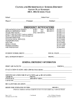 CLEVELAND METROPOLITAN SCHOOL DISTRICT SAFETY PLAN SUMMARY 2013– 2014 SCHOOL YEAR School: ________________________________________School Year:____________ Phone #:____________________Principal:_____________________ Hotline#______________________ EMERGENCY NOTIFICATIONS FIRE/HAZARDOUS MATERIALS: (9) 911 and MEDICAL EMERGENCY (EMS): (9) 911 and CLEVELAND POLICE: (CALL SECURITY) SAFETY AND SECURITY (serious matters): SAFETY AND SECURITY (non-emergency): CHILDREN SERVICES PSYCHOLOGICAL SERVICES: TRANSPORTATION: SICK CAB: MOBILE CRISIS: POISION CONTROL FIRE PREVENTION SECURITY: SECURITY: (9) 838-7777 (9) 838-7777 (9) 838-7777 (9) 838-7777 (9) 838-0420 (9) 696-KIDS (9) 574-8498 (9) 634-7040 (9) 574-8493 (9) 838-CARE (9) 231-4455 (9) 664-6664 STUDENT ENROLLMENT ___________ TOTAL STAFF_______________ REG. SUPERINTENDENT:______________________________ PHONE:_____________________ GENERAL EMERGENCY INFORMATION FIRST AID FACILITY: ____________________________________________ ROOM #___________ EVACUATION STAGING AREA (500 feet from school): _____________________________________ _______________________________________________________________________________________ OFFSITE LOCATION FOR EVACUATION and /or BUS STAGING: ADDRESS______________________ PHONE________________________________________ ENTRANCE_____________________HOLDING AREA_______________________________ CAPACITY______________________ BUS LAYOVER LOCATION: ____________________________________________________________ ROOM FOR COMMAND CENTER: ____________________________ ROOM #_________ (Must have telephone and large enough for at least 12 or more people (e.g., Conference Room) Page 1 of 19 Developed June 20, 2006 Confidential Div. Of Safety & Security Revised September 16, 2013 GENERAL EMERGENCY INFORMATION LOCATION OF STORED HAZARDOUS MATERIALS:_________________________________ LISTING OF HAZARDOUS MATERIALS: ______________________________________________ ______________________________________________________________________________________ School: ______________________________________________________________ LOCATION OF MATERIAL SAFETY DATA SHEETS: _____________________________________ LOCATION OF HAZARDOUS EQUIPMENT (i.e. snow blowers, lawn mowers, etc).______________ _______________________________________________________________________________________ LOCATION OF MAIN ELECTRICAL CUTOFF: __________________________________________ ELECTRIC COMPANY: _____________________________________ PHONE: __________________ LOCATION OF MAIN GAS CUTOFF: ____________________________________________________ SAFE AREA/ROOM IN SCHOOL FOR STUDENTS: 1) GENERAL: ___________________________ 2) WEATHER: ____________________3) NON-EVAC EMERGENCY: _________________________ ROOM FOR DISRUPTIVE STUDENTS/IN SCHOOL SUSPENSION: ____________________ CLASSROOM NUMBERS FOR SPECIAL NEEDS STUDENTS:_________________________ _________________________________________________________________________________ NUMBER OF FLOORS IN BUILDING ___________________ TOTAL NUMBER OF DOORS/POINTS OF ENTRY_______________ *PLEASE NOTE: IT IS NOW A REQUIREMENT THAT ALL DOORS BE IDENTIFIED WITH LETTERS INSIDE & OUT ASAP ENTRY POINT LOCATION ENTRY ID (A,B,C ETC...) 1. 2. 3 4 5 6 7 8 9 10 Page 2 of 19 Developed June 20, 2006 ENTRY POINT LOCATION ENTRY ID (A,B,C ETC…) 11 12 13 14 15 16 17 18 19 20 Confidential Div. Of Safety & Security Revised September 16, 2013 GENERAL EMERGENCY INFORMATION LIST ANY IMPORTANT ADDITIONAL BUILDING FEATURES (I.E SUB BASEMENTS, ACCESSIBLE ROOFS, UNDER GROUND TRACKS): _______________________________________ CLEVELAND POLICE DISTRICT: __________ PHONE: ___________________________ COMMANDER: ____________________________________________________ NEAREST HOSPITAL: ___________________________ ADDRESS_____________________________ EMERGENCY ROOM PHONE NUMBER: _________________________________________________ FIRE EMERGENCY INFORMATION FIRE EXTINGUISHER LOCATIONS & DATE INSPECTED: FLOOR/ NEAREST ROOM DATE INSPECTED 1. 2. 3. 4. 5. 6. FLOOR/ NEAREST ROOM DATE INSPECTED 7. 8. 9. 10.. 11. 12. NUMBER OF PULL STATIONS: ____________ LOCATION OF PULL STATIONS: FLOOR LOCATION NEAREST ROOM # FLOOR LOCATION 1. 8. 2. 9. 3. 10. 4. 11. 5. 12. 6. 13. 7. 14. Page 3 of 19 Developed June 20, 2006 Confidential NEAREST ROOM # Div. Of Safety & Security Revised September 16, 2013 LOCATION OF AED(S) (DEFRIBULATOR):_______________________________________________ CFD VEHICLE ACCESS ROUTE: ________________________________________________________ _______________________________________________________________________________________ _______________________________________________________________________________________ _______________________________________________________________________________________ SPECIAL FIRE CONTROL DEVICES: (e.g. kitchen, computer room) LOCATION TYPE OF DEVICE (e.g. halon, dry chemical) PRIMARY EVACUATION ROUTE: ______________________________________________________ _______________________________________________________________________________________ _______________________________________________________________________________________ _______________________________________________________________________________________ SECONDARY EVACUATION ROUTE: ___________________________________________________ _______________________________________________________________________________________ _______________________________________________________________________________________ _______________________________________________________________________________________ MISCELLANEOUS EMERGENCY INFORMATION (e.g. phone numbers, special concerns, etc.) _______________________________________________________________________________________ _______________________________________________________________________________________ _______________________________________________________________________________________ _______________________________________________________________________