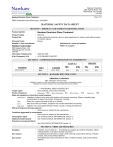 Nawkaw Corporation 2283 Argentia Road - #23 Mississauga, ON, Canada L5N 5Z2 Page 1 of 6 Nawkaw Emulsion Gloss Treatment MSDS Preparation Date (dd/mm/yyyy): 12/02/2009 MATERIAL SAFETY DATA SHEET SECTION 1 - PRODUCT AND COMPANY IDENTIFICATION Product identifier : Nawkaw Emulsion Gloss Treatment : NEGT-64 : Acrylic coating for producing a shine or gloss appearance to masonry walls without sealing in moisture vapours. Chemical Family : Mixture. Supplier’s name and address: Manufacturer’s name and address: Product Code(s) Product Use Refer to Supplier Nawkaw Corporation 2283 Argentia Road - #23 Mississauga, ON, Canada L5N 5Z2 Information Telephone No. 24 Hr. Emergency Tel # : (905) 542-7893 : (613) 996-6666 (CANUTEC) SECTION 2 - COMPOSITION/INFORMATION ON INGREDIENTS OSHA PEL ACGIH TLV Ingredients Acrylic polymer CAS # N/Av % (weight) 55.00 - 65.00 TWA N/Av STEL PEL STEL N/Av N/Av N/Av SECTION 3 - HAZARDS IDENTIFICATION EMERGENCY OVERVIEW Milky, white liquid. Ammonia odour. Inhalation of vapours in high concentration may cause irritation of respiratory system. Repeated or excessive exposure may cause slight skin and eye irritation. ***POTENTIAL HEALTH EFFECTS*** Target organs : None expected, when used as intended. Routes of exposure : Inhalation: YES Skin Absorption: NO Skin & Eyes: YES Ingestion: YES Signs and symptoms of short-term (acute) exposure Inhalation : Inhalation of vapours may cause mild irritation to the mucous membrane. Effects of breathing high concentrations of vapour may include: Drowsiness; Vomiting. Skin : Direct skin contact may result in little or no irritation. Eyes : May cause mild eye irritation. Symptoms may include inflammation and tearing. Ingestion : Ingestion may cause gastrointestinal irritation, nausea, vomiting and diarrhoea. Effects of long-term (chronic) exposure : None known or reported by the manufacturer. Conditions aggravated by overexposure : None known or reported by the manufacturer. Carcinogenic status : See TOXICOLOGICAL INFORMATION, Section 11. Additional health hazards : See TOXICOLOGICAL INFORMATION, Section 11. Potential environmental effects : See ECOLOGICAL INFORMATION, Section 12. SECTION 4 - FIRST AID MEASURES Inhalation Skin contact Eye contact : If inhaled, move to fresh air. If breathing has stopped, give artificial respiration. Obtain medical attention if symptoms develop and persist. : Immediately flush with plenty of water, while removing contaminated clothing. If irritation persists, seek prompt medical attention. : Immediately flush eye(s) with plenty of water. If irritation persists, seek prompt medical attention. Nawkaw Corporation 2283 Argentia Road - #23 Mississauga, ON, Canada L5N 5Z2 Page 2 of 6 Nawkaw Emulsion Gloss Treatment MSDS Preparation Date (dd/mm/yyyy): 12/02/2009 Ingestion Notes For Physician : Do not induce vomiting. Have victim rinse mouth with water, then give one to two glasses of water to drink. Never give anything by mouth to an unconscious person. Get medical attention. : Treat symptomatically. SECTION 5 - FIRE FIGHTING MEASURES Fire hazards/conditions of flammability : Not flammable under normal conditions of handling. Closed containers may rupture if exposed to excess heat or flame due to a build-up of internal pressure. Flammability classification (OSHA 29 CFR 1910.1200) : Non-flammable. Flash point : N/Ap Flash point Method : N/Ap Auto-ignition temperature : N/Av Upper flammable limit (% by vol.) Lower flammable limit (% by vol.) : N/Ap : N/Ap Oxidizing properties : None known. Flame Projection Length : N/Ap Flashback observed : N/Ap Explosion data: Sensitivity to mechanical impact / static discharge : Not expected to be sensitive to mechanical impact or static discharge. Suitable extinguishing media : Use media suitable to the surrounding fire such as water fog or fine spray, alcohol foams, carbon dioxide and dry chemical. Special fire-fighting procedures/equipment : Firefighters should wear proper protective equipment and self-contained breathing apparatus with full face piece operated in positive pressure mode. Move containers from fire area if safe to do so.Water spray may be useful in cooling equipment exposed to heat and flame. Hazardous combustion products : Carbon oxides and other irritating fumes and smoke. 0 - Minimal 1 - Slight 2 - Moderate 3 - Serious 4 - Severe NFPA Rating Flammability: 0 Instability: 0 Special Hazards: : Health: 0 None SECTION 6 - ACCIDENTAL RELEASE MEASURES Personal precautions Environmental precautions Spill response/cleanup : Restrict access to area until completion of clean-up. Ensure clean-up is conducted by trained personnel only. Wear appropriate protective equipment. Refer to protective measures listed in sections 7 and 8. : Ensure spilled product does not enter drains, sewers, waterways, or confined spaces.If necessary, dike well ahead of the spill to prevent runoff into drains, sewers, or any natural waterway or drinking supply. : Remove all sources of ignition. Ventilate area of release. Stop spill or leak at source if safely possible. Contain and absorb spilled liquid with non-combustible, inert absorbent material (e.g. sand), then place absorbent material into a container for later disposal (see Section 13). Contaminated absorbent material may pose the same hazards as the spilled product. Notify the appropriate authorities as required. Prohibited materials : None known. Special spill response procedures : If a spill/release in excess of the EPA reportable quantity is made into the environment, immediately notify the national response center in the United States (phone: 1-800-424-8002). US CERCLA Reportable quantity (RQ): None reported. SECTION 7 - HANDLING AND STORAGE Safe Handling procedures : Wear suitable protective equipment during handling. Use with adequate ventilation. See Section 8 for additional personal protection advice when handling this product. Avoid breathing vapour or mist. Avoid contact with eyes, skin and clothing. Keep away from extreme heat
