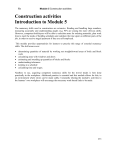 To Module 5 Construction activities Construction activities Introduction to Module 5 The numeracy skills used in construction are extensive. Reading and handling large numbers, measuring accurately and understanding angles (e.g. 90o) are among the more obvious skills. However, competent bricklayers will be able to calculate areas for ordering materials, plan work time to meet the needs of building schedules and calculate the time spent on different parts of the job, in order to receive staged payments if they are self-employed. This module provides opportunities for learners to practise this range of essential numeracy skills. The skill areas cover: determining quantities of material by working out straightforward areas of brick and block work calculating areas with windows and doors estimating and rounding up quantities of bricks and blocks understanding tolerances keeping to a schedule calculating time and wages. Needless to say, acquiring competent numeracy skills for the trowel trades is best done practically in the workplace. Additional practice is essential and this module allows for this, in an environment where errors can be made safely. Constantly relating the module’s activities to the learners’ own workplace will encourage the necessary work-based links to be made. 233 To Module 5 Construction activities Skills checklist 5:0 As part of the building team, you need to follow instructions and procedures to get a building up and out of the ground. You need to order the correct amount of materials and work out the time it will take to complete each part of the job. You need the following skills to be confident that you are constructing the building according to the plans and within the timescale. Tick the skills you already have and then look again at the checklist when you have used the materials. Skills for construction activities Now Later Calculating the area of bricks needed for walls without openings Calculating the area of bricks needed for walls with openings and gable ends Ordering materials by rounding up the area of bricks calculated, to allow for wastage Measuring accurately to within 3mm Understanding and working to agreed tolerances for brick and block work Understanding the timed sequence involved in the job Calculating and recording the taken time for jobs in hours, days and months Calculating your wages 234 To Module 5 Construction activities PAGES 5:1–5:2 Areas (1) Establishing the amount of materials required to complete a job is essential if the job is to be completed on schedule and within budget (Unit No. VR38, Unit No. VR40). This means calculating the area of a wall from a plan in order to estimate the number of bricks needed to build that wall. Materials Calculator Plans of buildings showing front, rear and side elevations Learning outcomes 1 2 3 4 To understand that area is a measure of surface (focus page, Task 1) To understand that area is measured in square units, in particular square metres (focus page, Task 1) To understand and use the formula for calculating the area of a rectangle (focus page, Tasks 1 and 2) To understand that is easier to convert dimensions from plans into metres before calculating the area (focus page, Task 3) Introduction Draw different sized rectangles or squares on 1cm square paper and get learners to count the squares in order to calculate area. Write the formula for calculating the area of a rectangle (A = l × w) and ask learners when they would use it (e.g. to find the area of a rectangular floor). Explain that, in the case of a rectangular wall, the word ‘height’ could replace the word ‘width’ (w) in the formula to more appropriately describe its properties. Demonstrate this using A4 paper (landscape) marked ‘length’ and ‘width’. Position it on a flat surface to represent a floor. Write the formula A = l × w (Area of a rectangular floor = length × width). Hold the paper at 90° to the surface to represent a wall. Replace the word ‘width’ with the word ‘height’. Write the formula A = l × h (Area of a rectangular wall = length × height). Point out that it is the same two measurements that are multiplied together to give the area. Focus page Ask learners to use the square-counting method to calculate the areas of a number of different sized rectangles. Ask learners to use the formula to find the areas of the same rectangles in order to illustrate that the two methods give the same answer. Use a tape measure to illustrate the fact that 1 m is the same as 1000mm. Get learners to convert measurements in millimetres into metres by dividing them by 1000. Use a calculator. Ask learners to use both written calculations and calculators to work out the areas of rectangles using the formula. Curric. refs MSS1/L1.9 MSS1/L1.7 N2/L1.7 NOS/NVQ VR38 VR40 Key Skills N1.1c N1.2d Task 1 Work out the area of a rectangular wall MSS1/L1.9 Ensure learners understand the task. They can find an example of how to complete the task on the focus page. If the learner has difficulty You may need to work through the problem with the learner. (Note: the learner can answer this question by counting or multiplication. Encourage them to count first and confirm using multiplication.) Check the learner’s concept of multiplication. Give further examples until the learner can move on from counting to multiplication. Learners who do not understand the concept of area as a measure will need additional support using the Skills for Life materials. 235 To Module 5 Construction activities Extension Move on to the next task. Task 2 Calculate the area of a rectangular wall using the formula A = l × h MSS1/L1.9 Ensure learners know how to complete the task. Ensure learners know what each of the letters in the formula represents (illustrated on the focus page). Encourage learners to estimate an answer, do the calculations on paper, then check using a calculator. If the learner has difficulty Refer the learner back to Task 1 and explain 