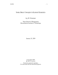 D-4894 -1- Some Basic Concepts in System Dynamics Jay W. Forrester Sloan School of Management Massachusetts Institute of Technology January 29, 2009 Copyright © 2009 By Jay W. Forrester Permission granted to reproduce For noncommercial and educational purposes -2- D-4894 D-4894 -3- 1. THE NATURE OF SYSTEMS 1.1. 1.2. 5 5 7 Feedback Loops Simplest Feedback Loop 2. FROM SIMPLE TO COMPLEX SYSTEMS 7 3. EVERYONE USES MODELS 9 3.1. 9 Computer Models and Mental Models 4. WORKING WITH COMPUTER MODELS 10 5. SOURCES OF INFORMATION 12 6. GENERIC OR TRANSFERABLE STRUCTURES 13 6.1. Generic Structure of a Clock and Economic Business Cycle 7. DIFFERENTIAL EQUATIONS VS. INTEGRATION 15 8. MORE ON SYSTEM DYNAMICS 16 14 -4- D-4894 D-4894 -5- Some Basic Concepts in System Dynamics by Jay W. Forrester In its full development, system dynamics is a discipline with the scope of science, education, law, engineering, or medicine. On the other hand, it is becoming clear that teachers in ordinary K-12 schools can make enough progress in two or three years to achieve major improvement in students’ thinking, self reliance, and enthusiasm for learning. 1. THE NATURE OF SYSTEMS Many principles form the foundation of system dynamics and become a basis for thinking in all endeavors. 1.1. Feedback Loops Here we touch on the nature of feedback loops. People seldom realize the pervasive existence of feedback loops in controlling everything that changes through time. Most people think in linear, nonfeedback terms. For example, in Figure 1, people see a problem, Figure 1 decide on an action, expect a result, and believe that is the end of the issue. Figure 1 illustrates the framework within which most discussions are debated in the press, business, and government. Copyright © 2009 by Jay W. Forrester Permission granted to reproduce For noncommercial and educational purposes -6- D-4894 Closed-loop Structure of the World Action Information about problem Result A-4293 JWF34 Figure 2 However, a far more realistic perception would be Figure 2 in which a problem leads to action that produces a result that creates future problems and actions. There is no beginning or end. We live in a complex of nested feedback loops. Every action, every change in nature, is set within a network of feedback loops. Feedback loops are the structures within which all changes occur. Filling a glass of water is not merely a matter of water flowing into the glass. There is a control of how much water. That control is the feedback loop from water level to eye to hand to faucet to water flow and back to water level. Such closed loops control all action everywhere. JWF35 Figure 3 D-4894 1.2. -7- Simplest Feedback Loop Figure 4 shows the simplest possible feedback system. In the figure are two symbols—a stock, and a flow. The stock is an accumulation, or integration, or level, to choose terminology from different fields. The flow changes the amount in the stock. The flow is determined by a statement that tells how the flow is controlled by the value of the stock in comparison to a goal. All systems, everywhere, consist of these two kinds of concepts—stocks and flows—and none other. Such a statement, that there two and only two kinds of variables in a system, is powerful in simplifying our view of the world. People familiar with accounting statements, as in annual reports of corporations, will recognize the two Figure 4 classes of variables. A financial report is presented on two different pages—the balance sheet and the profit and loss statement. All numbers on the balance sheet are stocks representing accumulations that have evolved over time. The profit and loss statement represents the flows that cause the stocks to change. There is no comparably important third page, only the page representing stocks and the page representing flows. That structure of an accounting statement represents a fundamental truth about all systems. Water in a bathtub is a stock; the flow of water changes the stock. A person’s reputation is a stock that is changed by the flow of good and bad actions by that person. The degree of frustration in a group is a stock that gradually changes in response to surrounding pressures. 2. FROM SIMPLE TO COMPLEX SYSTEMS The basic feedback loop in Figure 4 is too simple to represent real-world situations. But simple loops have more serious shortcomings—they are misleading and teach the wrong lessons. Most of our intuitive learning comes from very simple systems. The truths learned from simple systems are often completely -8- D-4894 opposite from the behavior of more complex systems. A person understands filling a water glass, as in Figure 3. But, if we go to a system that is only five times as ! JWF037B "#$%&'() complicated, as in Figure 5, intuition fails. A person cannot look at Figure 5 and anticipate the behavior of the pictured system. Figure 5 from World Dynamics is five times more complicated than Figure 4 in the sense that it has five stocks—the rectangles in the figure. The figure shows how rapidly apparent complexity increases as more system stocks are added. Mathematicians would describe Figure 5 as a fifth-order, nonlinear, dynamic system. No one can predict the behavior by studying the diagram or its underlying D-4894 -9- equations. Only by using computer simulation can the implied behavior be revealed. Figure 5 displays interactions between population, capital equipment, agriculture, resources, and pollution. The diagram links multiple disciplines. A proper study of systems must usually break down the boundaries between academic disciplines. As stated by Gordon S. Brown, former dean of engineering at MIT, “The message is in the feedback, and the feedback is inherently interdisciplinary.” 3. EVERYONE USES MODELS I sometimes ask an audience how many use models for all their decisions. No one responds. How then, I ask, do they make decisions? They quickly see that all decisions are made on the basis of mental models