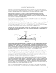 CONSTRUCTION GEOMETRY What types of construction tasks require an understanding of geometry? The answer is just about every type. From construction surveying to cabinetmaking, geometry plays an integral part in defining property boundaries; squaring building corners, cutting roof rafters, and building cabinets that are square. What is geometry? Geometry can be defined as a branch of math dealing with the measurement, relationship, and properties of figures, points, lines, and solids. In the previous chapter on surface measurements we looked at, defined, and learned area formulas for polygons and circles. This chapter will take a closer look at the properties of these objects. Geometry has been used to solve building construction problems for thousands of years. The Egyptians used geometry to build the great pyramids. An age-old problem, encountered by the builders through out time is laying out a square corner. In figure 9A an interior wall is to be constructed to intersect with an existing exterior wall at a right angle (90). Drawing the right angle in figure 9-A was easy. I simply pressed the shift key while I clicked and dragged the mouse. On the construction site it’s a different story. How did the Egyptians do it? They used a rope with knots tied in strategic locations. They would place the rope in the corner and bend it into the shape of a right triangle, with the knots at each vertex. Smart, because one of the three angles of a right triangle is of course 90. right triangle interior wall exterior wall 90 Figure 9-A Egyptian builders knew from experience where to tie the knots in the rope and how to bend it into a right triangle but they didn’t know why it worked mathematically. Some of the pyramids indicate an accurate understanding of Pi, but the mathematical knowledge of the Egyptians did not include the ability to arrive at this by calculation. It is possible that this could have been arrived at "accidentally" through a means such as counting the revolutions of a drum. Their lack of mathematical understanding should take nothing away from their accomplishments, many of which are not completely understood 4000 years later. Around 500 BC the great thinkers of the ancient Greek civilization began to confirm these field proven techniques through mathematics. One of the greatest Greek philosopher-mathematicians was Pythagoras who was no doubt inspired after living in Egypt. Today we particularly remember Pythagoras for his famous geometry theorem. Although the theorem, now known as the Pythagorean theorem, was known to the Babylonians 1000 years earlier, he may have been the first to prove it. The Pythagorean Theorem explains why the Egyptian rope method worked. The theorem of Pythagoras states that for a right-angled triangle the square of the hypotenuse is equal to the sum of the squares of the other two sides. It should be pointed out that to Pythagoras, the square on the hypotenuse would certainly not be thought of as a number multiplied by itself, but rather as a geometrical square constructed on the side. To say that the sum of two squares is equal to a third square meant that the two squares could be cut up and reassembled to form a square identical to the third square. Figure 9-C illustrates how Pythagoras saw the theorem. The triangle in Figure 9-B is made up of three sides, one side four feet in length, a second side three feet in length and the third side five feet in length. 74 If each side is made into a square, the area of the 4 foot square plus the area of the three foot square equal the area of the five foot square as seen in figure 9-C 44 = 16 33 = + 9 55 = 25 55 = 25 4 5 44 = 16 Figure 9-B Figure 9-C 3 33 = 9 Today we write the Pythagorean theorem in a mathematical formula - a2 + b2 = c2 In this formula c represents the side opposite the right angle called and is called the hypotenuse. See figure 9-D. The other sides of the triangle are represented by a and b. It is important to note that in the formula above the outcome of adding a2 and b2 is c2. Lets substitute the values of the triangle in figure 9-B into the formula. 42 + 32 = 52 16 + 9 = 25 However what you want to know is c. Therefore the formula can be written in a different form, which solves for c as below. Angle A Pythagorean Theorem a2 + b2 = c The hypotenuse of a right triangle equals the square root of the sum of the squares of the other two sides. Hypotenuse side c side b Angle B 90 Angle C side a Solve for the hypotenuse of figure 9-B 42 + 32 = c 16 + 9 = c 25 = 5 Figure 9-D Right Triangle 75 THE 3-4-5 SQUARING METHOD Today we still use the same techniques employed by the Egyptians to square a corner, except we use our Mylar tape measures instead of a rope. Carpenters call the method the three four five method. Here is how it works. As in figure 10-1 we know that a triangle with sides measuring three feet and four feet, and hypotenuse measuring five feet is a right triangle. Consequently carpenters measure three feet along an existing wall from the point where the intersecting wall will be constructed (called the point of beginning) and make a pencil mark. Next from the point of beginning the tape measure is extended four feet at an approximate right angle to the existing wall. Another tape is then extended diagonally from the pencil mark to the extended tape. They are then aligned so that the five-foot mark on the diagonal tape touches the four-foot mark on the perpendicular tape. Another pencil mark is made on the floor at this point. A chalk line is now extended and snapped from the point of beginning to the pencil mark. Presto, a right angle is formed! In reality to increase the accuracy of the procedure the lengths of the sides of the triangle can be doubled. The same procedure would be carried out except that the triangle sides would measure six feet and eight feet, and the hypotenuse would measure ten feet. Try these: Where appropriate express answers in feet and inches 1. Solve for the hy