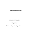 TEMPUS Evaluation Visit Institutional Evaluation Programme Guidelines for participating institutions SELF-EVALUATION: PROCESS AND REPORT Self-evaluation is a crucial phase in the evaluation process. The self-evaluation phase has two aspects that are equally important: the self-evaluation process and the self-evaluation report: The self-evaluation process is a collective institutional reflection and an opportunity for quality improvement of any aspect of the management The self-evaluation report is one outcome of the self-evaluation process; it provides information to the evaluation team, with emphasis on the management's strategic and quality management activities. The goal of both the process and the report is to enhance the institutional capacity for improvement and change through self-reflection. This is a crucial phase in which careful consideration should be given to maximise the engagement of the whole management. As soon as the management has received these guidelines it should begin the self-evaluation process basing its work on the checklist provided in Section 2.2 and will write the self-evaluation report (Section 2.3). 2.1 The self-evaluation group To ensure the success of the self-evaluation, the management will set up a self-evaluation group that represents a broad view of the management. The self-evaluation will result in a report submitted to the external evaluation team under the responsibility of the rector. 2.2 Preparing the self-evaluation report: What kind of information to collect and analyse? As an important step in the evaluation exercise, the self-evaluation report has three major purposes: To present a succinct but analytical and comprehensive statement of the management’s view of quality management and strategic planning To analyse the strengths and weaknesses of the management, identify the opportunities and threats it faces and propose specific actions to address them To provide a framework against which the institution will be evaluated by the team As the main vehicle for the management to present itself, the self-evaluation report is also an opportunity for the management to reflect critically upon the way it is managed and handles quality as a central process in its strategic decision making. Therefore, the self-evaluation report should not be simply descriptive, but analytical, evaluative and synthetic. It is based on a SWOT analysis (assess strengths and weaknesses, identify threats and opportunities) and show how the various elements of strategic thinking and quality management are interconnected. 2 Four central questions structure this SWOT analysis: What is the management trying to do? What are its norms and values, the mission and goals? How is the management trying to do it? What are the organisational characteristics of the managements and its key activities and to what extent these are in line with the norms and values? How does the management know it works? To what extent does the management know whether its activities and organisational structures meet the management’s objectives? How does the institution change in order to improve? 2.3 The Checklist The following checklist will guide the data collection and analysis in the preparation of the selfevaluation report. It is important that all the bullet points on the list are addressed by the selfevaluation group but, since each management operates within its own specific context, the selfevaluation group may want to tailor the checklist before starting its work. If some questions are not relevant or if specific pieces of information are impossible to provide, this should be noted in relation to the questions. The checklist is structured into four major sections that reflect the four central questions mentioned above. A fifth – optional – section considers a strategic priority for the evaluation, which may be selected by the management for more in-depth consideration. I. Norms and values: What is the management trying to do? This section discusses institutional norms and values. It analyses the mission and goals of the management. The evaluation team will be particularly interested in the strategic choices the management has made with regard to its scope and profile. Governance and management What is the degree of centralisation and decentralisation that the management aims for? Does the management have human resources and gender policies in place? Academically-related activities: What are the management’s goals for its relationship to society (external partners, local and regional government) and its involvement in public debate? Funding: What should be the management’s relationship to its funding agencies (public and others, such as research contractors)? What balance is the management aiming to achieve in terms of its local, regional, national, 3 and international positioning? Any other institutional goals? II. Organisation and activities: How is the management trying to do it? In practice, the institution manages its activities (teaching, research, and service to society) so as to realise its mission and goals, while taking account of the specific opportunities and constraints it faces. The inevitable discrepancy between what ought to be (norms and values) and what actually exists (organisation and activities) is an indicator of the management’s strengths and weaknesses. It is the analysis of strengths and weaknesses that constitutes the next phase of the self-evaluation. The issues addressed in Section I should be re-visited, but rather than stating objectives, Section II will reflect upon the management’s strategy in terms of each of these issues and how they are achieved, and will analyse the extent to which the management takes full advantage of its autonomy. Moreover, each subheading in this section should also contain concrete proposals on how identified weaknesses could be remedied and strengths could be further enhanced. Governance and management: Re-visit questions in Se