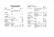 World Literatures in English 3. Indian Diaspora: Author Titles Table of Content Author Titles 出 處 p. Salman Rushdie Christopher Columbus and Queen Isabella of Spain Consummate Their Relationship Chitra Divakaruni B.Mukherjee Anjana Appachana “We the Indian Women America.” "Paki Go Home." "To Sylvia Plath." "The Management of Grief" "Her Mother" II. South Africa Author Titles General Intro. South Africa Genral Introduction i My Fair Lady Excerpts: Higgins on the English language Maps V I. India General introduction India I A-1 1. Poems: Rabindranath Tagore "Flute-music" II (1861-1941) ( 9-11) from Stray Birds Labhshankar Thacker “Poem” Sujata Bhatt “What Is Worth Knowing?” Kaa Naa “Situation” Subramanyam Imtiaz Dharker (1954-) "Purdah, 1" A-4 A-7 A-9 A-9 A-10 II A-10 2. Short Stories and Novels Ismat Chugtai Qurratulain Hyder Arundhati Roy "Gainda" III "Honour" The God of Small Things chaps IV 1, 2 A-11 A-17 A-23 Himani Bannerji 出 處 V A-66 (12338) in A selection of poems “Prelude” Keorapetse Willy “”Beware of Dreams” Kgositsile Douglas Reid Skinner “The Body is a Country of Joy and Pain” “Reflections of an Old Worker” Gladys Thomas “Final Supplication” Mazisi Kunene “Lovesong after the Music of K. Antjie Krog E. Ntsane.” Mongane Serote p. VI A-72 VII A-74 A-75 VIII A-89 IX A-77 出 處 I p. XI, XII XII B-1 B-4 B-4 B-5 XI B-5 XII XI XI B-7 B-8 B-9 South Africa (continued) Ingrid de Kok Njabulo S. Ndebele Nadine Gordimer Mbulelo Mzamane Bessie Head J. M. Coetzee “Our Sharpville” "The Prophetess" "The Music of the Violin" "Six Feet of the Country" "Amnesty"; "The Day of the Riots" "The Prisoner Glasses" Foe chap I Foe chap -II Foe chap, IV who III. The Caribbean General Introduction XI VI VII VIII Wore IX B-10 B-12 B-20 B-32 B-37 B-41 B-53 B-56 B-80 B-113 I C-1 X C-3 XI C-7 C-17 C-21 C-23 C-45 C-61 1. Short Stories and Novels Faustin Charles Olive Senior Charlotte Bronte Jean Rhys Jamaica Kincaid Michelle Cliff Edwidge Danticat “Anancy and Monkey Business.” "Bright Thursdays" from Jane Eyre Introduction from Annie John From Abeng "Children of the Sea" I XIII XII XIV Sources: I. II. Encyclopedia of Post-Colonial Literatures in English. 2 Vols. Eds. Eugene Benson & L. W. Conolly. NY: Routledge, 1994. The Oxford Anthology of Modern Indian Poetry. Ed. Vinay Dharwadker & A.K. Ramanujan. Delhi: Oxford UP, 1994. III. Parwaaz: Urdu Short Stories by Women. Trans. Sayeeda S. Hameed & Sughra Mehdi. New Delhi: Kali for Women, 1996. IV. V. The God of Small Things. Arundhati Roy. XIII. Mzamane, Mbulelo, ed. Hungry Flames and other Black South African Short Stories. New York: Longman, 1986. XIV. Coetzee, J. M. Foe. NY: Penguin, 1986. XV. Faustin Charles. “Anancy and Monkey Business.” Under the Storyteller’s Spell: Folk-Tales from the Caribbean. Ed. Faustin Charles. Viking Kestrel. NY: Random House, 1997. Salman Rushdie. Imaginary homelands: essays and criticism, 1981-1991. American ed. New York: Granta Books in associaton with Viking, 1991 XII. Achebe, Chinua and C. L. Innes, eds. The Heinemann Book of Contemporary African Short Stories. Oxford: Heinemann, 1992. 1st VI. Chitra Divakaruni “We the Indian Women in America.” Contours of the Heart: South Asians Map North America Ed. Sunaina Maira & Rajini Srikanth. NY: The Asian American Writer’s Workshop, 1996. VII. Himani Bannerji. "Paki Go Home." "To Sylvia Plath." The Geography of Voice: Canadian Literature of the South Asian Diaspora. Toronto: Tsar, 1992. 5-7 XVI. Olive Senior. “Bright Thursday.” Green Caone and Juicy Floasam: Short Stories by Caribbean Women. Eds. Carmen C. Esteves and Lizabether Paravisini-Gebert. New Brunsweek: Rutgers, 1992: 194-221. XVII. Cliff, Michelle. Abeng. NY: Penguin, 1984. XVIII. Kincaid, Jamaica. XIX. VIII. Bharati Mukherjee. "The Management of Grief." The Geography of Voice: Canadian Literature of the South Asian Diaspora. Toronto: Tsar, 1992. 159-174. IX. Anjana Appachana. "Her Mother." Incantations and other stories. New Brunswick, N.J. : Rutgers University Press, 1992. X. Campschreur William & Joost Divendal eds. 1989. Culture in Another South Africa. Zed Books, XI. Bunn, David, and Jane Taylor, eds. From South Africa: New Writing, Photographs, and Art. U of Chicago P, 1987. Danticat, Edwidge. Annie John. NY: Farr, Staus and Giroux, 1983. Krik? Krak. NY: Vintage, 1991. My Fair Lady Excerpts: Higgins on the English language [Eliza is trying to get people to buy some flowers from her, when somebody tells her that a gentelman, Higgins, is taking note of what she says.] BYSTANDER 1 [approaches from behind the column] 'Ere, you be careful: better give him a flower for it. There's a bloke 'ere, behind that pillar, takin' down ev'ry blessed word you're sayin'. [He walks off]. ELIZA [leans around pillar curiously, then springs up terrified] I ain't done nothin' wrong by speaking to the gentleman. I've a right to sell flowers if I keep off the kerb. [Hysterically] I'm a respectable girl: so help me, I never spoke to him 'cept so far as to buy a flower off me. Various bystanders, roused by her outburst, are curious as to what the fuss is about and begin to gather round. BYSTANDER 2. What's all the bit of a noise? There are further words of: What's all that shouting? Where's it coming from?, etc. ELIZA [sees Pickering and turns to him for support, crying wildly] Oh, sir, don't let him charge me. He dunno what it means to me. They'll take away me character and drive me on the streets for speakin' t' gentleman! HIGGINS [Professor Higgins appears from around the pillar] There, there, there, there! who's hurting you, you silly girl? What do you take me for? ELIZA. On my Bible oath I never spoke a word— HIGGINS. Oh, shut up, shut up. Do I look like a policeman? ELIZA [suspicious at this stranger] Then what d'ya take down me words for? How do I know y' took me down right? You just show me what you wrote about me. [Higgins opens up his book and holds it steadily un