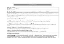 Lesson Template Title and Author: The Mitten Jan Brett Grade: Preschool Reading Level: 3:2 Lexile Level: 800 L DRA: 24 Key Understanding: Nicki wanted his grandmother Baba to knit him a new pair of snow white mittens. Baba, his grandmother did not think it was a good idea however, she knitted him a new pair of mittens. Sadly, Nicki loses one in the snow. Losing his mitten is a big problem. This is demonstrated through character dialogue and actions. Suggested number of days: 5 Rhode Island Early Learning Standards: Language Development: Component 1: Receptive Language Learning Goal 1.a: Young children attend to, understand, and respond to increasingly complex language. Language Development: Component 2: Expressive Language Learning Goal 2.a: Young children use increasingly complex vocabulary, grammar, and syntax to express thoughts and needs. Literacy: Component 4: Comprehension and Interest Learning Goal 4: a: Children show interest and an understanding of a variety of literacy experiences. Cognitive Development: Memory and Working Memory Learning Goal 2.a: Children hold information in their minds and manipulate it to perform tasks. IEP Goals lesson addresses: Speech/Language: In 5 instructional weeks, Julian will answer 5/10 question words (interrogatives) who, what, where, when, why, and how accurately. In 5 instructional weeks, Julian will retell a familiar story in the proper sequence, including such details as characters, phrases, and events with visual prompts 5 times during a 20-minute time period. Reading: Common Core: Foundational Skills) Student will demonstrate the understanding of spoken words, syllables, and sounds. Reading: Common Core: (Key ideas and details) Student will actively engage in group reading activities with purpose and understanding. Writing: Common Core: (Conventions of writing) Student will use a combination of drawing, dictating, and writing to compose and narrate writing pieces in which they tell or name what the writing is about. Materials: The Mitten book by Jan Brett Adapted and modified text: The Mitten Before Reading Cultural Supports, Building Background: Winter season (snow, cold, freezing, temperature). Understand the need for winter clothes. Learn about where animals go in the winter? (hibernate) Learn about the characteristic of the animals in the story. Family members. How clothes are made. (Knitting, sewing, weaving, etc.) Learn about habitats (forest, mountains). Learn about the country and culture of Ukraine. Compare different book genres (folklore, fiction, nonfiction, fairytale) Connecting Activity: (Questions, Conversation about topic): We have previously discussed winter weather and the need for winter clothing. We have discussed how clothing is made while studying our Clothing Unit. Students have studied about the various woodland animals in nature that burrow and hibernate. We have discussed families and different members of families in which a person may live with. Genre Set-Up, Bridging Conversation, Think-Aloud, Setting Purpose (What strategy are you highlighting in your lesson) Before reading the story, The teacher will introduce the characters and the problem of the story. The teacher will start by saying; “The Mitten” is a story about Nicki, a boy who wants a pair of snow-white mittens. Baba, his grandmother, knits him a pair of mittens but she tells him not to lose them. When Nick goes in the snow to play, he loses one of his mittens. Let’s find out what happens to the mitten. Vocabulary (Tier II) Word Contextualize Word In the story….. “A mole tired from tunneling along, discovered the mitten and burrowed inside.” “A great bear lumbered by.” Definition ( kid friendly) To hide inside. Example beyond story To move slowly. The turtle lumbered into the water. jostled “The mole and the rabbit were bumped and jostled.” Being pushed. You get jostled when you are waiting in line. tunneling “A mole, tired from tunneling along, discovered the mitten.” “Just the sight of the cozy mitten made him drowsy.” To make a hole or tunnel in the ground by digging The squirrel tunneled a hole to hide the acorn. Sleepy, tired I am drowsy during nap time. burrowed lumbered drowsy The rabbit burrowed into the garden. Bridge to story Picture The mole coming out of his hole and climbing into the mitten. The bear is walking over to the mitten to look inside the mitten. When hedgehog is crawling into the mitten, the rabbit and the mole are being pushed around inside the mitten. The picture of the mole coming out of his hole in the snow. When fox poked his muzzle in the mitten. Comprehension Strategy Before Reading Make a connection Self Monitor Identify Important Information Comprehension Strategy Prediction/ Questioning Visualize Prior Knowledge Make inferences Prior Knowledge Visualize Prediction Questioning Synthesis Language ( What you say to support, teach the comprehension strategy) 1. The teacher will have my students look at the front cover of the story. The teacher will ask “Tell me what you see.” “Why do you think it is called The Mitten?” “What do you think the story is about?” “What kind of animals do you see?” “Where do you think the story takes place?” “Does the story take place in the summer or winter?” 2. After reviewing the cover, the teacher will introduce the text and explain to the students, “Today we are going to read you a book called The Mitten. It is about a boy named Nicki who wants his grandmother, Baba to knit him a pair of mittens. She doesn’t want to because she is afraid he will lose them in the snow. Nicki promises his grandmother that he will not lose his new mittens. However, as soon as he goes out to play, one of his mittens gets lost, and an adventure begins. Let’s find out what happens to Nicki’s mittens.” 3. The teacher will then read aloud the entire story, The Mitten. 4. During the reading, the teacher will explicitly teach the vocabulary words; burrowed, g