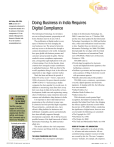 Feature Anil Vaidya, DBA, CISA, CISM, has been an IT management professional for the past three decades. He is the professor of information management at S. P. Jain Institute of Management & Research in Mumbai, India. He can be reached at anvvaidya@gmail.com. Do you have something to say about this article? Visit the Journal pages of the ISACA web site (www.isaca. org/journal), find the article, and choose the Comments tab to share your thoughts. Go directly to the article: Doing Business in India Requires Digital Compliance The Information Technology Act in India is an ever-evolving document, progressing on all fronts. Business must be in sync with it. The proliferation of digital media in every aspect of business has been changing the way businesses run. The spread of networks and easy access to the Internet has brought a common denominator to the world. Companies have gone global with business partners and customers spread around the globe. This has resulted in newer compliance requirements and, consequently, legal implications in the case of shortcomings. Over the last decade, Asian countries have emerged as major contributors to globalized businesses. With one-third of the world’s population living in Asia, it also offers an opportunity to tap a bigger customer market. Much has been said about the growth of India’s IT service sector—–from 1.2 percent in 1998 to 8 percent of its gross domestic product (GDP) in 2012-13.1 Outsourcing to Indian companies has been popular for several years. In addition to outsourcing, many firms have set up their own shops in India for back-office services, development, health care and engineering, among others. Furthermore, many enterprises have joint ventures and subsidiaries doing business in India. It is important to know that India has been progressing on the cyberfront in many ways. E-commerce has been provided legal recognition. The governments—central and state—have offered e-filing facilities for businesses and individuals. Copyrights, patents and trademarks have been officially supported through international cooperation. All of this has become possible because of the legal framework of India’s Information Technology Act 2000 and other allied Acts. This article addresses the vital components of this structure and brings forth the compliance requirements. The Legal Framework and Its Aim The legislation that encompasses cyberspace ©2013 ISACA. All rights reserved. www.isaca.org in India is the Information Technology Act, 2000. It came into force on 17 October 2000 and has since been updated by the Information Technology (Amendment) Act 2008 and further rules, orders and notifications issued from time to time. Together these are referred to as the Information Technology Act 2000 (ITA-2000). Internationally the Act aligns with the United Nations Commission on International Trade Law (UNCITRAL) Model Law on Electronic Commerce, 1996. ITA-2000 seeks to: • Provide legal recognition for electronic records and digital/electronic signatures, thus facilitating e-commerce • Facilitate e-governance and encourage the use and acceptance of filing of electronic records with government agencies • Identify cybercrime and provide penalties ITA-2000 covers e-commerce, e-governance, e-records, digital signatures and electronic signatures. In keeping with this, the following Acts were amended: • Indian Evidence Act • Bankers Books Evidence Act • India Contract Act With electronic records granted legal recognition, the Indian Government has also amended the Indian Penal Code, thus bringing the offences against electronic records within the purview of ITA-2000. Further, considering the significance of digital assets, those are now covered under the following acts (amended): • The Copyright Act 1957 • The Patents Act 1970 • The Design Act 2000 • The Trade and Merchandise Marks Act 1958 Scope of ITA-2000—Its Jurisdiction ITA-2000 is applicable to the whole of India, i.e., all states and union territories. All acts committed using computer resources in India are covered by this Act. The term “computer resource” includes, for example, all computers, ISACA JOURNAL VOLUME 6, 2013 1 cell phones, mobile devices, databases and networks. Any action committed by a person located outside the geographical boundaries of India also falls under the jurisdiction of this Act if the action involves a computer resource located in India, per section 75 of the Act. However, one may argue that extension of jurisdiction beyond Indian geographical boundaries poses additional challenges. Entities intending to provide a payment system in India need to obtain authorization from the Reserve Bank of India (the central bank) under the Payment and Settlement Systems Act 2007. The Reserve Bank publishes a list of authorized prepaid payment instruments on its web site. In the same vein, the Reserve Bank has also approved four card payment networks as of April 2013. The Legal Framework—Salient Features In India, three sections of society are involved in the enactment of cyberlaws: the legislators, the judiciary and the government. The primary cyberlaw in India is the legal framework provided by ITA-2000 and allied amended laws. The legislations award necessary powers to the judiciary to rule on various matters as required. The Indian legal system also follows precedents established by prior decisions—the principle of stare decisis. The decisions of higher courts are binding on the lower courts. Rulings of peer courts and lower courts also carry persuasive value though they are not binding. This implies that any precedent may be cited while arguing the case. Following the legislature and the judiciary, the central and the state governments are required to ensure that the laws are enforced as required. Four major steps are required for a statute to come into force in India. First, the government has to prepare a draft bill and present it to Parliament. The bil