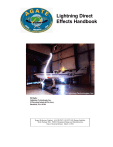Lightning Direct Effects Handbook Ed Rupke Lightning Technologies Inc. 10 Downing Industrial Parkway Pittsfield, MA 01201 Report Reference Number: AGATE-WP3.1-031027-043-Design Guideline Work Package Title: WBS3.0 Integrated Design and Manufacturing Date of General Release: March 1, 2002 Table of Contents Chapter 1.0 Introduction 2.0 The Lightning Environment 3.0 Aircraft - Lightning Interaction 4.0 The Certification Process 5.0 Protection Methodology 6.0 Aircraft Skins: A Brief Introduction 7.0 Windshields and Similar Assemblies 8.0 Control Surfaces 9.0 Control Surface Hinges and Bearings 10.0 Composite Fuel Cells 11.0 Externally Mounted Hardware 12.0 Radomes 13.0 Propulsion Systems ii 1.0 INTRODUCTION This handbook is intended to assist aircraft design and certification engineers in protecting small personal aircraft against the direct effects of lightning strikes. It is also intended to assist Federal Aviation Administration (FAA) certifying engineers in assessing the adequacy of proposed lightning protection designs. Emphasis has been given to successful test results (which have largely been condensed) in an effort to assist protection design of new aircraft through similarity to previous successful designs. This compilation of data should also allow a designer to make early decisions and minimize development testing. The design engineer will also find this handbook a means of avoiding either ineffective protection methods or the testing of previously proven techniques. This handbook addresses the direct effects of lightning strikes. Its intent is to provide guidance and educate engineering personnel responsible for lightning protection of primary aircraft structure. The recommendations included in this document are specific to the design of small personal aircraft and may not be as applicable to large composite aircraft designs. It is intended to assist engineers with limited experience in the design of aircraft lightning strike protection. Information is included on the natural lightning environment, the interaction between aircraft and lightning, and the mechanism of the lightning strike effects on the aircraft. Protection design guidelines in this handbook are applicable to composite airframes, (including primary and secondary structures), control surfaces, exterior skins and fuel tanks. Composite materials to be included are fiberglass, aramid fiber and carbon fiber reinforced epoxies. Boron structures are addressed only briefly, as this material is not in wide use. This handbook also includes a discussion of verification procedures for determining the adequacy of protection designs. Included herein is design and test data accumulated from a variety of references. These include airframe manufacturers and U.S. government research and development agencies. Specific sources are referenced throughout the handbook. This handbook will not address the protection of: a) electrical systems and components and avionics, b) fuel system and fuel system components other than tanks, c) flight control systems other than control surfaces and d) protection of personnel from electrical shock. These items usually are exposed to lightning indirect effects and require case-by-case treatment. The protection of metal skins and structures is treated only briefly since other sources of lightning protection design information for metal airframes are readily available. Periodic updates of this handbook are anticipated as additional test data and new protection materials and techniques are developed. Ch. 1 Pg. 1 The user of this handbook new to lightning protection is urged to study the introductory sections on lightning interaction and effects before utilizing the protection design sections of this handbook. Treatment of these topics begins on an elementary level and is aided by illustrations which should enable the non-specialist to proceed to an adequate understanding of important aspects. Should this discussion be inadequate to the user’s needs, a more comprehensive treatment is found in, Lightning Protection of Aircraft, Fisher and Plumer et al., published by Lightning Technologies Inc., 10 Downing Parkway, Pittsfield, MA 01201, or the identical volume, under the title Aircraft Lightning Protection Handbook, 1989, DOT Report No. DOT/ FAA/CT-89/22. The designs included in this handbook represent typical methodologies or approaches to protecting composite materials from the direct effects of lightning. The advantage of using previously tested and proven protection methods is afforded by the ability to verify adequacy of protection designs through similarity to these previously proven methods. This should reduce program costs. Ch. 1 Pg. 2 2.0 The Lightning Environment 2.1 Introduction In order to accurately assess the interaction of lightning with an aircraft, one must have some knowledge as to the physics of the lightning phenomena. This helps one to understand the conditions under which aircraft are struck by lightning. This section will discuss the following topics: ! ! ! Origins (Where and how lightning originates) Cloud-to-ground flashes S The negative flash to ground S The positive flash to ground S Inter- and Intra-Cloud Flashes Flash Parameters 2.2 Origins Lightning flashes usually originate from charge centers in a cloud, particularly the cumulonimbus cloud, although they can occur in other atmospheric conditions. The charges in clouds are produced by complex processes of freezing and melting and by movements of raindrops and ice particles involving collisions and splintering. Typically, most positive charges accumulate at the top of the cumulonimbus clouds, leaving the lower regions negative, although there may be a small positive region near the base. The result is the typical structure of Figure 2.2-1. Figure 2.2-1: Generalized diagram showing distribution of electrical charge in a typical cumulonimbus cloud . Ch. 2 Pg. 1 The electric charges within clouds produce electric fields which, if s