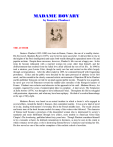 MADAME BOVARY by Gustave Flaubert THE AUTHOR Gustave Flaubert (1821-1880) was born in Rouen, France, the son of a wealthy doctor. His first novel, Madame Bovary (1857), was by far his most successful. It allowed him to rise to the heights of the Paris intelligentsia and enjoy both wealth (though he squandered most of it) and popular acclaim. Despite these successes, however, Flaubert’s life was not a happy one. In his teens he became infatuated with a married woman ten years older than himself, and the disillusionment that resulted from the failed love affair affected the rest of his life. In 1846 he took a mistress, poet Louise Colet, though he rarely saw her and carried on the affair largely through correspondence. After the affair ended in 1855, he contented himself with frequenting prostitutes. Critics and the public were shocked by the open portrayal of adultery in his first novel, and the scandal in the closely-censored artistic environment of Napoleon III led to Flaubert and his publisher being put on trial for an attack against public morals. Though he was acquitted, he never got over his bitterness toward the middle-class morality of the bourgeois leaders of France. Flaubert was reclusive and obsessive in his approach to his craft - Madame Bovary, for example, required five years of uninterrupted labor to complete. A later novel, The Temptation of Saint Antony (1874), was thought to have influenced Freud. Throughout his life he struggled with pessimism, depression, and what may have been epilepsy. He died of a cerebral hemorrhage at the age of fifty-eight. Madame Bovary was based on an actual incident in which a doctor’s wife engaged in several affairs, ruined the family’s finances, then committed suicide. It was a new kind of novel in its day, dealing with matters of everyday life in the French middle class. The social criticism and ironic tone of the book became models for many of the writers who followed. The character of Emma itself became a prototype of the dissatisfied woman who is imprisoned by society’s standards and seeks fulfillment through love affairs, most notably in American writer Kate Chopin’s The Awakening, published about forty years later. Though Flaubert considered himself to be a romantic at heart, he disliked romanticism in literature, as may be seen in the extent to which romance novels play a role in destroying Emma Bovary’s character and ruining her life. He also served as one of the earlier exemplars of the realistic school of novelists. PLOT SUMMARY The story begins with the arrival of Charles Bovary, age fifteen, at a boarding school in Rouen. He is the offspring of a lazy father who alternately ignores him and tries to toughen him up and a doting mother who spoils him. After a period of being mocked by the other students, he settles into a routine of mediocrity. After completing tenth grade his mother sends him off to medical school, where he at first works hard but understands nothing. He then begins to enjoy the pleasures of freedom, spending his time playing dominoes and ignoring his studies. He fails the examination, but his mother brings him home and reassures him that his failure was because of the unfairness of the examiners. He crams and memorizes and passes the exam on his second try. His mother then arranges for him to set up a medical practice in the town of Tostes, where the only doctor is elderly and on the verge of death or retirement. There Charles takes a wife, a forty-five-year-old widow named Heloise Dubuc, who brings some money to the marriage but makes Charles miserable by dominating him completely. Less than a year later Charles is called in the middle of the night to treat a wealthy farmer who has broken his leg. This farmer, Monsieur Rouault, has a lovely young daughter named Emma who keeps house for him. Attracted to Emma, Charles makes frequent visits to check on her father’s condition. Heloise becomes suspicious and forbids him to visit the farm again. Shortly thereafter, the custodian of Heloise’s money runs off with it and Charles discovers she has little more than her debts left to her. His parents visit and initiate a major row. This is too much for Heloise to handle, and she collapses and dies days later. Charles misses his wife but enjoys his freedom more. One day Monsieur Rouault comes to pay his bill, commiserates with Charles, and invites him to visit as often as he likes. Charles takes advantage of the opportunity and in the process comes to know Emma much better. The old farmer, seeing what is going on, is prepared when Charles asks for his daughter’s hand in marriage and readily agrees, as does Emma. They spend the remainder of his mourning period planning the wedding. The wedding goes well despite rowdiness among some of the guests, and Charles then takes his new bride home to Tostes. Before long the disparity between the two becomes evident. Charles loves his young wife to distraction, but she does not love him, and spends her time thinking of ways to make improvements in the house and grounds. In her early years she had become enamored of the romances of literature and the sights, sounds and smells of the environment of the convent where she was educated. All of these gave her an unrealistic view of life and love and made her disillusionment with Charles and his boring existence almost inevitable. As she becomes increasingly disenchanted with her marriage, she begins to think of how things might have been - they might have taken a honeymoon to some romantic spot; she might have married someone clever and sophisticated (surely all her schoolmates must have done so!); perhaps she should not have married at all. Even the gift of a young greyhound does not soothe her spirit or assuage her discontent. Then one day she and Charles receive an invitation to dine at the home of the Marquis d’Andervilliers, a former cabinet minister with growing political ambitions whose abscess had been healed by Ch