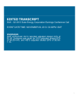 EDITED TRANSCRIPT DUK - Q3 2013 Duke Energy Corporation Earnings Conference Call EVENT DATE/TIME: NOVEMBER 06, 2013 / 03:00PM GMT OVERVIEW: DUK announced 3Q13 reported adjusted diluted EPS of $1.46. Guidance was given for 2013 adjusted diluted EPS of $4.25-4.45, and 4Q13 adjusted diluted EPS of $0.901.10. 1 NOVEMBER 06, 2013 / 03:00PM GMT, DUK - Q3 2013 Duke Energy Corporation Earnings Conference Call CORPORATE PARTICIPANTS Bob Drennan Duke Energy Corporation - VP, IR Lynn Good Duke Energy Corporation - President, CEO Steve Young Duke Energy Corporation - EVP, CFO CONFERENCE CALL PARTICIPANTS Shahriar Pourreza Citigroup - Analyst Greg Gordon ISI Group - Analyst Jonathan Arnold Deutsche Bank - Analyst Dan Eggers Credit Suisse - Analyst Stephen Byrd Morgan Stanley - Analyst Hugh Wynne Sanford C. Bernstein & Company - Analyst Julien Dumoulin-Smith UBS - Analyst Brian Chin BofA Merrill Lynch - Analyst Michael Lapides Goldman Sachs - Analyst Kit Konolige BGC Partners - Analyst Ali Agha SunTrust Robinson Humphrey - Analyst PRESENTATION Operator Good day, and welcome to the Duke Energy third quarterly earnings call. Today's conference is being recorded. At this time, I would like to turn the conference over to Mr. Bob Drennan. Please go ahead. Bob Drennan - Duke Energy Corporation - VP, IR Thank you, Mary. Good morning, everyone, and welcome to Duke Energy's third-quarter 2013 earnings review and business update. Leading our call this morning is Lynn Good, President and CEO; along with Steve Young, Executive Vice President and Chief Financial Officer. Today's discussion will include forward-looking information and the use of non-GAAP financial measures. Slide 2 presents the Safe Harbor statement which accompanies our presentation materials. You should also refer to the information in our 2012 10-K and other SEC filings concerning factors that could cause future results to differ from this forward-looking information. A reconciliation of non-GAAP financial measures can be found at our website, duke-energy.com, and in today's materials. Please note that the appendix to today's presentation includes supplemental information and additional disclosures to help you analyze the Company's performance. 2 NOVEMBER 06, 2013 / 03:00PM GMT, DUK - Q3 2013 Duke Energy Corporation Earnings Conference Call Today, Lynn will begin with the highlights of our third quarter, and Steve will provide a more detailed financial update. Then Lynn will review our near-term priorities and discuss our future growth opportunities. We will allow plenty of time for your questions. As many of you know, I am retiring from Duke Energy at the end of this year, so this is my final earnings call. Over 40 years ago, I began my professional career with Duke Power and have experienced a rare opportunity to come full circle in my career, ending with Duke Energy. I have over 35 years of combined service to the Company and its predecessors, including 25 years devoted to Investor Relations. During that time I was fortunate to meet a lot of great people in the investment community. I especially appreciate all the wisdom, the guidance, and feedback many of you have shared with me over the years. The goal was always to move the Investor Relations function forward. I will truly miss the camaraderie that develops within Investor Relations teams, but I leave knowing that our Duke IR team is in the very strong and capable hands of Bill Currens. Thanks for the many fond memories, and I look forward to seeing many of you at EEI. Okay, so Lynn, let's talk about the quarter. Lynn Good - Duke Energy Corporation - President, CEO Good morning, everyone, and thanks, Bob. Before I get into my remarks, I also want to recognize Bob. I've had the pleasure of working with him over the last year and a half. And as a Company we've benefited not only from his industry experience and leadership in IR, but also his leadership in the Company. So, Bob, thank you for a great contribution to the Company, and we all wish you and Lib the very best in the future. Let me also welcome to the call Steve Young. As you know, Steve assumed his role as Chief Financial Officer in August, and I know a number of you have had an opportunity to meet with Steve. He brings a deep understanding of our business and is committed to the Company and to achieving our financial objectives. So, before turning the call over to Steve, let me begin with a brief highlight of our accomplishments for the quarter. We achieved adjusted diluted earnings per share of $1.46 compared with $1.47 for the same quarter a year ago. Our third-quarter results were consistent with our plan for the year. Our results were impacted by unusually mild summer weather, $0.11 below the third quarter of 2012. At the same time, we benefited from updated customer rates and load growth. As we have previously highlighted, we expected our 2013 earnings to be shaped more toward the back end of the year, due to the timing of regulatory outcomes. In late September, we received approval of our two rate cases for Duke Energy Carolinas, including approval for nuclear levelization. As a result, we expect to recognize significant benefits from these regulatory proceedings in the fourth quarter. As a result of the resolution of a number of important regulatory matters, we have raised the lower end of our earnings guidance range by $0.05, to $4.25. As a result, our expected range for 2013 is now $4.25 to $4.45 per share. This range considers various outcomes in our Ohio cost-based capacity request, which is still pending with the Ohio Commission. Based upon the fourth-quarter drivers that Steve will discuss shortly, we are confident in our ability to deliver earnings in this range for 2013. Additionally, during the quarter we announced a definitive agreement to sell our remaining 50% interest in DukeNet for approximately $210 million in cash. This regional fiber-optic network company is a non-core business. We expect the transaction to 