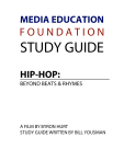 MEDIA EDUCATION FOUNDATION STUDY GUIDE HIP-HOP: BEYOND BEATS & RHYMES A FILM BY BYRON HURT STUDY GUIDE WRITTEN BY BILL YOUSMAN CONTENTS NOTE TO TEACHERS 3 OVERVIEW 4 PRE-VIEWING DISCUSSION QUESTIONS 5 SECTION 1: INTRODUCTION Key Points Discussion Questions Assignments 6 6 7 7 SECTION 2: EVERYBODY WANTS TO BE HARD Key Points Discussion Questions Assignments 8 8 9 10 SECTION 3: SHUT UP AND GIVE ME YOUR BONE MARROW Key Points Discussion Questions Assignments 11 11 12 13 SECTION 4: SISTERS AND BITCHES Key Points Discussion Questions Assignments 14 14 14 15 SECTION 5: BITCH NIGGAZ Key Points Discussion Questions Assignments 16 16 17 17 SECTION 6: MANHOOD IN A BOTTLE Key Points Discussion Questions Assignments 18 18 20 21 ADDITIONAL RESOURCES Selected Books and Articles on Hip-Hop Selected Books and Articles on Masculinity 22 22 23 OTHER MEF FILMS ON RELATED ISSUES 24 MEDIA EDUCATION FOUNDATION | www.MEDIAED.org This study guide may be reproduced for educational, non-profit uses only. © 2006 2 NOTE TO TEACHERS This study guide is designed to help you and your students engage and manage the information presented in this video. Given that it can be difficult to teach visual content—and difficult for students to recall detailed information from videos after viewing them—the intention here is to give you a tool to help your students slow down and deepen their thinking about the specific issues this video addresses. With this in mind, we’ve structured the guide so that you have the option of focusing in depth on one section of the video at a time. We’ve also set it up to help you stay close to the video’s main line of argument as it unfolds. The structure of the guide therefore mirrors the structure of the video, moving through each of the video’s sections with a series of key summary points, questions, and assignments specific to that section. Pre-viewing Discussion Questions are designed to inspire preliminary discussion about the issues the video addresses prior to viewing. Key Points provide a concise and comprehensive summary of each section of the video. They are designed to make it easier for you and your students to recall the details of the video during class discussions, and as a reference point for students as they work on assignments. Questions for Discussion & Writing provide a series of questions designed to help you review and clarify material for your students; to encourage students to reflect critically on this material during class discussions; and to prompt and guide their written reactions to the video before and after these discussions. These questions can therefore be used in different ways: as guideposts for class discussion, as a framework for smaller group discussion and presentations, or as self-standing, in-class writing assignments (i.e. as prompts for “free-writing” or in-class reaction papers in which students are asked to write spontaneously and informally while the video is fresh in their mind). Assignments for each section encourage students to engage the video in more depth—by conducting research, working on individual and group projects, putting together presentations, and composing formal essays. These assignments are designed to challenge students to show command of the material presented in the video, to think critically and independently about this material from a number of different perspectives, and to develop and defend their own point of view on the issues at stake. MEDIA EDUCATION FOUNDATION | www.MEDIAED.org This study guide may be reproduced for educational, non-profit uses only. © 2006 3 OVERVIEW Hip-hop came to life in the early to mid-1970s in the Bronx and other urban areas as a movement of cultural expression by and for working class black and Latino youth. It encompasses not only rap music, but also dance, graffiti art, and fashion. In the wake of the demise of Lyndon B. Johnson’s “Great Society” and the reemergence of conservative domestic policies, America’s inner cities in the latter half of the twentieth century fell victim to deindustrialization, rising unemployment, the withdrawal of governmental social support and, subsequently, increased poverty, crime, and drug abuse. Simultaneously, however, a vibrant and organic youth culture emerged in small nightclubs, public spaces, and private homes. Young urban youth began creating their own music, marked by a strong and unrelenting beat and chanted, rather than sung, rhyming lyrics. Rap thus emerged as a new music genre and a cornerstone of hip–hop culture. While many mainstream critics initially dismissed rap as a novelty and predicted that it would soon fade away, the ensuing decades have proven them very wrong. Hip-hop has become one of the most vital, and profitable, forces in popular culture. Rap music is now an international art form and is regularly heard in advertising and on radio and television. Furthermore, hip-hop beats have influenced popular music genres from rock to jazz to reggae. The fashions, styles, and attitude of hip-hop have been adopted by America’s commercial culture industries and by youths of all cultural and socio-economic backgrounds. In fact, it is estimated that 60 to 70 percent of mainstream rap music is purchased by whites. Having come a long way from its underground roots, born in poverty and despair, hip-hop is now truly mainstream. Along with this transformation of hip-hop from a marginal to mainstream cultural form, a particular type of rap music has emerged as the recording industry’s most widely produced and promoted subgenre. Sometimes referred to as “gangsta rap,” this style is marked by lyrics and visual images that glorify violence, misogyny, and homophobia, and promote a hunger for the acquisition of flashy and expensive material goods. In the film Hip-Hop: Beyond Beats and Rhymes, a longtime hip-hop fan, Byron Hurt, takes a step back from the music that he loves to ask difficult questions about how rap music may be s