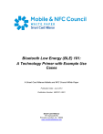 Bluetooth Low Energy (BLE) 101: A Technology Primer with Example Use Cases A Smart Card Alliance Mobile and NFC Council White Paper Publication Date: June 2014 Publication Number: MNFCC-14001 Smart Card Alliance 191 Clarksville Rd. Princeton Junction, NJ 08550 www.smartcardalliance.org About the Smart Card Alliance The Smart Card Alliance is a not-for-profit, multi-industry association working to stimulate the understanding, adoption, use and widespread application of smart card technology. Through specific projects such as education programs, market research, advocacy, industry relations and open forums, the Alliance keeps its members connected to industry leaders and innovative thought. The Alliance is the single industry voice for smart cards, leading industry discussion on the impact and value of smart cards in the U.S. and Latin America. For more information please visit http://www.smartcardalliance.org. Copyright © 2014 Smart Card Alliance, Inc. All rights reserved. Reproduction or distribution of this publication in any form is forbidden without prior permission from the Smart Card Alliance. The Smart Card Alliance has used best efforts to ensure, but cannot guarantee, that the information described in this report is accurate as of the publication date. The Smart Card Alliance disclaims all warranties as to the accuracy, completeness or adequacy of information in this report. Table of Contents 1 2 INTRODUCTION .................................................................................................................. 4 OVERVIEW OF BLE ............................................................................................................ 5 2.1 REQUIREMENTS FOR BLE-ENABLED APPLICATIONS AND SOLUTIONS .............................................. 6 2.1.1 Provisioning BLE Applications ........................................................................................... 6 2.1.2 Provisioning Processes ....................................................................................................... 7 2.2 KEY TECHNICAL DATA ..................................................................................................................... 8 2.3 BLUETOOTH CORE SPECIFICATION ................................................................................................... 8 2.3.1 Spectrum ............................................................................................................................. 9 2.3.2 Interference ......................................................................................................................... 9 2.3.3 Range .................................................................................................................................. 9 2.3.4 Device Compatibility .......................................................................................................... 9 2.4 COMPARATIVE TECHNOLOGIES........................................................................................................10 2.4.1 Bluetooth Beacons and GPS ............................................................................................. 11 2.4.2 BLE and NFC.................................................................................................................... 11 2.4.3 BLE and WiFi ................................................................................................................... 12 2.4.4 BLE and 1D Bar Codes, 2D Bar Codes or QR Codes ...................................................... 13 3 EXAMPLE BLE USE CASES ............................................................................................. 14 3.1 PARKS AND STADIUMS USE CASES ..................................................................................................14 3.2 CONVENTION CENTER USE CASE .....................................................................................................15 3.3 RETAIL MERCHANT AND RESTAURANT USE CASES .........................................................................16 3.3.1 Potential for BLE in Retail ............................................................................................... 16 3.3.2 Potential for BLE in Restaurants ...................................................................................... 18 3.3.3 Additional Use Cases ........................................................................................................ 18 3.4 TRANSIT USE CASES ........................................................................................................................18 3.5 PAYMENTS USE CASES ....................................................................................................................19 3.5.1 Tokenized Credentialing and Presentment Use Cases ...................................................... 20 3.5.2 How BLE Might Be Used Payments ................................................................................. 21 3.5.3 PayPal Beacons ................................................................................................................ 22 3.5.4 Self Scan............................................................................................................................ 23 4 BLE SECURITY AND PRIVACY CONSIDERATIONS ................................................ 25 4.1 BLE SECURITY ................................................................................................................................25 4.1.1 Native Security .................................................................................................................. 25 4.1.2 Protocol Security .............................................................................................................. 25 4.2 SECURITY CONSIDERATIONS FOR PAYMENT USE CASES..................................................................26 4.2.1 Assumptions ..............................................................................