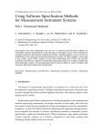 (In) Measurement Journal, Vol 10, No 2, Apr-Jun 1992, pp.79-86. Using Software Specification Methods for Measurement Instrument Systems Part 1: Structured Methods L. Finkelstein(*), J. Huang(*), A.C.W. Finkelstein(+) and B. Nuseibeh(+) (*) School of Engineering, City University, London EC1V 0HB, UK (+) Department of Computing, Imperial College, 180 Queen's Gate, London SW7 2BZ, UK Investigation has been undertaken into the use of software specification methods for instrument systems specification. In the first part of this paper, some of the well-known structured software specification methods are briefly evaluated against a set of criteria we established, in the context of measuring instrument systems. We then conduct a case study in the widely used CORE method. It has been established that CORE can provide systematic and effective support for functional requirement analysis of complex instruments and instrument systems. Its decomposition-based analysis helps to create complete and consistent functional requirement specification. Keywords: Requirements specification, Measuring instrument systems, Structured methods 1. Introduction The process of requirements specification is recognized as a critical activity in the development of engineering systems. Validated requirements specification documents may be used to legally bind clients and their suppliers, and form a vital reference against which designs may be verified. Requirements specification techniques have developed separately in the instrument and software engineering communities, and despite advances in both camps, little effort has been made to study the cross-fertilization of these developments across the communities' boundaries. As part of the SEED (Software Engineering and Engineering Design) project, an investigation into transfer of software specification methods to instrument systems' specification is underway [Finkelstein et al, 1990a]. Furthermore, many modern instrument systems typically comprise of a software component or subsystem, making such technology transfer studies all the more relevant. 1 2. Requirements specification of instrument and software systems Let us start by providing a unified definition of requirements specification. We view a requirements specification as a declarative description of the services a system should provide, the constraints under which it must operate and standards the delivered system must meet. A service may be an input-output transformation, materializing the inputs and outputs into data in software systems, or power, signal or data in instrument systems. Constraints typically include physical restrictions on the system such as size, weight and operating/storage conditions. Standards the delivered system must conform to may include reliability and maintainability. The specification of services is known as the functional specification, whereas the specification of constraints and standards as non-functional specification. The functional aspects of a specification must describe a system's interface and its performance. Interface specification includes the source/destination, type, range and format of inputs/outputs, whereas performance specification may include dynamic response characteristics, system response to external disturbances and exception conditions such as failures of power, hardware, software, and so on. Non-functional specification encompass descriptions of system reliability, limits on memory size, levels of operating/storage/transportation temperature, pressure and humidity, physical characteristics such as size and weight, maintenance specification, and so on. With the notable exception of the defense industry [MIL-STD-490A, 1985], most requirement specification documents in the instrument industry are produced without the explicit use of specification methods. Frequently these documents are generated by the modification of specifications of similar systems. On the other hand, with the "software crisis" as a driving force, the software engineering community has been rapidly developing a large number of specification methods. These have alleviated many of the difficulties of software development, and their applications to the instrument community appears an attractive proposition. What follows is a brief investigative review of some of the popular software specification methods and their applicability to instrument system specification. 2 3. Requirements Specification Method Requirements specification methods provide prescriptive step-by-step guidance for the production of requirements. They describe how and in what circumstances certain actions may be performed during the specification process. Specifications may be produced by the same method using different notations. Predominant in the software engineering community are two types of specification methods: formal and structured informal methods. In a formal method, the vocabulary, syntax and semantics used for constructing a specification document are explicitly defined [Cohen, 1986]. Formal specifications are therefore based on mathematical foundations, including set theory and predicate logic. Although not based on mathematics, structured methods are intended to bring a level of modularity and structure to specification documents and their development process. Their main attraction lies in their explicit representation of the structure of the functional aspects of specifications. Some of these methods are based on system modelling, including data decomposition. Here details of system inputs, outputs and actions (i.e. data processing activities) are identified. In the remainder of this paper, we shall direct our efforts towards evaluating the applicability of such structured methods for the specification of instrument systems. Results of study in formal specification methods will be presented in the second part of the paper. 4. Evaluation Criteria for Requirements Specifications A number of authors have set down softw