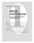 CHAPTER ONE MEDIA INSTITUTIONS Key areas and their implications for understanding media ❝A focal question for the political economy of communications is to investigate how changes in the array of forces that exercise control over cultural production and distribution limit or liberate the public sphere. This directs attention to two key issues. The first is the pattern of ownership of such institutions and the consequences of this pattern for control over their activities. The second is the nature of the relationship ❞ between state regulation and communications institutions. Peter Golding and Graham Murdock (2000) Culture, communications and political economy, in J. Curran and M. Gurevitch Mass Media and Society (3rd edn). London: Arnold. 6 MEDIA AND SOCIETY 1 Introduction I n addition to the above it may be said that a political economy approach would be interested in G the production of cultural goods by institutions; G regulation by those institutions and by government; G media texts with reference to the relationship between representations and the conditions of production and consumption; G cultural consumption with relation to cultural and social inequalities. In this first chapter I want to make connections between elements such as regulation and power, as they relate to the production of meaning, and as they illuminate the relationship between media and society. But we also need to look separately at the nature and operations of media institutions. Texts and audiences are relatively accessible. Media businesses are not. Information about their policies and financial affairs is hard to come by for reasons of confidentiality. Access to the production needs of their businesses may be denied for the same reason, or because these organizations are suspicious of what academic researchers are going to do and say. Differing views on the practices and products of media institutions throw up contradictions. For example, if a pluralistic approach proposes diversity of product, then at what point does diversity in fact become cultural fragmentation? May this not simply encourage social fracturing, and work against cultural coherence? Ralph Negrine (1994) identifies contradictions between statements in support of a free market, and those which then ask for regulation of that market because of the consequences of its becoming ‘too free’. He quotes John Keane: ‘there is a structural contradiction between freedom of communication and unlimited freedom of the Summary of Models of the Relationship between Media and Society This mapping of broad critiques of the relationship between media and society represents general truths, but needs particular qualifications. For example, some political economists veer towards a dynamic model in accepting that there is a complex relationship, in which economic power does not simply determine cultural change. Similarly, Feminist critiques embrace a range of positions, both determinist and audience centred. MEDIA INSTITUTIONS market . . . the market liberal ideology of freedom of individual choice in the marketplace of opinions is in fact a justification of the privileging of corporate speech and of giving more choice to investors than to citizens’. Negrine talks of a free market which is ‘regulated to allow for freedom, albeit a freedom where market forces dominate, and where, crucially, media content is treated as a commodity rather than a public good’. In terms of the relationship between media and society, these observations raise questions about different critical approaches, as well as about ideological positions. On the one hand, Western beliefs in democracy and freedom of choice support ideas about a free market and visions of a plurality of media and their materials. On the other hand, the freedom of institutions to produce what they like does not fit other ideological imperatives – to endorse a particular system of social morality and to protect certain social groups, for instance. Nor do such freedoms as are now allowed seem to add up to a genuine freedom of choice for all sections of society. The power of relatively few media institutions to determine what appears in the marketplace equally endorses critiques offered by neo-Marxists and political economists – that society is not best served by the media, least of all in terms of a free market of ideas. Blair and Bush: Media users, media controllers How should we understand the media – in terms of economic imperatives – of political regulation? Is media consumption really a matter of choice? (Corbis) 7 8 MEDIA AND SOCIETY 2 Major questions 1 How may we understand the identity, function and significance of media institutions apart from their role as constructors of media product? 2 In what respects may we understand media institutions as being distinct from or similar to other commercial enterprises? 3 How do we understand the relationship of media institutions to other dominant institutions of our society, especially to the advertising industry? 4 What characterizes the relationship between media and government, especially with reference to the regulation of media? 5 How does media policy affect the position of public service broadcasting in particular, as it competes with a free market model? 6 How do media institutions understand their audiences, and what are the implications of this understanding? 7 What do we mean by the phrase ‘power of the media’? What is its location, its expression and its significance? 8 How have media institutions changed with the advent of new technology, and with relation to ideas about globalization? 9 Is it possible to conceive alternative models for media institutions? 3 Defining institutions 3.1 When is an institution? The media do not of course represent one coherent organization, even if one may talk collectively about ‘the institution of the media’. Nor can it be supposed that one is talking just about those organizations which are pro
