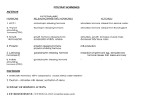 SUMMARY OF HORMONE ACTIONS hormone release from testes and ovary