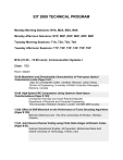 EIT 2009 TECHNICAL PROGRAM Monday Morning Sessions: M1A, M2A, M3A, M4A Monday Afternoon Sessions: M1P, M2P, M3P, M4P, M5P, M6P Tuesday Morning Sessions: T1A, T2A, T3A, T4A Tuesday Afternoon Sessions: T1P, T2P, T3P, T4P, T5P, T6P M1A (10:30 – 12:00 noon): Communication Systems I Chair: TBD Room: Malden 10:30 Modulation and Directionality Characteristics of Free-space Optical Transmission Links (Paper # 47) Xian Jin, Christopher Collier, Jonathan Holzman, Julian Cheng (School of Engineering, University of British Columbia Okanagan) Kelowna, Canada 10:48 High-Speed CRC Computation Using Optimum State-Space Transformations (Paper # 103) Christopher Kennedy and Arash Reyhani-Masoleh Department of Electrical and Computer Engineering The University of Western Ontario, London, ON N6A 5B9 Canada 11:06 Effect of SNR Mismatch on the Performance of Turbo Decoding Algorithms (Paper # 125) Behnam Shahrrava and Yibo Zhou (University of Windsor, Windsor, Ontario) 11:24 Joint Source-Channel Coding using Finite State Integer Arithmetic Codes (Paper # 67) Hashem Moradmand Ziyabar, Ali Payandeh, Mohammad Reza Aref (Sharif University of Technology, Tehran, Iran) M2A (10:30 – 12:00 noon): Mobile Networks Chair: Jian Ren Room: Belle River 10:30 Market-based computational task assignment within autonomous wireless sensor network (Paper # 55) Andrew T. Zimmerman and Jerome P. Lynch (University of Michigan) Ann Arbor, Michigan, USA, Frank T. Ferrese (Naval Surface Warfare Center, Carderock Division) Philadelphia, Pennsylvania, USA 10:48 Routing-Based Source-Location Privacy Protection in Wireless Sensor Network (Paper # 46) Yun Li, Leron Lightfoot, Jian Ren (Department of Electrical and Computer Engineering, Michigan State University), East Lansing, Michigan, USA 11:06 Architectural Model for Wireless Peer-to-Peer(WP2P) File Sharing for Ubiquitous Mobile Devices (Paper # 14) O.O. Abiona, A. I. Oluwaranti, T. Anjali, C. E. Onime, E.O. Popoola, G.A. Aderounmu, W.J. Dorin and L.O. Kehinde, (Computer Information Systems Department, Indiana University Northwest), Garry, Indiana, USA 11:24 A New Call Admission Control Scheme Based on New Call Bounding and Thinning II schemes in Cellular Mobile Networks (Paper # 19) Zahra Firouzi, Hamid Beigy, (Department of Computer Engineering Sharif University of Technology), Tehran, Iran M3A (10:30 – 12:00 noon): Computer Networks & Security I Chair: TBD Room: Tilbury 10:30 StackLock with Simple FSM (Paper # 41) Dongkyun Ahn and Gyungho Lee, (Department of Electrical and Computer Engineering University of Illinois at Chicago), Chicago, Illinois, USA 10:48 A Low-Cost S-box for the Advanced Encryption Standard Using Normal Basis (Paper # 144) Mehran Mozaffari-Kermani and Arash Reyhani-Masoleh Department of Electrical and Computer Engineering The University of Western Ontario, London, ON N6A 5B9 Canada 11:06 The Implementation of Secure Canary Word for Buffer-Overflow Protection (Paper #98) Sirsara Chiamwongpaet and Krerk Piromsopa (Dept. of Computer Engineering, Chulalongkorn University), Bangkok, Thailand 11:24 A Secure E-Tendering system (Paper #89) Shahriyar Mohammadi and Hediy Jahanshahi (Faculty of Industrial Engineering, K.N. Toosi University of Technology), Tehran, Iran 11:42 Interesting patterns using goal programming (Paper # 68) Yasir Imtiaz Khan, Asim Raza, and Syed Hasnain Haider, (Faculty of Information Technology, University of Central Punjab), Lahore, PAKISTAN M4A (10:30 – 12:00 noon): Information Technology and Management Chair: M. Fathi Room: Essex 10: 30 A Data Mining based Knowledge Management Approach for the Semiconductor Industry (Paper # 84) C. Sassenberg, C. Weber, M. Fathi, R. Montino (University of Siegen), Siegen, Germany 10:48 Knowledge Management Support for Quality Management to Achieve Higher Customer Satisfaction (Paper # 86) Fazel Ansari, Marjan Khobreh, Sara Nasiri and Madjid Fathi (Institute of Knowledge Based Systems, University of Siegen), Siegen, Germany 11:06 Elements of Methods of Problem Solving and the Resource Capability in Software Engineering Paper # 35) Peter H. Chang, (Lawrence Technological University), Michael Blaha, Southfield, Michigan, USA 11:24 A New Probing Scheme for Fault Detection and Identification (Paper # 56) Otman Basir and Abduljalil Mohamed (Systems Design Engineering Department, University of Waterloo), Waterloo, Ontario, Canada 11:42 An Algorithm to Determine Neighbor Nodes for Automatic Human Tracking System (Paper # 42) H. Kakiuchi (Melco Power Systems Co., Ltd. ), T. Kawamura, T. Shimizu, and K. Sugahara, Kobe, Japan M1P (1:30 – 3:00 pm): Advanced Control Systems and Applications I Chair: Xiang Chen Room: Tilbury 1:30 A Anesthesia patient monitoring and control in wireless based systems, (Paper # 132) Le Yi Wang, Zhibin Tan, and Hong Wang, (Wayne State University), Detroit, Michigan, USA 1:48 A Technique for Using H2 and H-infinity Robust State Estimation on Nonlinear Systems (Paper # 129) G. K. Lowe and M.A. Zohdy, Oakland University, Rochester, Michigan, USA 2:06 Nonlinear Extension Study for Analytic Multi-Objective Control Design (Paper # 130) Chen Gao, Hugh H. T. Liu, and Ping Zhang, University of Toronto, Toronto, Ontario, Canada 2:24 Robust Control of Tone Reproduction Curves for the Xerographic System (Paper # 133) Xiaobo Li and Kemin Zhou, Louisiana State University, Baton Rouge, Louisiana, USA 2:42 Fault Tolerant Control of Electric Power Steering using Kalman FilterSimulation Study (Paper 131) Smitha Cholakkal and Xiang Chen, (ECE Dept., University of Windsor), Windsor, Canada M2P (1:30 – 3:00 pm): Image Processing I Chair: TBD Room: Essex 1:30 Using stereo geometry towards accurate 3D Reconstruction (Paper # 90) Z. Wang and B. Boufama, (School of Computer Science, University of Windsor), Windsor, Ontario, Canada 1:48 Beamlet Transform Based Technique for Pavement Image Processing and Classification (Paper # 45) L. Ying and E. Salari (Dept. of Electrical Engineering and computer Science, Univers