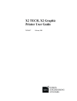 X2 TECH, X2 Graphic Printer User Guide 701P36677 February 2001 Introduction This Introduction overviews the ColorgrafX X2. Additionally, this chapter provides information on how to use this guide as well as the location of information you will need to operate, maintain, and service the ColorgrafX X2. Welcome to the ColorgrafX X2 Congratulations on acquiring your new ColorgrafX X2. Xerox Engineering Systems (XES) looks forward to helping you increase your organizational productivity through full XES support with the ColorGrafX hardware, software, supplies, and service. Your ColorgrafX X2 is a flexible, high speed six-color (graphics model) or four-color TECH model) inkjet printer, with piezo head technology. The printer produces vivid, near photographic quality prints. Its two media input rolls, automatic cutter, extra large ink capacity, and heavy-duty design make this production printer ideal for high volume print production. The compact footprint, quiet printing, auto-alignment, auto-cleaning and permanent heads (no more replacing cartridges in the middle of a print operation) also make this printer ideal for the in-house corporate graphics environment. About this guide This user guide contains information you need to operate and maintain the ColorgrafX X2 safely and efficiently. Please read this guide carefully. Always refer to this user guide if a problem occurs during the use of the ColorgrafX X2. Introduction i About this guide (con’t) Conventions Special conventions are used in this user guide to help you get the most from the guide. Typefaces and symbols in the guide identify terms and conditions. The table below provides you with a description of the typefaces and symbols used in this user guide. Typeface Symbol Bold None Description Identifies an action to perform, like press a button or select an area on the touch screen It also identifies terms, a feature, an option or message. Example 1: Select print. Example 2: The ready to copy message is displayed. Example 3: The normal R/E screen is displayed. Italic Italic Bold and Normal Bold ii None Identifies a chapter or section title in this guide. For more information refer to the chapter or the section title. Note: The symbol on the left and the word note at the beginning of a sentence indicates additional information, explanations, and helpful suggestions. Caution: The symbol on the left and the word Caution at the beginning of a sentence alerts the user that certain operations or procedures may cause damage to the machine. WARNING: The symbol on the left and the word warning at the beginning of a sentence alerts the user to an operation that could cause injury to them. Normal This symbol identifies a web site address. Normal This symbol identifies a phone number. Introduction About this guide (con’t) Organization The ColorgrafX X2 user guide contains seven chapters and two appendices. Each chapter may contain several sections. This section provides you with a brief overview of each chapter. For detailed information, refer to the appropriate chapter and section. Introduction Getting to know the ColorgrafX X2 This chapter introduces you to the ColorgrafX X2’s features and components. Operation This chapter describes the procedures to operate the ColorgrafX X2, including menu options used at the printer’s operation panel. Supplies This chapter provides the procedures to replace inks and media as well as the requirements to properly store your supplies to ensure optimal print quality. Maintaining Print quality Jam clearance Appendix A In case of difficulty Appendix B Menu tree Introduction This chapter provides customer support, compliance, legal issues, safety information, and the phone numbers for service and supplies. This chapter provides detailed procedures to adjust the printer for clear, sharp print output with maximum resolution and sharp details. This chapter provides the procedures to clear media jams from both the media transport and the cutter assembly. Appendix A provides problem solving information. When a machine problem occurs, go to this section first to assist you with troubleshooting the problem. This chapter also provides the phone number to call for service. Appendix B provides a complete operations panel menu tree along with associated descriptions of each option. iii Customer support Service Should you be unable to resolve a problem, place a call to your Xerox Engineering Systems service representative. Your service representative will assist you in keeping your ColorgrafX X2 operating and if required, arrange for a customer service engineer to inspect your ColorgrafX X2 and restore its performance. When you call service you will need the machine serial number. You can determine the serial number from the label located on the rear of the unit. Fill in each item below. When you call for service, they will request this information. Customer account name: Customer account number: Machine type: Machine serial number: Purchase date: Please call your Xerox Engineering Systems service representative. For more information, visit the Xerox Engineering Systems web site at http://www.xes.com. Supplies To order supplies for the ColorgrafX X2, call your Xerox Engineering Systems representative. For more information, visit the Xerox Engineering Systems web site at http://www.xes.com. iv Introduction Compliance information FCC Compliance in the USA WARNING: This equipment has been tested and found to comply with the limits for a Class A computing device pursuant to Subpart B of Part 15 FCC Rules. This equipment generates, uses, and can radiate radio frequency energy and, if it is not installed and used in accordance with the instruction guide, may cause interference to radio communications. These limits are designed to provide reasonable protection against such interference when operated in a commercial environment. Operation of this equipment in a residential area is likely to cause interference, in which case the 