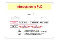 Introduction to PLD Logic Standard Logic PLD ASIC Gate Array SPLD CPLD PLD SPLD CPLD FPGA : : : : Cell-Based IC Full Custom IC FPGA Programmable Logic Device Small/Simple Programmable Logic Device Complex Programmable Logic Device Field Programmable Gate Array Edited by Chu Yu FPGA <##> 1 Edited by Chu Yu FPGA Gate Array <##> 2 Edited by Chu Yu FPGA Standard Cell <##> 3 Edited by Chu Yu FPGA Full Custom <##> 4 Edited by Chu Yu FPGA z Combinational Logic Implementation z Basic Logic Gate z Multiplexer/Decoder z ROM z PLD (PAL, PLA) z Example Solution A: (Basic Logic Gate) Solution B: (Multiplexer) F(A, B, C) = Σ(1, 3, 5, 6) BC 00 01 11 10 0 0 1 1 0 1 0 1 0 1 A I0 I1 I2 I3 00 01 10 11 A 0 1 0 1 A 0 1 1 0 0 1 A A F=AC+BC+ABC A C B C A B C 0 1 A A B C F I0 I1 4×1 Y I2 MUX I3 S1 S2 F <##> 2 Edited by Chu Yu FPGA F(A, B, C) = Σ(1, 3, 5, 6) Solution C: (ROM) Solution D: (PLD) A A B C Y0 Y1 I0 Y2 3×8 Y3 I1 Decoder Y4 Y5 I2 Y6 Y7 B C AC P1 BC P2 ABC P3 P4 Fuse 1 3 56 F1 F2 F Solution E: (Decoder) A B C Y0 Y1 I0 Y2 3×8 Y3 I1 Decoder Y4 Y5 I2 Y6 Y7 F <##> 3 Edited by Chu Yu FPGA Gate-level diagram of a PLA Customary schematic for the PLA in the left-side hand <##> 4 Edited by Chu Yu FPGA An Example of a PAL Extra circuitry added to OR-gate outputs <##> 5 Edited by Chu Yu FPGA Function logic block of Cypress’ 16V8 <##> 6 Edited by Chu Yu FPGA Macro-cell structure of Cypress’ 16V8 <##> 7 Edited by Chu Yu FPGA Structure of a complex programmable logic device <##> 8 Edited by Chu Yu FPGA Logic block diagram of Cypress’s Ultra37128 <##> 9 Edited by Chu Yu FPGA General structure of an FPGA <##> 10 Edited by Chu Yu FPGA A Three-input LUT A two-input lookup table (LUT) Inclusion of a Filp-flop in an FPGA logic block <##> 11 Main Features Field-programmable Reprogrammable In-circuit design verification Rapid prototyping Fast time-to-market No IC-test & NRE cost H/W emulation instead of S/W simulation Good software ... Programmability Why programmable? Why reprogrammable? • Logic is implemented by programming the “configuration memory” • Various configuration memory technologies – One-Time Programmable: anti-fuse, EPROM – Reprogrammable: EPROM, EEPROM, Flash & SRAM M configuratio n memory Programmable Combinational Logic M configuratio n memory Product Term-based Building Block * 2-level logic * High fan-in LUT (Look-Up Table) Look-up Table-based Building Block * 4 to 5 inputs, fine grain architecture * ROM-like Programmable Register preset select PR M M clock select M D enable select clear select 1 Q M edge control M M output select EN CLR M M M M * Typical register controls: clock, enable, preset/clear, ... Programmable Interconnect switching element logic cells switching element logic cells logic block logic cells logic cells switching element switching element Typical routing resources: switching elements, local/global lines, clock buffers... Programmable I/O output select Vcc output enable M D PR M Q M M M M CLR M slew-rate control PAD input select M Q PR CLR D pull-up control pull-down control Gnd M Typical I/O controls: direction, I/O registers, 3-state, slew rate, ... Field-Programmability a b z FPGA CPLD Why filed-programmable? 01011... • You can verify your designs at any time by configuring the FPGA/CPLD devices on board via the download cable or hardware programmer download cable programmer & adapter FPGA or CPLD output display Rapid Prototyping Reduce system prototyping time : • You can see the “real” things – In-circuit design verification • Quick delivery instead of IC manufacture • No test development, no re-spin potential (i.e. no NRE cost) • Satisfied for educational purposes Fast time-to-market 0. Design, simulation, & compilation 1. Downloading configuration bitstream Design Feasibility Detailed Design IC Manufacture Test & Debug Prototyping 2. Entering input data FPGA or CPLD 3. Obtaining output data 4. Analysis FPGA/CPLD is on the board! Products Software Environment Various design entries and interfaces • HDL: Verilog, VHDL, ABEL, ... • Graphic: Viewlogic, OrCAD, Cadence, ... Primitives & macrofunctions provided • Primitive gates, arithmetic modules, flip-flops, counters, I/O elements, ... Constraint-driven compilation/implementation • Logic fitting, partition, placement & routing (P&R) Simulation netlist generation • Functional simulation & timing simulation netlist extraction Programmer/download program FPGA/CPLD Benefits Full-Custom Cell-Based ICs ICs Speed Integration Density High-Volume device cost Low-volume device cost Time to Market Risk Reduction Future Modification Development Tool Educational Purpose √√ √√ √√ √ √ √√ Gate Arrays √ √ √ √ √ √ √ √ HighDensity PLDs √ √ √ √√ √√ √√ √√ √√ √√ √ Good √√ Excellent CIC Altera & CIC Altera • One of the world leaders in high-performance & high-density PLDs & associated CAE tools • Supports university program in Taiwan via CIC From CIC, you can apply: • Altera software - it’s free for educational purpose! )PC : MAX+PLUS II (full design environment) – WS : MAX+PLUS II (full design environment) Synopsys interface (Cadence & Viewlogic interfaces are optional) • Altera hardware • University Program Design Laboratory Package (since 9709): • UP1 Education Board • ByteBlaster download cable • Student Edition Software • Of course, CIC is responsible for technical supports • WWW: http://www.cic.edu.tw/chip_design/design_intr/altera/ Altera Device Families APEX FLEX I/O MAX FLEX 10KE FLEX 10KA FLEX 10K FLEX 6000 FLEX 8000 MAX 7000B MAX 7000AE MAX 7000S MAX 9000A Usable Gates APEX 20K APEX 20KE Altera Device Families Altera offers 7 device families Device Family Classic Reconfigurabl e Element Logic Cell Structure Usable/Typica l Gates Family Members EPROM SOP 200 ~ 900 MAX 5000 EPROM SOP 800 ~ 3,200 EPM5032, 064, 128, 130, 192 MAX 7000/E/S EEPROM SOP 600 ~ 5,000 EPM7032/V/S, 064/S, 096/S, EPM7128E/S, 160E/S