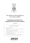 The Southern African Institute of Government Auditors Qualifying Examination for Registered Government Auditors July 2004 INSTRUCTIONS TO CANDIDATES 1 2 3 4 5 6 7 8 9 Maximum marks: 200. Total time available: five hours. The marks allocated are an indication of the expected length and required depth of the answer. Ensure proper planning and avoid exceeding the time available for each question as indicated by the number of marks allocated to the question. No books or notes are allowed in the examination room. Present your arguments clearly. Use well structured, clear, precise language and where appropriate, professional terms. All working papers must be handed in together with all paper provided for the examination (including unused stationery). Answers written in pencil will not be marked. You will be informed of the results of the Qualifying Examination for RGAs by Tuesday 31 August 2004. No enquiries will be responded to before that date. © SAIGA. All rights reserved PART I (160 marks) AUDIT PLANNING MEMORANDUM FOR THE REGULARITY AUDIT OF DEPARTMENT XYZ FOR THE FINANCIAL YEAR ENDING 31 MARCH 2004 INDEX 1 CHAPTER OBJECTIVES OF THE AUDIT PLAN 2 INTRODUCTION 4 3 3.1 3.2 ROLES AND RESPONSIBILITIES Terms of Reference Responsibilities of the auditors and of management 4 4 5 4 4.1 4.2 4.3 4.4 4.5 4.6 4.7 SCOPE OF THE AUDIT Audit report required Extent of report Elements of a regularity audit Financial management Specialized audits Auditee's expectations Expectations of the Office of the Auditor-General 6 6 6 6 7 9 9 10 5 5.1 10 10 5.2 5.3 5.4 5.5 CLIENT BUSINESS REVIEW AND BACKGROUND Nature and overall objective of the Department XYZ activities Business activities and location Accounting systems and financial statements Size of entity Applicable laws and regulations 10 11 11 12 6 6.1 6.2 6.3 6.4 6.5 CONTROL RISK ASSESSMENT Budgetary control CIS environment Audit committee Internal audit Follow up matters from prior year 12 12 13 13 13 13 7 INTERNAL CONTROL SYSTEMS 14 8 8.1 8.2 CONCLUSION: CONTROL RISK ASSESSMENT Overall control environment conclusion Inherent risk assessment 15 15 15 2 Page 4 9 9.1 9.2 ASSESSMENT OF MATERIALITY Quantitative materiality Qualitative materiality 16 16 16 10 CORPORATE GOVERNANCE 17 11 11.1 PLANNED AUDIT APPROACH General 17 17 12 12.1 12.2 12.3 12.4 ADMINISTRATION Audit steering committee Target dates Audit fee Audit team 18 18 18 18 19 13 APPROVAL 19 3 1 OBJECTIVES OF THE AUDIT PLAN The objectives of the audit plan are: 2 • To serve as a framework for the audit; • To ensure that an effective and efficient audit is performed in order to adequately address the audit risk; • The timely identification of the need for and role of specialists; • To communicate important information to the audit team; • To convey the expectations and needs of the management of the department to the audit team. INTRODUCTION This planning memorandum was prepared according to the envisaged audit strategy and is based on cumulative audit knowledge and experience, as well as important matters which have been brought to the attention of the auditors. During the planning process an understanding of the functioning of the department was obtained, including how it is organized and managed, and how it processes accounting and other information. It should be noted that the planning of an audit is a continuous process and that the strategy and planned audit approach may change as new information comes to our attention during the course of the audit. This document should ensure that expectations of all relevant parties are met and that the strategy takes full cognizance of significant management concerns. 3 ROLES AND RESPONSIBILITIES 3.1 Terms of reference The annual financial statements and the notes thereto will be audited in terms of section 188 of the Constitution of the Republic of South Africa, 1996 (Act No 108 of 1996) as well as sections 3 and 5 of the Auditor-General Act, 1995 (Act No 12 of 1995) and the Public Finance Management Act, 1999 (Act No 1 of 1999) PFMA). (i) In terms of section 5 of the Auditor-General Act, when reporting on any accounts as required by section 4, the Auditor-General shall draw attention to the following material instances: 4 3.2 • Where a grant has been exceeded or has been used for a service or for a purpose other than that for which it was intended; • Where the utilization of resources for a service is uneconomical, inefficient, ineffective or not conducive to the best interests of the State or the statutory body concerned; • Where the use or custody of property, money, stamps, securities, equipment, stores, trust money, trust property or other assets occurs in a manner which is or may be to the detriment of the State; • Unauthorized expenditure, irregular, fruitless and wasteful expenditure; • Where the applicable internal control and management measures are inefficient or ineffective; • With regard to any other matter which should, in the public interest, be brought to the notice of Parliament. (ii) In terms of the PFMA, the Auditor-General will evaluate compliance with sections 36 to 45. (iii) In terms of the Constitution of the Republic of South Africa, the AuditorGeneral will audit in terms of section 188, sub-sections 1 to 4 inclusive. Responsibilities of the auditors and management The responsibility of the accounting officer is to prepare the financial statements of the organization in accordance with Generally Recognized Accounting Practice (GRAP), and to submit them to the Auditor-General, within two months of year-end. Financial statements shall comprise the following: • • • • • Balance sheet; Income statement; Cash flow statement; Statement of changes in equity; Notes thereto, together with all the additional information as might be required by the PFMA and TR. The responsibility of the Auditor-General is to audit the financial statements and issue an audit opinion in accordance with South African Auditing Standards.
