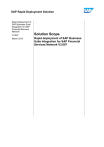 SAP Rapid Deployment Solution Rapid deployment of SAP Business Suite Integration for SAP Financial Services Network V3.607 March 2015 Solution Scope Rapid deployment of SAP Business Suite Integration for SAP Financial Services Network V3.607 SAP Rapid Deployment Solution Copyright © 2015 SAP SE or an SAP affiliate company. All rights reserved. No part of this publication may be reproduced or transmitted in any form or for any purpose without the express permission of SAP SE or an SAP affiliate company. SAP and other SAP products and services mentioned herein as well as their respective logos are trademarks or registered trademarks of SAP SE (or an SAP affiliate company) in Germany and other countries. Please see http://global.sap.com/corporate-en/legal/copyright/index.epx#trademark for additional trademark information and notices. Some software products marketed by SAP SE and its distributors contain proprietary software components of other software vendors. National product specifications may vary. These materials are provided by SAP SE or an SAP affiliate company for informational purposes only, without representation or warranty of any kind, and SAP SE or its affiliated companies shall not be liable for errors or omissions with respect to the materials. The only warranties for SAP SE or SAP affiliate company products and services are those that are set forth in the express warranty statements accompanying such products and services, if any. Nothing herein should be construed as constituting an additional warranty. In particular, SAP SE or its affiliated companies have no obligation to pursue any course of business outlined in this document or any related presentation, or to develop or release any functionality mentioned therein. This document, or any related presentation, and SAP SE’s or its affiliated companies’ strategy and possible future developments, products, and/or platform directions and functionality are all subject to change and may be changed by SAP SE or its affiliated companies at any time for any reason without notice. The information in this document is not a commitment, promise, or legal obligation to deliver any material, code, or functionality. All forward-looking statements are subject to various risks and uncertainties that could cause actual results to differ materially from expectations. Readers are cautioned not to place undue reliance on these forward-looking statements, which speak only as of their dates, and they should not be relied upon in making purchasing decisions. Revision Change Date Description 0 Page 2/16 Public SAP Rapid Deployment Solution Content 1 2 Introduction ...................................................................................................................................................4 Scope Overview ...........................................................................................................................................5 2.1 Solution Scope ...................................................................................................................................5 2.2 Integration Scope ...............................................................................................................................6 2.3 Organization Scope ............................................................................................................................7 2.4 Master Data Scope ............................................................................................................................7 2.5 Localization Scope .............................................................................................................................7 2.6 Software and System Prerequisites ...................................................................................................7 3 Implementation Scope................................................................................................................................11 3.1 Scope Item .......................................................................................................................................11 SAP Rapid Deployment Solution 1 Introduction This document describes the scope of SAP Business Suite Integration for SAP Financial Services Network rapid-deployment solution. It includes details on the scope, including: Solution scope described in features and functions Solution scope organized into scope items and building blocks Solution scope organized with reference to target segments / deployment options or other criteria Integration scope This document is the basis for Scope Documents that can be turned into a customer project document updated with customer specific decisions and used to sign off the agreed scope. This document provides also the basis for a Statement of Work. Page 4/16 Public SAP Rapid Deployment Solution 2 Scope Overview SAP will implement the rapid deployment of SAP Business Suite Integration for SAP Financial Services Network V3.607 (“Project”) which is based upon standard SAP Best Practices. The Project will enable secure and reliable connection of a back-end SAP solution to the Financial Services Network (“FSN”) utilizing preconfigured integration for the payment process and best practices inherent to the integration via Connector for SAP Financial Services Network 2.0. To enable the connectivity between SAP Business Suite and the cloud based SAP Financial Services Network, this package will use Connector for SAP Financial Services Network 2.0 technology delivered by SAP. Using the Connector for SAP Financial Services Network 2.0, the RDS will provide the following three different process integration technology options. 1. Corporate Customer and SAP Initiating Message Exchange (Push/Push communication pattern) 2. Corporate Customer Initiating Message Exchange (Push/Pull communication pattern) 3. Corporate Customer Initiating Message Exchange with existing SAP PI (Push/Pull comm