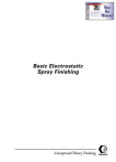 Basic Electrostatic Spray Finishing Concept and Theory Training Table of Contents Introduction ........................................... 1 Module Overview .................................................... 1 How to Use This Module ......................................... 1 Introduction to Electrostatic Spray Finishing....................................... 3 Learning Objectives ................................................. 3 Why Use Electrostatic Spray Finishing?................. 3 Types of Electrostatic Systems ................................. 3 Key Terms................................................................. 5 Understanding Particle Charges ............. 6 Learning Objectives ................................................. 6 Dynamics Among Charged Particles....................... 6 Electric Fields........................................................... 7 Electrostatic Spray Finishing Equipment ............................. 11 Learning Objectives ................................................11 The Electrostatic Spray Finishing Process............. 11 Electrostatic Finishing Methods ............................ 12 Efficiency of Electrostatic Spray Finishing............ 14 The Wraparound Effect .......................................... 15 Optimal Electrostatic Applications........................ 16 Key Equipment Characteristics ............................. 16 High Voltage Power Supplies ................................ 18 Electrostatic Accessories ........................................ 19 Coating Materials ................................. 23 Learning Objectives ................................................23 Resistivity and Conductivity ................................. 23 Flammability .......................................................... 24 Electrostatic Equipment Safety ............ 25 Below is a listing of trademarks used in this document: PROAA 4500™ PRO 3500™ PRO 4500™ Learning Objectives ................................................25 Preventing Electrical Hazards ............................... 25 Preventing Non-Electrical Hazards....................... 26 Handling Flammable Coating Materials ............... 27 Handling Nonflammable Coating Materials ......... 27 Graco, Inc. P.O. Box 1441 Minneapolis, MN 55440-1441 Understanding Safety Approvals .......................... 27 ©1995 Graco, Inc., Form No. 321-028 8/95 Printed in U.S.A. i Basic Electrostatic Spray Finishing Introduction Welcome to Basic Electrostatic Spray Finishing, a learning module in Graco’s basic concept and theory sales training curriculum. Your understanding of the information in this module provides the basis for further study of specific Graco products. Your ability to successfully promote and sell Graco’s products depends in part on how well you learn the basics and then apply this knowledge to addressing your customers’ needs for Graco equipment. While this curriculum best fits the requirements of Graco and distributor sales people, it will also benefit anyone whose job function depends on knowledge of Graco’s products. Module Overview This module introduces basic information on electrostatic spray finishing processes, including the underlying terms, concepts, and principles. You will understand how electrostatic charging can be used with a variety of spray finishing systems to improve spray transfer efficiency. How to Use This Module The curriculum consists of a series of self-study modules. As the term self-study implies, you work through the materials on your own at a comfortable pace. Plan sufficient time (approximately 30 minutes) to complete at least one section of a module in a working session. This module combines a variety of features that make the learning process convenient and productive: • Learning objectives • Text • Charts and illustrations • Progress checks • Additional resources Learning Objectives Each section of materials offers a set of learning objectives. Read the objectives and use them to guide you to the most important concepts. After you finish each section and before you complete the progress check, reread the learning objectives to confirm that you understand the key concepts. Text Definitions, examples, and explanations comprise the learning module text. Read it carefully and return for review if necessary. Basic Electrostatic Spray Finishing 1 Charts and Illustrations An important element of any instruction is visualizing the concepts. This module contains graphics and illustrations to enhance the text material. Whenever appropriate, the module also contains charts that help you organize or summarize information. Progress Checks Progress checks are self-tests that provide reinforcement and confirm your understanding of important topics. After completing each major section of the module, return to review the objectives, and then work through each of the progress check items. Upon completion, check your answers against those provided. If you answered any incorrectly, return to the text and reread the pertinent information. Additional Resources This module may refer you to other documents or sources that expand on the concepts covered in the module. The reference will include the name of the source and how you can obtain it. 2 Basic Electrostatic Spray Finishing Introduction to Electrostatic Spray Finishing Learning Objectives This section provides a foundation for learning about electrostatic spray finishing. The term electrostatics or electrostatic spray finishing refers to a spray finishing process in which electrical charges and electric fields are used to attract particles of atomized coating material to the target (the object to be coated). In the most common types of electrostatic systems, electrical charges are applied to the coating material and the target is grounded, creating an electric field. The charged particles of coating material are drawn by the electric field to the surface of the grounded targ