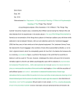 1 Dave Stone Engl. 305 Oct. 2014 Disinvolvement as: Repression: A Psychoanalytic Reading of O’Brien’sA Psychoanalytic Reading of “The Things They Carried” A psychological analysis of the characters in Tim O’Brien’s “The Things They Carried” should be of great value, considering that O’Brien served during the Vietnam War and drew liberally from his experiences in his stories about it. The story“The Things They Carried” is framed as an enumeration of the things that a platoon of American soldiers carry with them while stationed in war­enveloped Vietnam, with as much attention paid to the “emotional baggage” (356) that they carry in their minds as to their physical equipment. For Lieutenant Jimmy Cross, the heaviest bit of such baggage is the comforts of home life as personified by Martha, a, to his mind, virginal innocent, whom he unrequitedly yearns for love from. He desires her because she is a nurturing, purematernal figure, a symbol of the beauty in the world that he would like to believe in and be a part of. The war, however, challenges this notion and spurs him to become mentally tougher so that he can better psychologically cope with his situation.In psychoanalytic termsclassical Freudian terms, , heHe attemptsreacts by trying to repress his natural desire for pleasure move past the securities of love and comfort and replacee itthem with the securities of self­sufficient power and control. and control. In classical Freudian terms, Cross’s ego rationalizes that he cannot afford to pander to his love and other simple pleasures­desiring id, but should instead give into the sense of reality that his super­ego has acquired. Love becomes an impractical, even harmful,unrealistic thing to seek or even accept, and thus . It is the inhumanity of war in the proverbial nutshell. Cross’s most basic and pure personal drives are forced to be 2 repressed and a persona of “impersonal” (358) harshness adopted. due to the gross inhumanity of war. The concept of the id, ego and super­ego psychological structure comes from pioneering psychoanalyst Sigmund Freud, who believed that the healthy individual was one in whom these three parts of the psyche were harmoniously balanced. The ego is the rational self, the conscious decision­maker. It is accompanied by a person’s id, which constitutes a person’s drive for pleasure, especially sexual pleasure, and super­ego, which entails their sense of what is acceptable in society and possible in reality. People who fail to adequately fulfill the needs of the id became unstable and neurotic. Another Freudian concept useful for interpreting the psychology of the characters in “The Things They Carried” is that of regression. Regression in short refers to the human tendency to psychologically fall back into repressed states of minds and habits of younger, even infantile, ages when they feel anxiety. For the characters in “The Things They Carried,” most pertinent is the anal stage of psychological development, in which pleasure derives from an infant’s increasing ability to control it’s bodily functions, namely excretion, thereby keeping itself clean and not smelly. Regression to the anal stage of development is seen when people place an inordinate amount of attention and importance on keeping things clean and organized. Jimmy Cross’s case can be seen as being an extreme case of normal psychological restraint of desires for pleasure in response to the unnaturally distressing environment an atavistic progression from the more affectual, oral stage of development into a mirror of the anal, which gives him more personal control and, he hopes, success in terms of coping. “Were it not for the intervention of [rationality]... every instinct would know only one fate ­ that of gratification” (47), Anna Freud summarizes. Shortsighted urges are suppressed by us alleverybody, but Jimmy Cross and the other soldiers take this to a another, disturbinglydisconcertingly extensive 3 level. Cross,This act brings him more in synch with the rest of the soldiers, although most of them draw comparatively freely on repressed desires and comforts. Cross tries to be more absolute in his final change, for as the platoon’sthe Lieutenant, he decides that he has greater responsibility and therefore is attracted to the idea of favors a highlythe most disciplined state of mind. As will be seen, he may in truth be using this primarily as a pretense, and contrarily, though apparently unconsciously, is more concerned with preemptively avoiding the potential pain that affection opens him up to. He continues to base his personal philosophy around maximizing his pleasure and comfort, but gives up believing that he could actually achieve them. Instead he aims to protect himself from pain and sadness, even at the cost of losing his receptivity to genuine pleasure.. All the “things” in the story carried (by choice), literal and figurative both, are carried for the sense of psychological comfort that they provide, , an id­inspired behavior regulated by the ego and superego. Their behavior is similar to cases of children clinging to comfort objects of personal significance “in order not to become aware of some painful impression from without” (A. Freud 96). Symbols of comfort become psychological buffers, an alternative focus to discomfort, a method of denial (A. Freud 96­98). The soldiers are not neurotic in the conventional sense, they are in a dangerous environment, in which infantile, crude methods of comfort­seeking are called for due to, if nothing else, a lack of options. Some of the things they carry are relatively practical if pessimistic, such as Ted Lavender’s tranquilizers (345), while others are purely psychological, e.g. Kiowa’s New Testament. Most fall somewhere in between, as with the mine detector, which was “often useless because of the shrapnel in the earth, but they carried... anyway… for the illusion of sa