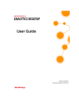 User Guide Analytics Desktop Document Number: 09619414 CONTENTS Guide Overview Description of this guide............................................................ ix What’s new in this guide .................................................................x 1. Getting Started with Analytics Desktop Introduction.................................................................................. 1 About Analytics Desktop................................................................ 2 Installing Analytics Desktop ........................................................... 5 Upgrading Analytics Desktop................................................... 7 Building your first dashboard ....................................................... 11 Importing your data from a file ............................................... 12 Creating a dashboard ............................................................ 17 Formatting your visualization ................................................. 23 Adding filters to your dashboard ............................................ 25 Allowing a visualization to update the data displayed in another visualization .............................................................. 30 Analyzing your data ............................................................... 33 Sharing your results ............................................................... 37 Understanding how MicroStrategy works with and stores data ... 40 Providing business context to data: Attributes ....................... 41 Calculating data: Metrics........................................................ 42 Storing data: Datasets ........................................................... 43 Powering analysis in Analytics Desktop: MicroStrategy Intelligence Server ................................................................. 44 Running and viewing a dashboard .............................................. 45 Viewing dashboards in Presentation View............................. 46 Saving, exporting, emailing, or printing a dashboard............. 48 Saving a dashboard ............................................................... 48 Exporting a dashboard........................................................... 50 © 2014 MicroStrategy, Inc. iii Contents MicroStrategy Analytics Desktop User Guide Exporting a visualization ........................................................ 51 Emailing a dashboard ............................................................ 53 Printing a dashboard.............................................................. 55 Opening and closing Analytics Desktop ...................................... 56 2. Importing Data into Analytics Desktop Introduction................................................................................ 59 Best practices: Importing data into Analytics Desktop................. 60 Importing data from a file ............................................................. 64 Connecting to a data source........................................................ 70 Creating a DSN...................................................................... 73 Managing database connections ........................................... 75 Importing data from a database................................................... 76 Creating and managing filters to determine which data to import from a database .......................................................... 83 Defining joins between columns in database tables .............. 86 Importing data using a Freeform script ........................................ 88 Preparing your data to display on maps: Geo roles and shape keys ............................................................................................. 93 Importing a dashboard and data from another MicroStrategy user.............................................................................................. 96 Editing imported data................................................................... 97 Adding new data to your imported data: Incrementally updating datasets .................................................................. 99 Replacing your imported data with new data ....................... 101 3. Creating and Modifying Dashboards Introduction.............................................................................. 105 Creating a dashboard ................................................................ 106 Adding and removing datasets from a dashboard ..................... 110 Displaying a visual representation of your data: Visualizations............................................................................. 112 Changing the type of visualization displayed ....................... 115 Determining which mapping visualizations are available..... 116 Creating visualizations............................................................... 119 Creating a blank visualization .............................................. 122 Creating a Graph visualization............................................. 124 Creating a Graph visualization with a dual-axis or combination graph ............................................................... 131 Creating a Graph visualization with pie or ring graphs ........ 133 iv © 2014 MicroStrategy, Inc. MicroStrategy Analytics Desktop User Guide Contents Quick steps and minimum data requirements to create each Graph visualization style ............................................. 140 Creating a Grid visualization ................................................ 147 Creating a Heat Map visualization ....................................... 149 Creating an Image Layout visualization ............................... 152 Creating a Map visualization................................................ 159 Creating a Density Map visualization................................... 164 Creating a Map with Areas visualization .............................. 168 Creating a Network visualization...................