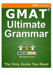 GMAT Club ® GMAT Ultimate Grammar First Edition www.gmatclub.com 2 gmatclub Ultimate GMAT Grammar GMAT® is a registered trademark of the Graduate Management Admission Council, which neither sponsors nor endorses this product. Published by GMAT Club, Inc. gmatclub 3 GMAT Club Significant time and work were put into creating it. I hope you will find it helpful and comprehensive. This book is a collective product based on input and feedback from many members. If you have any questions or suggestions, please do not hesitate to post them here, on the GMAT Club forum: http://gmatclub.com/grammar Good luck on the GMAT! Best Regards, BB, Founder of GMAT Club August 1st, 2011 4 gmatclub Ultimate GMAT Grammar GMAT Club Marketplace Find the best GMAT preparation course discounts in one convenient location: http://gmatclub.com/marketplace Search GMAT Club partner courses by location and date to find the best fit for your lifestyle. GMAT Club partners include: Kaplan - Offers a "Test Day Experience," with 6,000 test questions, and a higher score guaranteed or your money back Knewton - Access material for a full year live or recorded, and raise your score by 50+ points, or it's free Manhattan GMAT - Taught by 99th percentile only instructors, courses focus on the content and material, not just tips and tricks Princeton Review - Online and school-based courses, one-to-one and small group tutoring, Princeton Review's years of experience and research will raise your GMAT score, guaranteed. Veritas Prep - Join over 20,000 students in 90+ cities worldwide in preparing for the GMAT, and if you aren't seeing results, retake your class for any reason or your money back guaranteed. Amerasia Consulting – A boutique experience helps students prepare for the MBA application process. MBA Admit – Top MBA graduates with over 20 years of advising experience make consulting accessible and affordable for students who want to gain entry into the school of their dreams. MBA Prep School – Prepare to be Accepted!™ video series will teach you how to build an outstanding application and earn an acceptance letter to the world’s top business schools. Find more information about each partner on the following pages or at www.gmatclub.com/marketplace. The GMAT Club Marketplace is a onestop-shop for courses, books, practice tests, and free resources. GMAT Club Membership is free, so join now and take advantage of exclusive discounts at www.GMATClub.com/Marketplace gmatclub 5 GMAT Club $400 OFF Did you know that Kaplan... Has an advanced GMAT course that requires at least 600 on the GMAT to enroll? Offers a "Test Day Experience" - take a practice test in the REAL GMAT test center? Offers with an average course 6,000 test questions and exercises to practice with? Has a higher score guarantee or your money back? Offers free GMAT Club tests (more than 1,100 questions and $79 value) when you sign up for any GMAT course? GMAT Club Member Discount Receive $150 off any Kaplan classroom course—enter code GMATCLUB150 + $250 bonus from GMAT Club Visit http://gmatclub.com/kaplan for more information $491 OFF Did you know the following about Knewton? Knewton's CEO has scored multiple perfect 800s on the GMAT During a Knewton class, teachers can answer your questions privately at any time Knewton's course will raise your score by 50+ points, or it's free All Knewton course materials can be accessed for a full year Every Knewton lesson is recorded, so you can watch live or on your own schedule Offers free GMAT Club tests (more than 1,100 questions and a $79 value) when you sign up for the GMAT Course GMAT Club Member Discount Receive $101 off any Knewton course + $250 bonus Visit http://gmatclub.com/knewton for more information 6 gmatclub Ultimate GMAT Grammar $350 OFF Did you know that Manhattan GMAT... Has a dedicated curriculum team focused on just the GMAT? Hires 99th percentile only instructors (currently a 760+) Provides extensive Instructor training and aggressive compensation (highest pay in the industry means enthusiastic and dedicated instructors) Focuses on teaching the content and material, not just tips and tricks. Offers a variety of options for study, from using the Strategy Guides to taking a full course. GMAT Club Member Discount Receive $100 off a 9-Session Prep Online or Classroom Course or get 10% off private tutoring. Use discount code GCLUB100. Visit http://gmatclub.com/MGMAT for more information gmatclub 7 GMAT Club 15% OFF Did you know Princeton Review… Offers classes in 41 states and 21 countries. Offers courses not only for the GMAT, but also for the SAT, ACT, GRE, LSAT, and MCAT. Has a FREE Business School Matching Service – Take 2 min to create your profile, and The Princeton Review will start emailing you “best fit” business school recommendations! Offers one of the most generous test prep guarantees in the market: After taking a course, if a student’s score does not improve, he or she can either take retake the course for free or receive a tuition refund. GMAT Club Member Discount Save 15% on all Princeton Review Courses when you use the following discount codes: Discount Codes: Classroom: NAMGMATGC, GMAT Online: DLXGMATGC GMAT Live Online: DLXGMATLGC Visit http://gmatclub.com/princeton for more information 15% OFF Did you know that Amerasia Consulting... Assists clients who are competitive at a top 25 MBA program Offers a free One-hour diagnostic session Consultants are principals of the company Offers full engagement services or individual services to tailor to your needs GMAT Club Member Discount Save 15% on MBA Admissions Consulting Services when you mention GMAT Club. 8 gmatclub Ultimate GMAT Grammar Want to create an outstanding application? MBA Prep School Offers the world’s only comprehensive video series on how to earn an acceptance letter from a top-tier business school Will teach you the secrets and techniques of top MBA admissions consultants for a fraction of the cost Has succe