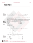 GATE/ME-2011 ME : MECHANICAL ENGINEERING Page 1 __________________________________________________________________________________________________________ ME GATE-11 MCQ 1.1 GATE ME 2011 ONE MARK Green sand mould indicates that (A) polymeric mould has been cured (B) mould has been totally dried (C) mould is green in color (D) mould contains moisture SOL 1.1 Option (D) is correct. A green sand mould is composed of a mixture of sand (silica sand, SiO 2 ), clay (which acts as binder) and water. The word green is associated with the condition of wetness or freshness and because the mould is left in the damp condition, hence the name “ green sand mould”. MCQ 1.2 Eigen values of a real symmetric matrix are always (A) positive (B) negative GATE ME 2011 ONE MARK SOL 1.2 (C) real (D) complex Option (C) is correct Let a square matrix x y A => y xH We know that the characteristic equation for the eigen values is given by A − λI = 0 x−λ y =0 y x−λ (x − λ) 2 − y2 = 0 (x − λ) 2 = y2 x − λ =! y & λ = x ! y So, eigen values are real if matrix is real and symmetric. MCQ 1.3 GATE ME 2011 ONE MARK A series expansion for the function sin θ is 2 4 3 5 (B) θ − θ + θ − ... (A) 1 − θ + θ − ... 3! 5! 2! 4! (C) 1 + θ + θ + θ + ... 2! 3! 2 3 (D) θ + θ + θ + ... 3! 5! 3 5 __________________________________________________________________________________________________________ Visit us at www.gategurus.com | Email: enquiry@gategurus.com SCO - 18, 2nd Floor, Sector 26, Madhya Marg Chandigarh - 160019 Ph.: 0172-5026826 | Mob: +91-98723 86826, +91-94646 43471, +91-99158 31219 GATE/ME-2011 ME : MECHANICAL ENGINEERING Page 2 __________________________________________________________________________________________________________ SOL 1.3 Option (B) is correct. We know the series expansion of 3 5 7 sin θ = θ − θ + θ − θ + ...... 7 3 5 MCQ 1.4 A column has a rectangular cross-section of 10 # 20 mm and a length of 1 m. The slenderness ratio of the column is close to (A) 200 (B) 346 GATE ME 2011 ONE MARK (C) 477 SOL 1.4 (D) 1000 Option (B) is correct. Given : l = 1 meter , b = 20 mm , h = 10 mm We know that, Slenderness ratio = l k k = Where, MCQ 1.5 GATE ME 2011 ONE MARK SOL 1.5 I = A bh3 /12 b#h Substitute the values, we get 1 20 (10) 3 # 10−12 20 # 10−3 12 # # = k = −6 12 # 10 # 20 10 # 20 # 10 = 8.33 # 10−6 = 2.88 # 10−3 m 1 Slenderness ratio = = 347.22- 346 2.88 # 10−3 Heat and work are (A) intensive properties (B) extensive properties (B) point functions (D) path functions Option (D) is correct. Work done is a quasi-static process between two given states depends on the path followed. Therefore, 2 ! W2 − W1 2 = W1 − 2 or 1W2 #1 dW But, #1 dW dW shows the inexact differential So, Work is a path function and Heat transfer is also a path function. The amount of heat transferred when a system changes from state 1 to state 2 depends on the intermediate states through which the system passes i.e. the path. 2 #1 dQ = Q1 − 2 or 1Q 2 dQ shows the inexact differential. So, Heat & work are path functions. MCQ 1.6 GATE ME 2011 ONE MARK +0.015 +0.010 A hole is of dimension φ9+0 mm. The corresponding shaft is of dimension φ9+0.001 mm. The resulting assembly has (A) loose running fit (B) close running fit __________________________________________________________________________________________________________ Visit us at www.gategurus.com | Email: enquiry@gategurus.com Brought to you by: Nodia andSCO Company Visit us at: www.nodia.co.in - 18, 2nd Floor, Sector 26, Madhya Marg Chandigarh - 160019 Ph.: 0172-5026826 | Mob: +91-98723 86826, +91-94646 43471, +91-99158 31219 PUBLISHING FOR GATE GATE/ME-2011 ME : MECHANICAL ENGINEERING Page 3 __________________________________________________________________________________________________________ Page 3 ME GATE-11 (C) transition fit www.gatehelp.com (D) interference fit SOL 1.6 Option (C) is correct. In transition fit, the tolerance zones of holes and shaft overlap. Upper limit of hole = 9 + 0.015 = 9.015 mm Lower limit of hole = 9 + 0.000 = 9.000 mm Upper limit of shaft = 9 + 0.010 = 9.010 mm Lower limit of shaft = 9 + 0.001 = 9.001 mm Fig. Fig. Now, we can easily see from figure dimensions that it is a transition fit MCQ 1.7 The operation in which oil is permeated into the pores of a powder metallurgy product is known as (A) mixing (B) sintering GATE ME 2011 ONE MARK (C) impregnation (D) infiltration SOL 1.7 Option (C) is correct. If the pores in a sintered compact are filled with an oil, the operation is called as impregnation. The lubricants are added to the porous bearings, gears and pump rotors etc. MCQ 1.8 The maximum possible draft in cold rolling of sheet increases with the (A) increase in coefficient of friction (B) decrease in coefficient of friction GATE ME 2011 ONE MARK (C) decrease in roll radius (D) increase in roll velocity SOL 1.8 Option (A) is correct. The main objective in rolling is to decrease the thickness of the metal. The relation for the rolling is given by F = μPr Where ; F = tangential frictional force μ = Coefficient of friction Pr = Normal force between the roll and work piece Now, from the increase in μ, the draft in cold rolling of sheet increases. MCQ 1.9 A double-parallelogram mechanism is shown in the figure. Note that PQ is a single link. The mobility of the mechanism is GATE ME 2011 ONE MARK (A) − 1 (B) 0 __________________________________________________________________________________________________________ Visit us at www.gategurus.com | Email: enquiry@gategurus.com Brought to you by: Nodia andSCO Company Visit us at: www.nodia.co.in - 18, 2nd Floor, Sector 26, Madhya Marg Chandigarh - 160019 Ph.: 0172-5026826 | Mob: +91-98723 86826, +91-94646 43471, +91-99158 31219 PUBLISHING FOR GATE GATE/ME-2011 ME : MECHANICAL ENGINEERING Page 4 __________________________________________________________________________________________________________ Page 4 ME GATE-11 (C) 1 SOL 1.9 w
