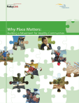 Why Place Matters: Building a Movement for Healthy Communities PolicyLink is a national research and action institute advancing economic and social equity by Lifting Up What Works.® Design by: Leslie Yang COVER PHOTOS COURTESY OF (from left to right, top to bottom): ©iStockphoto.com (Danny Warren), ©iStockphoto.com (konstantin32), ©iStockphoto.com (Thania Navarro), Harlem Children’s Zone, ©iStockphoto.com (Christopher Hudson), ©iStockphoto. com (Justin Horrocks), p.37: ©iStockphoto.com (kajetan), ©iStockphoto.com (Inger Anne Hulbækdal), Youth UpRising. PHOTOS COURTESY OF: p.16: Harlem Children’s Zone; p.26: ©iStockphoto.com (Justin Horrocks); p.27: ©iStockphoto.com (konstantin32); p.28: ©iStockphoto.com (Kerry Muzzey); p.29: ©iStockphoto.com (Tomas Levstek); p.32: Blue Cross & Blue Shield of Minnesota Foundation; p.33: ©iStockphoto.com (Hannamariah photography); p.34: Youth UpRising; p.37: ©iStockphoto.com (kajetan); p.38: ©iStockphoto.com (Thania Navarro); p.39: ©iStockphoto.com (Danny Warren); p.41: ©iStockphoto.com (Daniel Rodriguez), p.42: ©iStockphoto.com (Cameron Whitman); p.45: ©iStockphoto.com (Christopher Hudson); p.46: ©iStockphoto. com (Inger Anne Hulbækdal); p.47: ©iStockphoto.com (Brandon Laufenberg); p.48: ©iStockphoto.com (Michael Braun); p.57: ©iStockphoto.com (Pathathai Chungyam); p.58 iStockphoto (Bonnie Jacobs). Why Place Matters: Building a Movement for Healthy Communities Judith Bell President Victor Rubin Vice President for Research All Rights Reserved. Copyright © 2007. PolicyLink 2 Why Place Matters: Building a Movement for Healthy Communities PolicyLink Table of Contents Case Studies 4 Preface 5 Executive Summary 6 Introduction 13 I. Class, Race, Ethnicity, and Health a. Socioeconomic Status (SES) and Health b. Race, Ethnicity, and Health c. The Health of Immigrants 18 18 19 20 II. A Framework for Healthy Communities a. Economic Environment b. Social Environment c. Physical Environment d. Service Environment 22 24 30 36 44 III. Themes from the Case Studies: Lessons Learned 49 IV. Recommendations: Moving Into the Future 51 Notes 62 3 PolicyLink Case Studies 4 Harlem Children’s Zone: Focusing on 100 Blocks and One Child at a Time 16 Moving to Opportunity 25 Health Impact Assessment in San Francisco: A Tool to Build Healthier Communities 26 Metro Denver Health and Wellness Commission: A Broad Coalition to Address Health in Schools, Worksites, and Communities 27 Using Food Stamps to Buy Fresh Produce at a Local Flea Market 28 Fresno Works for Better Health: A Partnership to Improve Health Through Economic and Leadership Development 29 Kids Make A Stand in Shasta County 32 The Blue Cross and Blue Shield of Minnesota Foundation: Grantmaking to Address Community Conditions That Impact Health 33 Youth UpRising: A Center for Youth Leadership and Community Transformation 34 Looking at Transportation Planning Through a Health Lens 37 The Greening of Los Angeles: Improving Health Through a Movement for Urban Parks 38 Keeping Housing Away from Freeways and Toxic Polluters 39 City of Richmond: Considering Health in the General Plan 41 Improving Health by Improving Homes: Research and Advocacy in Three Cities 42 Kaiser Permanente: A Health System Looking Beyond Health Care 45 Colonias in California’s Central Valley: Working for Basic Infrastructure 46 Data + Community Collaboration = Policy Change 47 Community Coalition: Promoting Healthy Neighborhoods Through Leadership Development and Community Involvement 48 Unnatural Causes 53 Moving the Golden State towards Health: The Governor’s (and Advocates’) Vision for a Healthy California 55 The Bay Area Regional Health Inequities Initiative (BARHII) 57 Reading, Writing, Arithmetic, and Health: Lessons Learned from School Efforts to Combat Obesity 58 Why Place Matters: Building a Movement for Healthy Communities PolicyLink Preface PolicyLink and The California Endowment have long recognized that place matters. Our work is informed and driven by the recognition that neighborhood environmental factors—from local economic opportunities, to social interactions with neighbors, to the physical environment, to services such as local grocery stores where people can buy nutritious food—all affect individual health. We’re extremely enthusiastic about the growing movement that’s developing place-based solutions to place-based problems. We know that residents of low-income communities and communities of color suffer disproportionately from negative environmental factors: poor air quality as a result of over-exposure to toxins such as diesel exhaust from highways and bus depots, poorly maintained homes with mold, lack of healthy food options, and the lack of clean, safe open spaces such as parks and playgrounds. Social, economic and service components—lack of access to good jobs, inadequate healthcare and other crucial services, and fractured social networks—also present obstacles. As detrimental as these are, we know that, unfortunately, they represent only a few of the factors that cripple far too many neighborhoods and the people who live in them. Understandably, there’s much work to be done. We believe that an equitable approach to building healthy communities requires a number of diverse tactics from multiple stakeholders. Collaboration across a broad range of sectors and groups, including the private sector, is necessary to create the type of healthy communities we want for ourselves and our neighbors. And the experience and voices of community members—particularly people of color— must be an integral part of discussions and strategic thinking around sustainable change. We’re not alone in our belief. The organizations and coalitions profiled in this report—many led by visionary leaders—demonstrate that environmental factors, which strengthen and enliven communities, can be created and replicated to benefit everyone. No one approach works for all communities, each is particular to